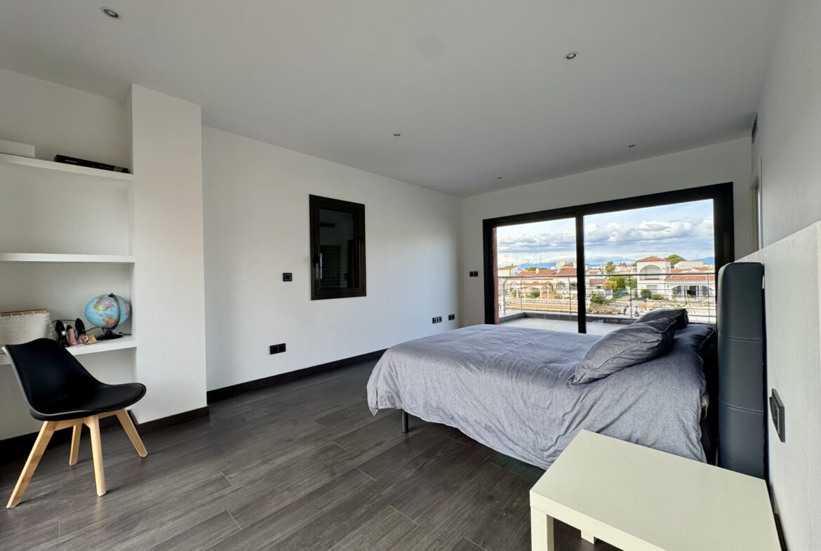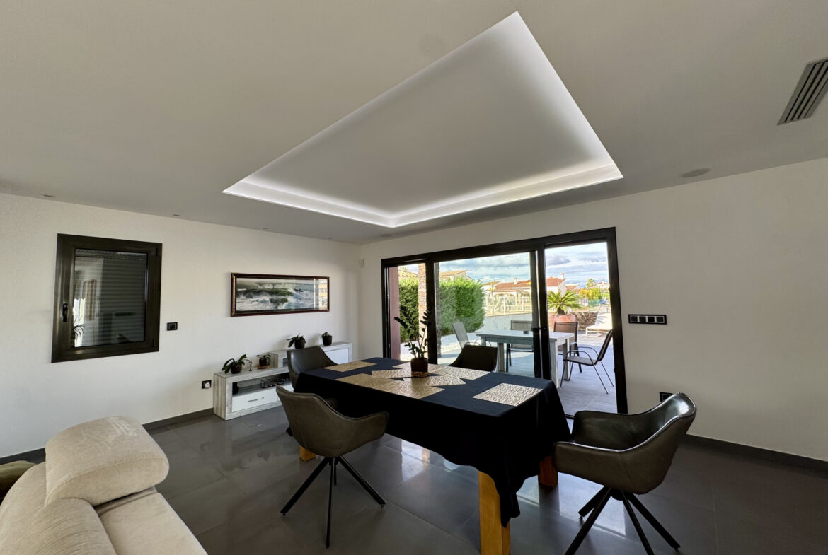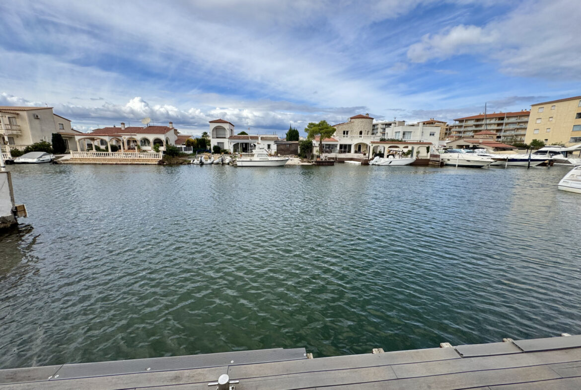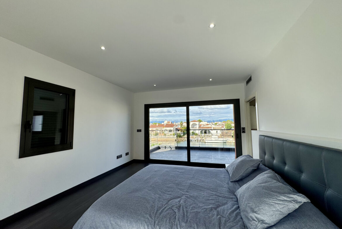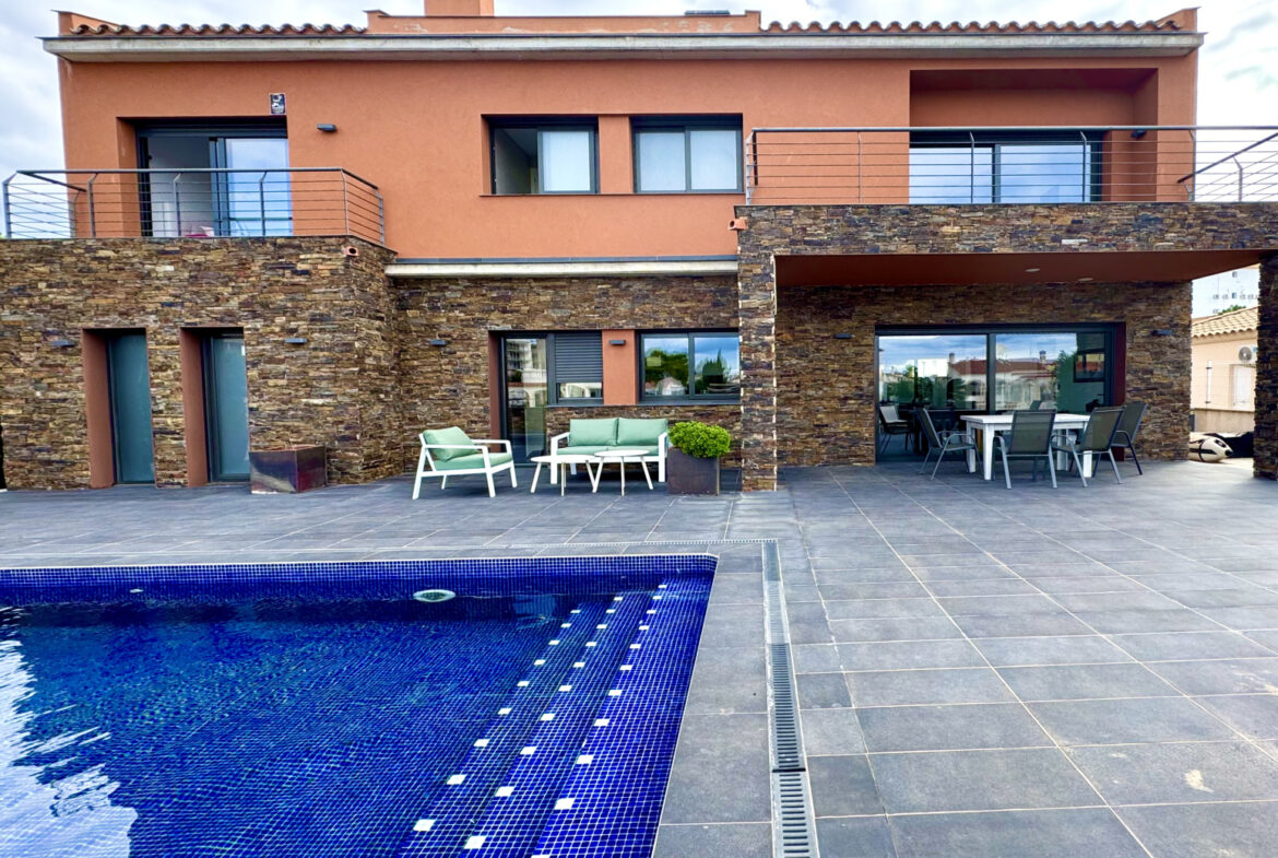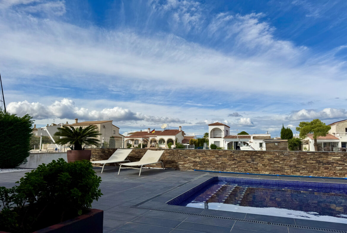 RV01 – Roses; Santa Margarida: Casa en el canal con 20 metros de amarre a la venta. Ideal para catamarán de grandes dimensiones.En la marina residencial de Santa Margarida, en Roses, se encuentra esta bonita casa de nueva construcción.Esta propiedad dispone de un amarre privado para que pueda disfrutar de su yate o velero. Puede acoger embarcaciones de hasta 20 m, a motor o de vela. En la gran terraza disfrutará de las bonitas vistas al canal, la montaña y el parque natural de los Aiguamolls. La vista de la puesta de sol le encantará. Para disfrutar del verano, la casa dispone de una piscina de 10 m x 5 m.La casa consta de un amplio y luminoso comedor, con chimenea y acceso directo al jardín y la piscina, ambos con vistas al canal. La cocina moderna, totalmente equipada, ofrece vistas al canal y a los Pirineos, además de acceso a la terraza. El hall de entrada es majestuoso, con techos altos y una escalera de granito que conduce a la planta superior, donde se ubican las tres suites con baño y terraza privada con vistas.Esta vivienda está construida con materiales modernos y con especial atención a la eficiencia energética, con doble aislamiento: por el exterior y con lana de roca en el interior. Dispone de garaje cerrado y aparcamiento para cuatro vehículos.Casa ubicada a 15 minutos a pie de la playa y de los comercios de Santa Margarida.~
