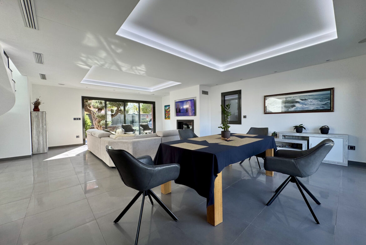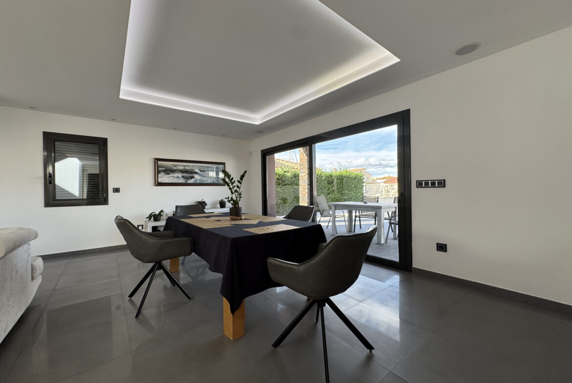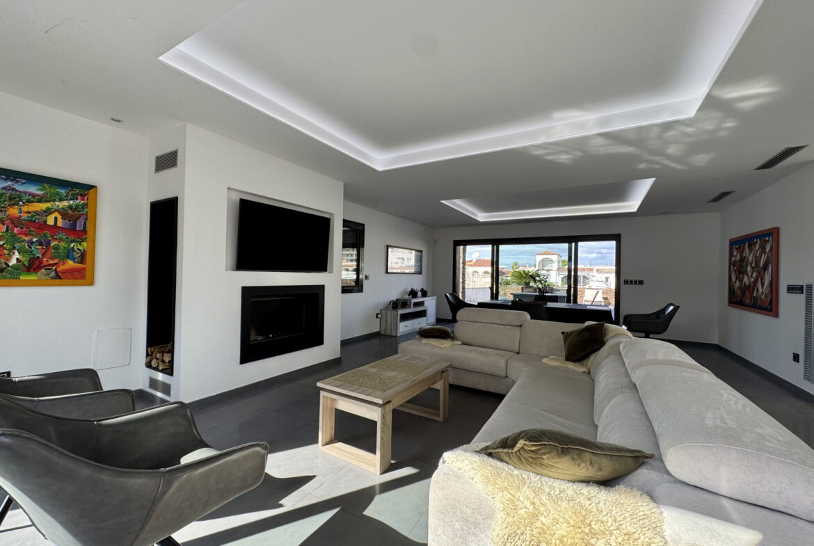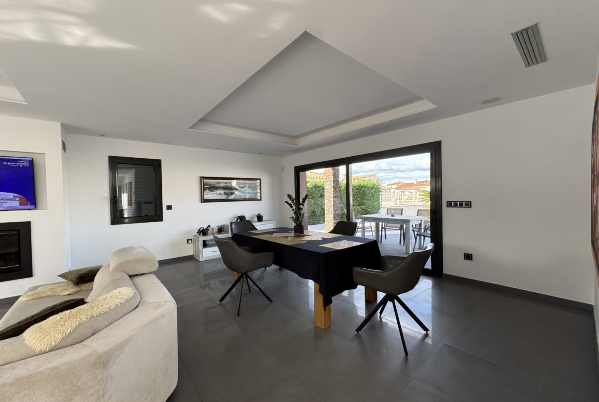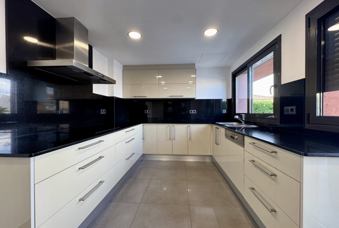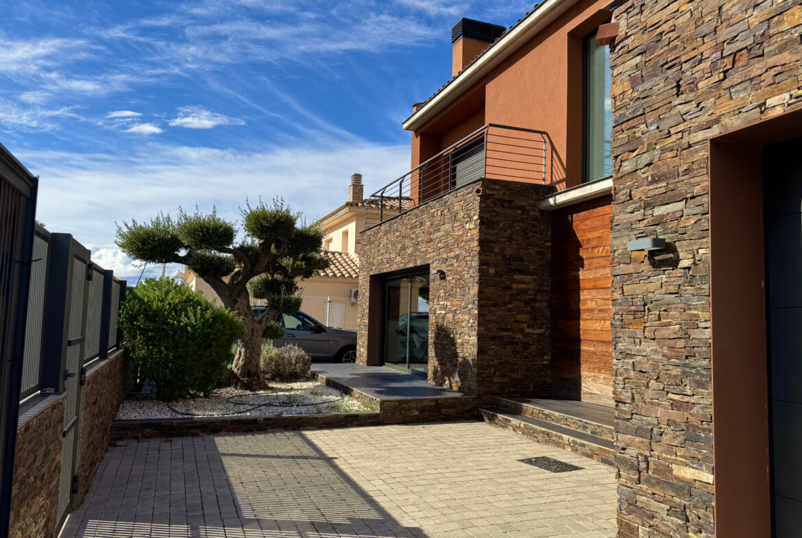 RV01 – Roses; Santa Margarida: Casa en el canal con 20 metros de amarre a la venta. Ideal para catamarán de grandes dimensiones.En la marina residencial de Santa Margarida, en Roses, se encuentra esta bonita casa de nueva construcción.Esta propiedad dispone de un amarre privado para que pueda disfrutar de su yate o velero. Puede acoger embarcaciones de hasta 20 m, a motor o de vela. En la gran terraza disfrutará de las bonitas vistas al canal, la montaña y el parque natural de los Aiguamolls. La vista de la puesta de sol le encantará. Para disfrutar del verano, la casa dispone de una piscina de 10 m x 5 m.La casa consta de un amplio y luminoso comedor, con chimenea y acceso directo al jardín y la piscina, ambos con vistas al canal. La cocina moderna, totalmente equipada, ofrece vistas al canal y a los Pirineos, además de acceso a la terraza. El hall de entrada es majestuoso, con techos altos y una escalera de granito que conduce a la planta superior, donde se ubican las tres suites con baño y terraza privada con vistas.Esta vivienda está construida con materiales modernos y con especial atención a la eficiencia energética, con doble aislamiento: por el exterior y con lana de roca en el interior. Dispone de garaje cerrado y aparcamiento para cuatro vehículos.Casa ubicada a 15 minutos a pie de la playa y de los comercios de Santa Margarida.~
