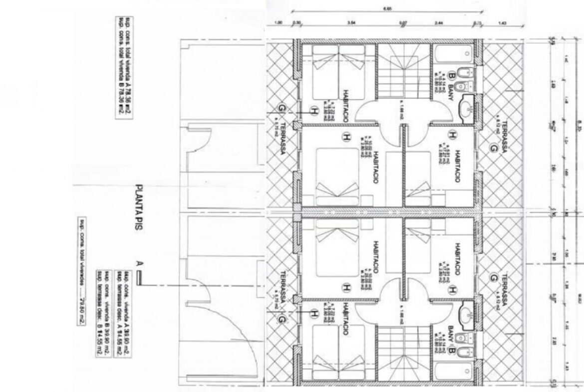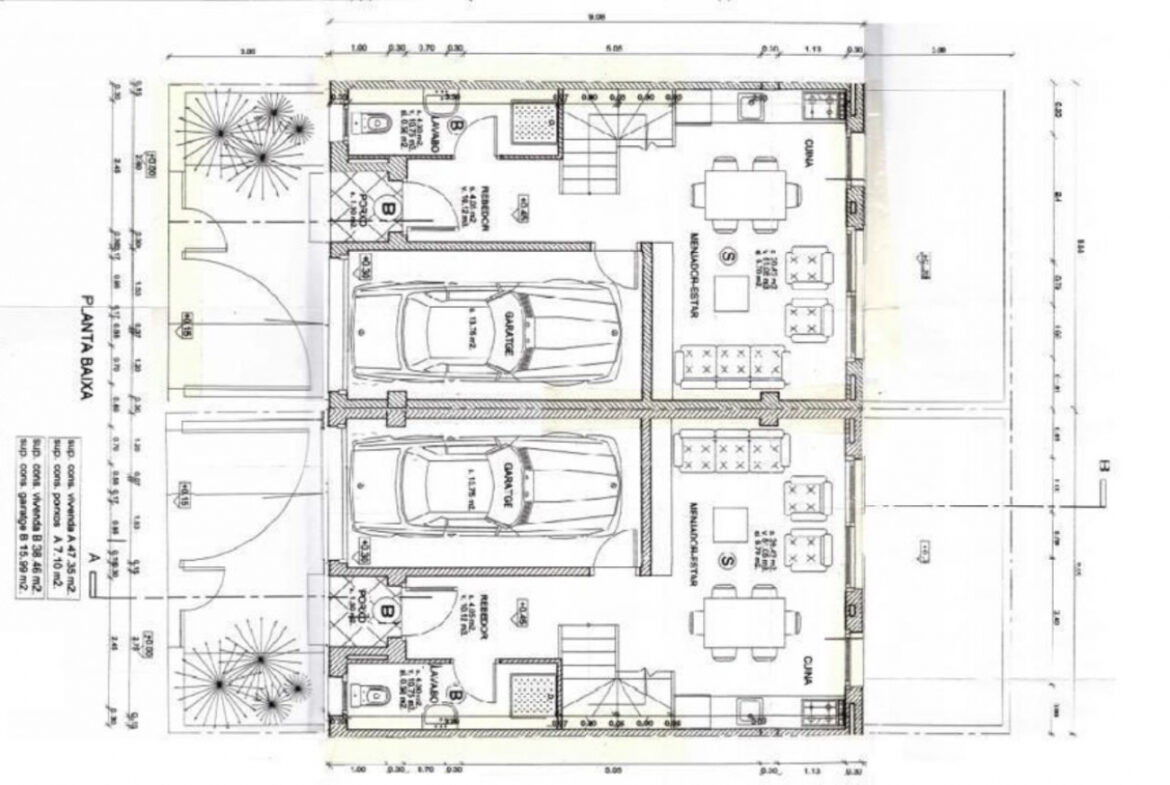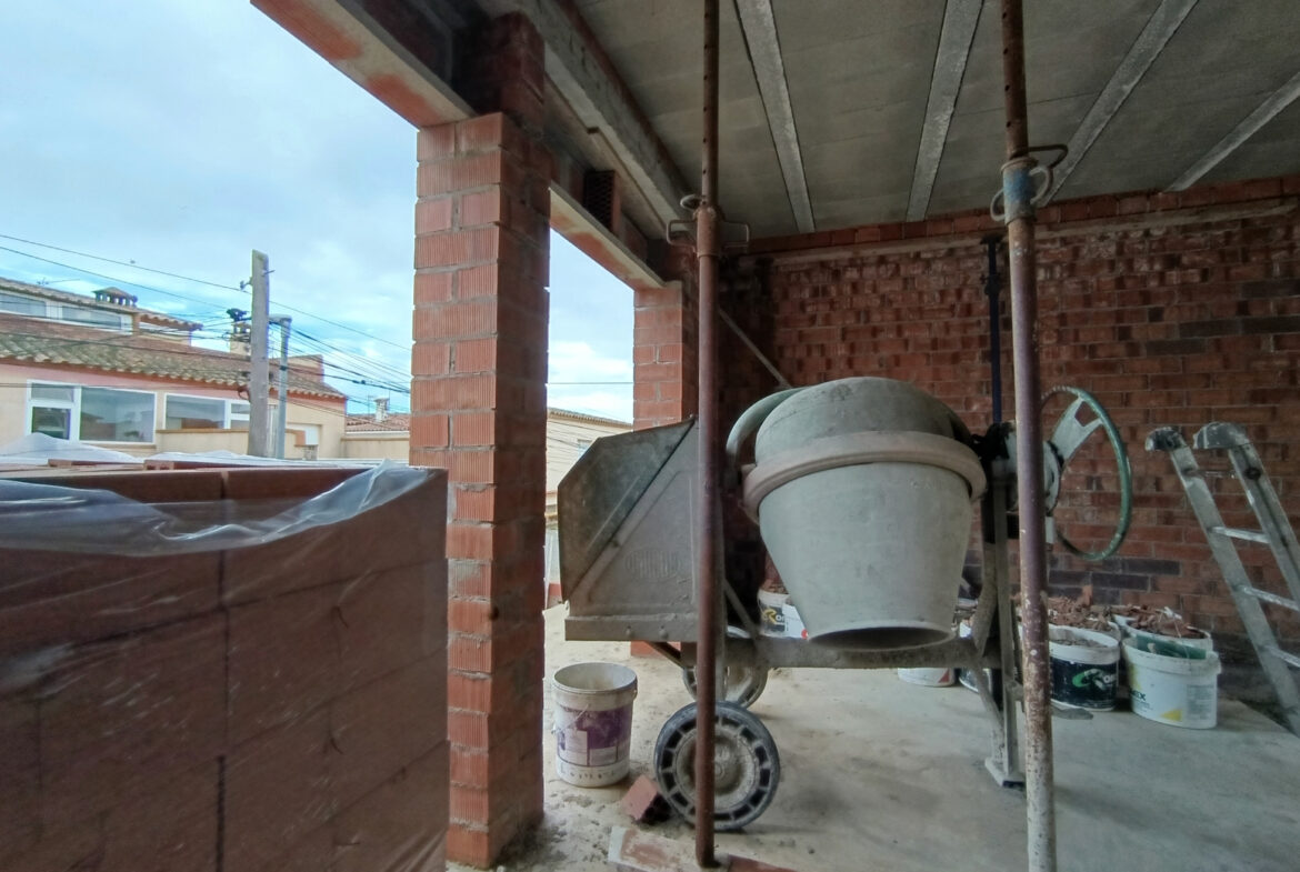 EH02 – Empuriabrava; Castello d’empuries: Construcción de dos casas pareadas de 108m2, en el plano de la construcción de la planta baja consta de un baño completo, una entrada que nos conduce hacia una cocina tipo americana con un amplio salón comedor; con acceso a la terraza exposición sur. En el siguiente plano de la construcción de la planta de arriba consta de 2 habitaciones dobles, 1 individual, 1 baño completo y 2 balcones con exposición sur y norte. Incluye de 2 garajes en cada casa, posibilidad de construcción personalizada (no incluye en el coste) y la venta por separado.~