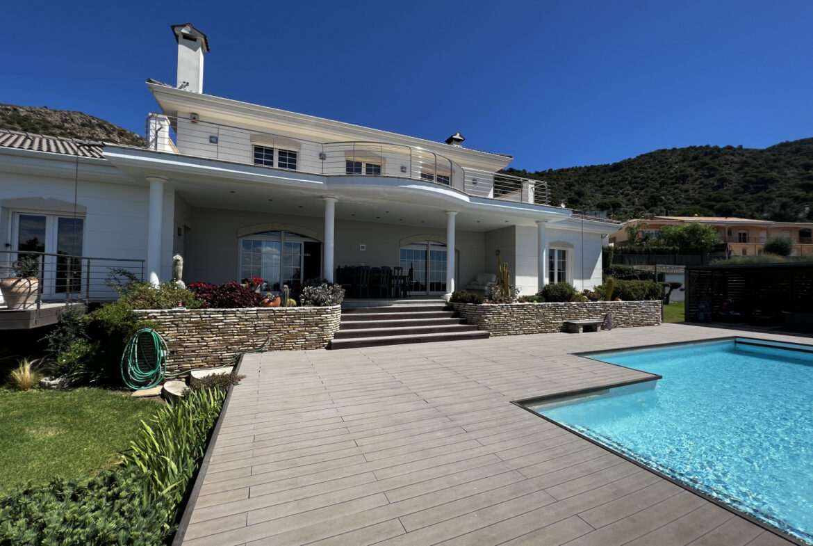 PV04 – Pau: Bienvenido a Pau, una villa de lujo excepcional en la que se puede disfrutar de la tranquilidad y la privacidad en una propiedad totalmente reformada en 2012. Con una superficie de 511 m², la casa está distribuida en dos plantas y se encuentra en una impresionante parcela de 2018 m².Al entrar en la propiedad, se siente una sensación de gran recepción gracias a su espacioso y elegante hall de entrada, con una escalera que lleva al primer piso y un vestidor de grandes puertas. El salón-comedor, con su acogedora chimenea, es el lugar perfecto para disfrutar del invierno en la tranquilidad de su hogar. La villa cuenta con 5 habitaciones espaciosas, de las cuales tres son suites con vestidor y baño. El dormitorio principal se encuentra en la planta baja, mientras que las otras habitaciones están en la planta superior y ofrecen acceso a las terrazas con vistas al mar.Para los amantes de la lectura, la casa cuenta con una biblioteca, mientras que los entusiastas del ocio pueden disfrutar de una habitación de juegos. La cocina central equipada está bien pensada para disfrutar cocinando, y le sigue un segundo office y una tras cocina más pequeña para despensa. Las vistas panorámicas de la bahía de Roses y la montaña son únicas e incomparables, y se pueden disfrutar desde la terraza y el jardín de la villa, donde se encuentra la piscina. Para mayor seguridad, la piscina está equipada con una manta de apertura eléctrica y la casa cuenta con un pool house perfecto para relajarse en el jacuzzi a cualquier hora del día.El jardín vallado ofrece un espacio de sombra y una pequeña laguna con peces y ranas, rodeado de hermosas flores y arbustos. Además, la propiedad cuenta con un pozo viejo que se utiliza para llenar la piscina y un pequeño huerto donde se pueden encontrar tomates y ensaladas de gran calidad.La propiedad también cuenta con nuevas instalaciones de energía solar, con 16 paneles solares en 40 m² y 3 baterías para el suministro total de electricidad de la casa de 15kwh. El garaje es perfecto para 3 coches y un taller, y la casa cuenta con espacio adicional para otros vehículos en el exterior.La ubicación de la propiedad es perfecta para los amantes de la naturaleza, con acceso a algunos senderos de fácil acceso y vistas mágicas, incluyendo la Creu Blanca, que llega hasta el puerto de La Selva.No pierda la oportunidad de visitar esta increíble propiedad ubicada en una bonita urbanización de lujo. Llámenos y estaremos encantados de proporcionarle toda la información que necesite. Esta es una oportunidad única para vivir en una villa de lujo en un entorno tranquilo y con todas las comodidades que pueda desear. ¡Le esperamos en Pau!~