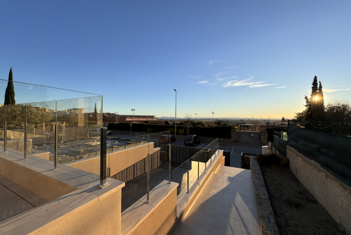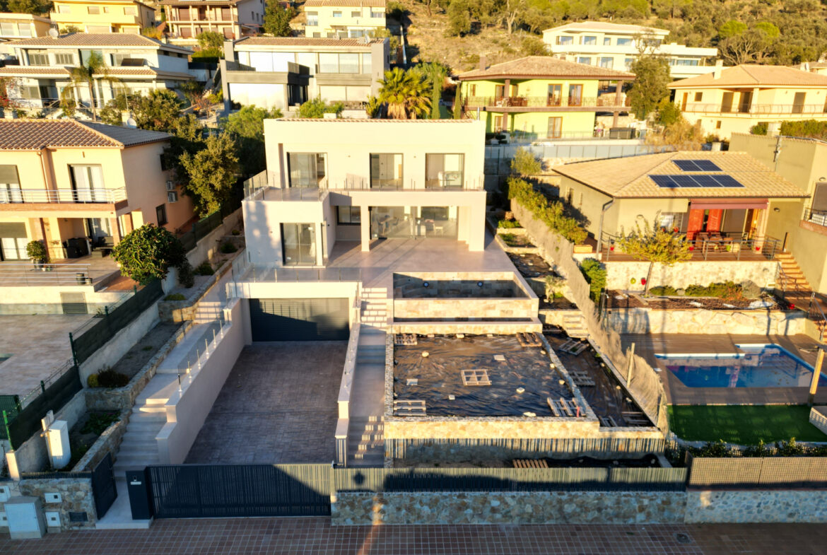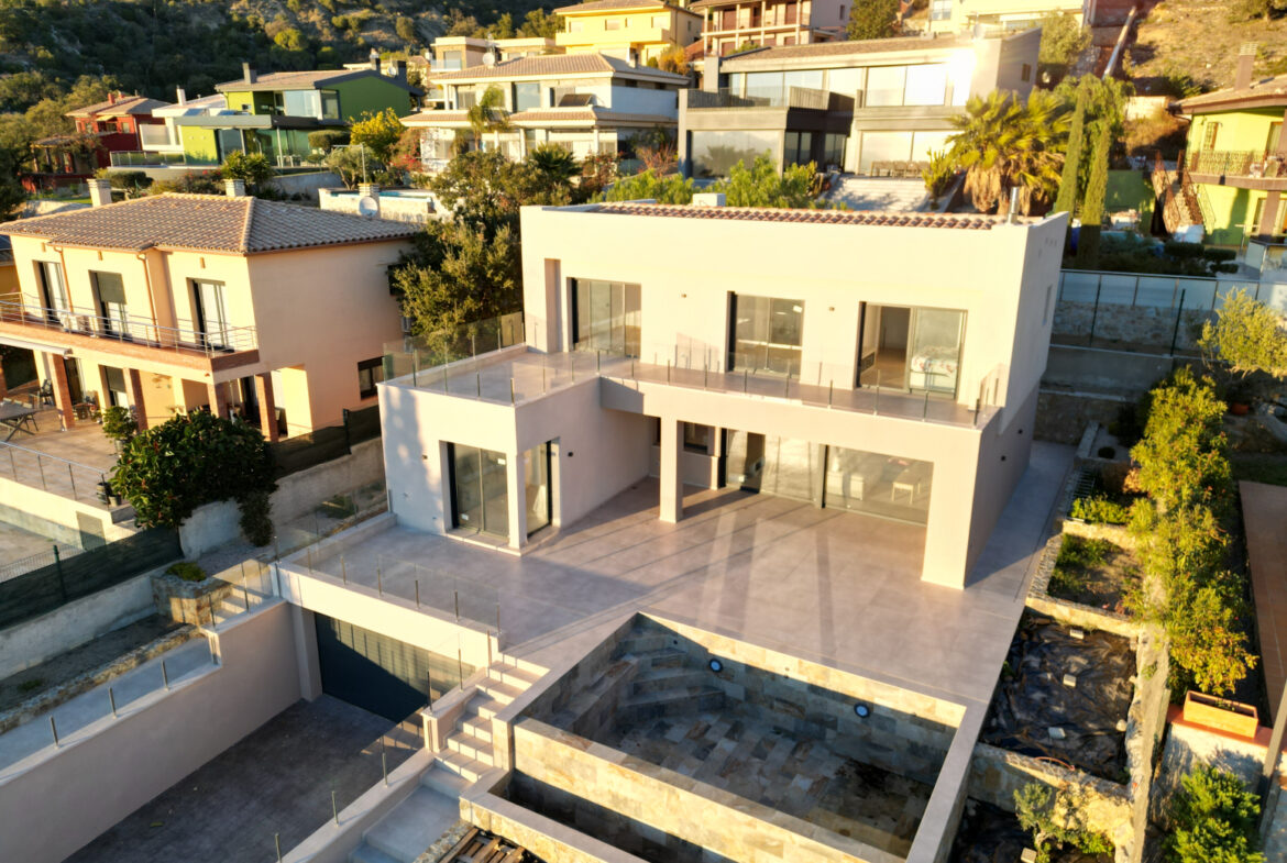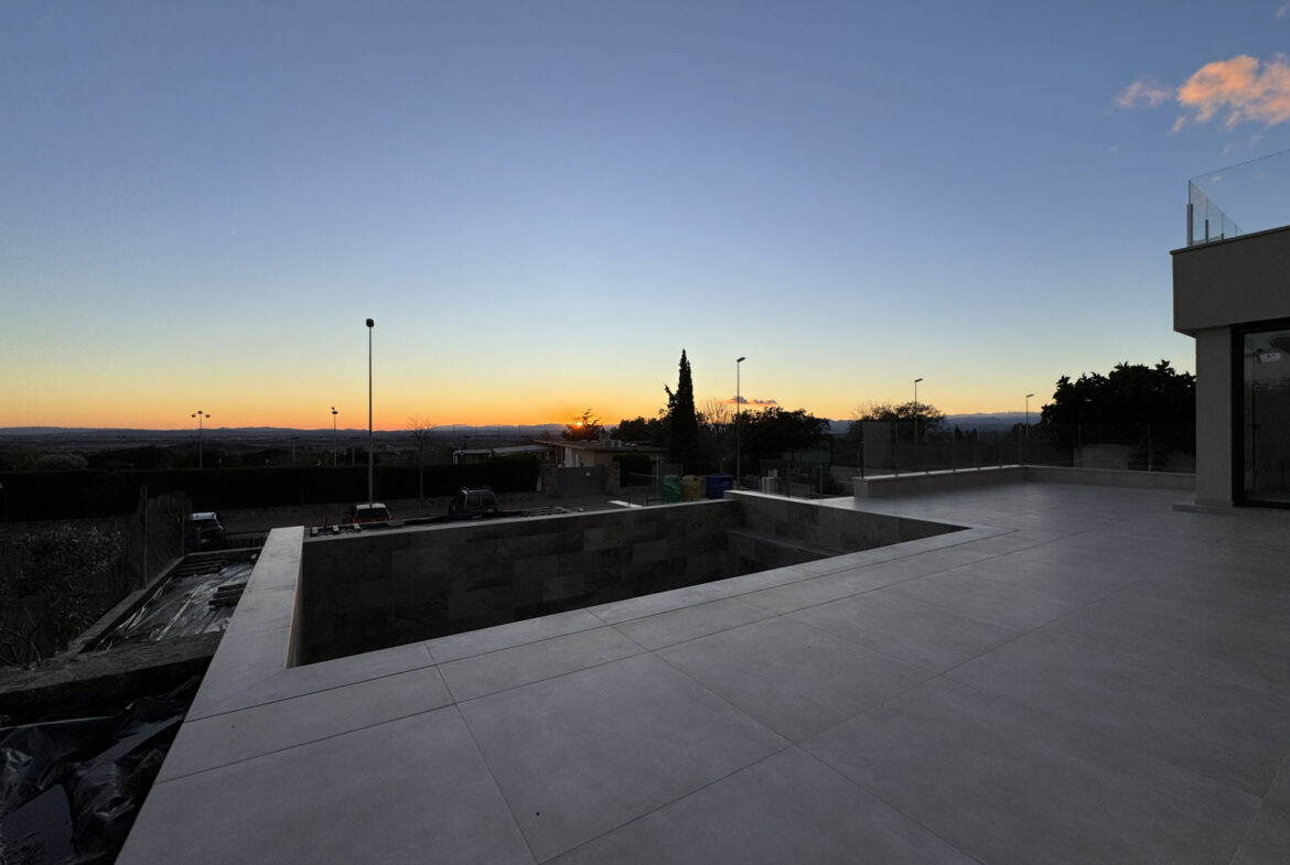PSV05 – Mas Bohera, Palau Saverdera, villa.- Excepcional residencia en Palau Saverdera, con impresionantes vistas y orientación oeste. La propiedad se distribuye de manera óptima, con la planta baja al nivel de la calle que alberga un garaje con capacidad para 5 vehículos, trasteros y la posibilidad de instalar un ascensor en el futuro. En la primera planta, se encuentra una espaciosa suite, un baño adicional, cocina abierta y un amplio comedor con acceso a una generosa terraza parcialmente cubierta, que se extiende hasta la piscina desbordante. La planta segunda cuenta con dos habitaciones, un baño completo y otra suite con baño privado, todas ellas con terrazas individuales.Esta residencia ha sido construida con los más altos estándares utilizando materiales de primera calidad, incluyendo calefacción radiante con colectores en todas las plantas, sistema de aire acondicionado centralizado, aerotermia y paredes revestidas en piedra natural. La fachada, terminada con sistema de aislamiento térmico exterior (sate), garantiza un aislamiento máximo.No dude en ponerse en contacto con nosotros para concertar una visita y descubrir de cerca esta maravillosa villa que ofrece un estilo de vida único.~