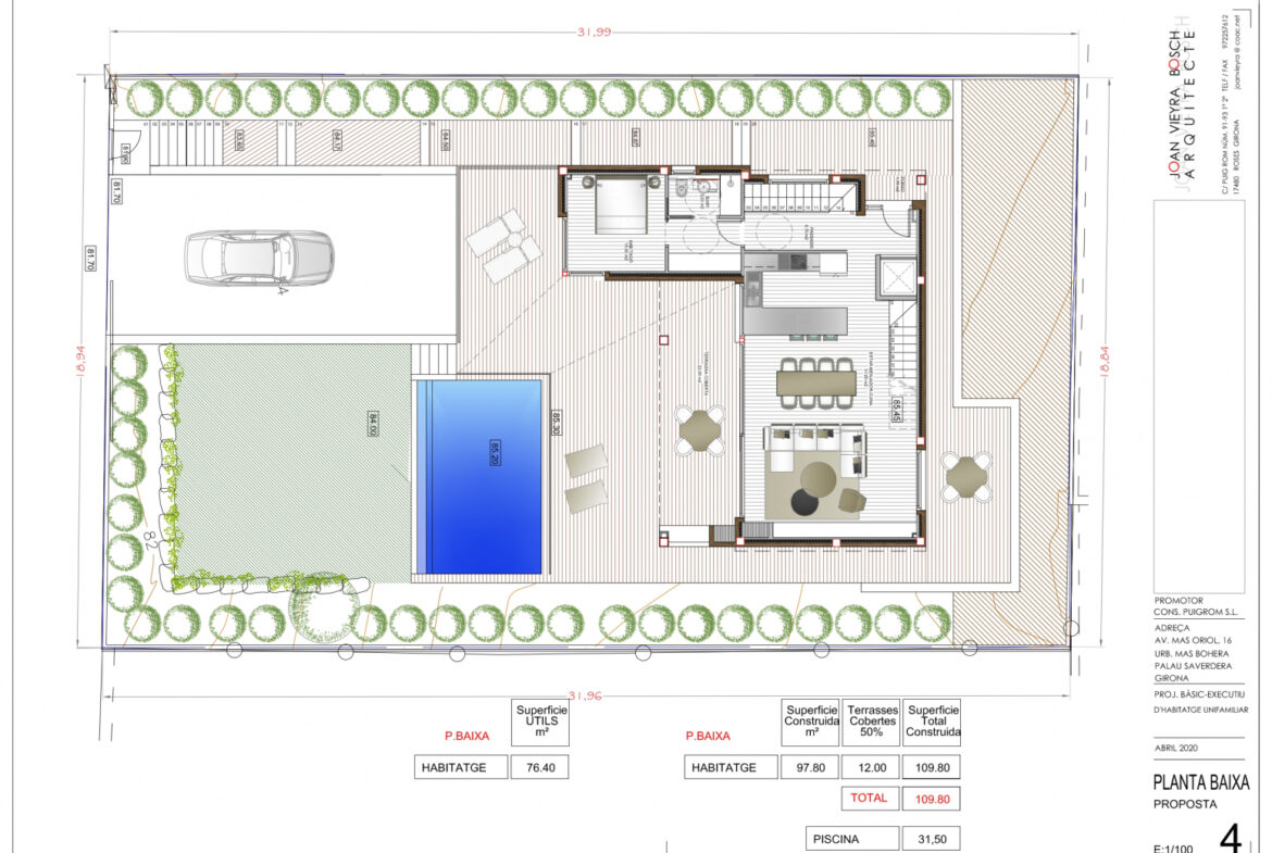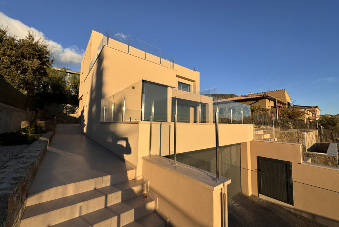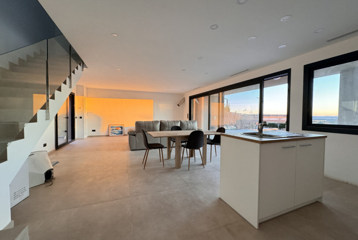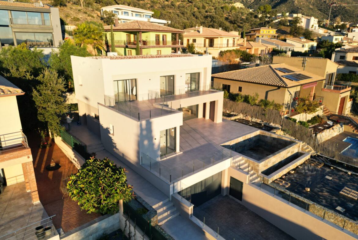 PSV05 – Mas Bohera, Palau Saverdera, villa.- Excepcional residencia en Palau Saverdera, con impresionantes vistas y orientación oeste. La propiedad se distribuye de manera óptima, con la planta baja al nivel de la calle que alberga un garaje con capacidad para 5 vehículos, trasteros y la posibilidad de instalar un ascensor en el futuro. En la primera planta, se encuentra una espaciosa suite, un baño adicional, cocina abierta y un amplio comedor con acceso a una generosa terraza parcialmente cubierta, que se extiende hasta la piscina desbordante. La planta segunda cuenta con dos habitaciones, un baño completo y otra suite con baño privado, todas ellas con terrazas individuales.Esta residencia ha sido construida con los más altos estándares utilizando materiales de primera calidad, incluyendo calefacción radiante con colectores en todas las plantas, sistema de aire acondicionado centralizado, aerotermia y paredes revestidas en piedra natural. La fachada, terminada con sistema de aislamiento térmico exterior (sate), garantiza un aislamiento máximo.No dude en ponerse en contacto con nosotros para concertar una visita y descubrir de cerca esta maravillosa villa que ofrece un estilo de vida único.~