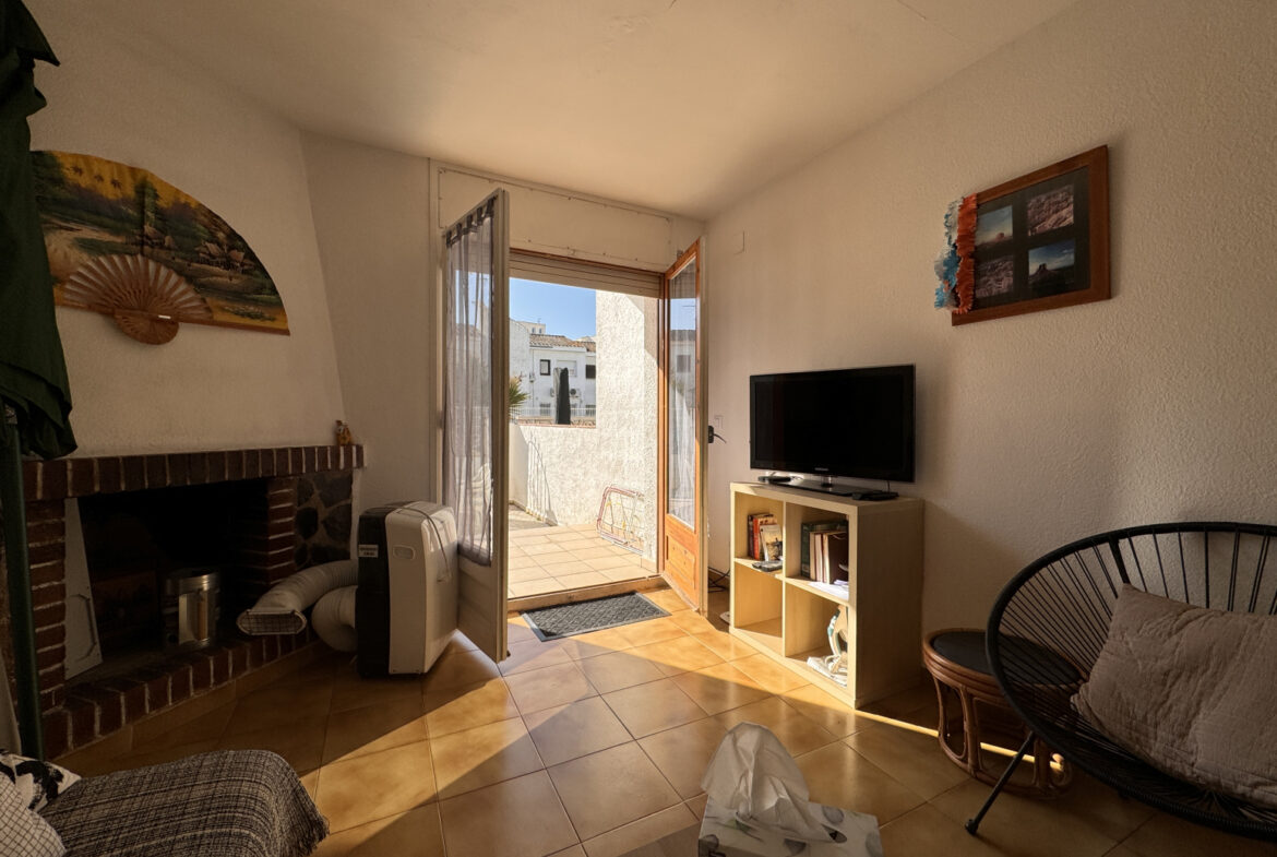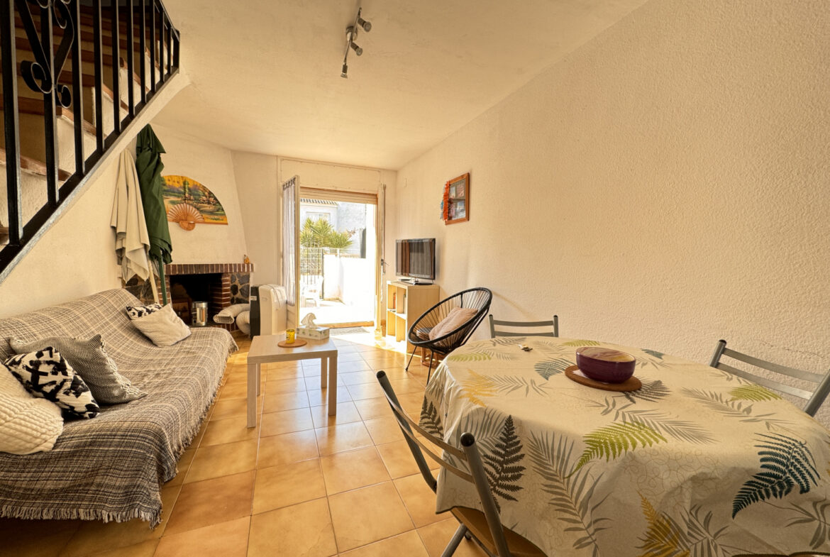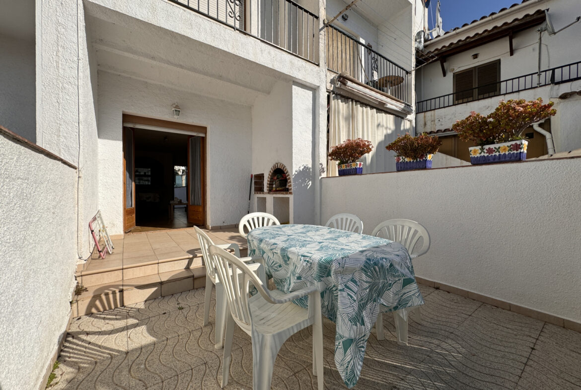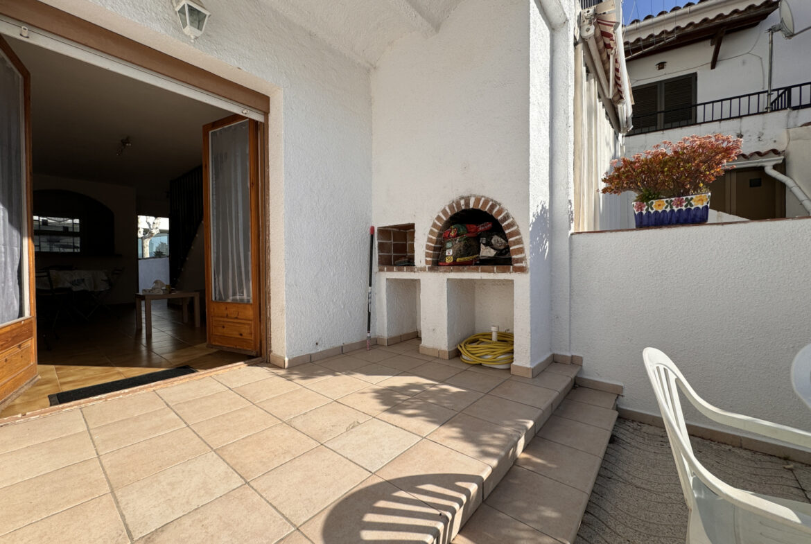 EH14 – Empuriabrava; sector Flamicell. Explora esta cautivadora vivienda adosada de 66 metros cuadrados, donde cada espacio ha sido meticulosamente diseñado para brindarte comodidad y estilo excepcional!Cuando pongas un pie dentro, serás recibido por una planta baja que derrocha modernidad y funcionalidad. Desde el acogedor vestíbulo con su propia plaza de aparcamiento, hasta la cocina americana de diseño elegante que se convierte en el epicentro del hogar, cada detalle ha sido cuidadosamente seleccionado para tu disfrute. La luminosa sala de estar-comedor, realzada por una chimenea acogedora, te invita a relajarte o a compartir momentos especiales con tus seres queridos. Y desde aquí, accedes a una amplia terraza con zona de barbacoa, que te conecta directamente con la piscina comunitaria, un refugio de tranquilidad y diversión.Al subir al primer piso, te esperan dos dormitorios encantadores, cada uno con su propio encanto único. Uno de ellos cuenta con un balcón privado, perfecto para disfrutar de las vistas panorámicas y la brisa fresca en cualquier momento. Además, un baño completo asegura tu confort y bienestar diario.Finalmente, en la última planta, te aguarda una sorpresa especial: una espectacular terraza solárium de 30 metros cuadrados, donde podrás relajarte bajo el sol y disfrutar de vistas impresionantes. Además, tienes la emocionante posibilidad de ampliar una habitación más, brindándote aún más flexibilidad para adaptar este hogar a tus necesidades y preferencias.Esta casa adosada representa una oportunidad única para vivir la vida que siempre has soñado, fusionando comodidad, elegancia y un estilo de vida al aire libre. ¡No dejes pasar la oportunidad de convertir este espacio en tu hogar ideal! ¡Contáctanos hoy mismo para concertar una visita y descubrir todas las maravillas que esta propiedad tiene para ofrecerte! ~