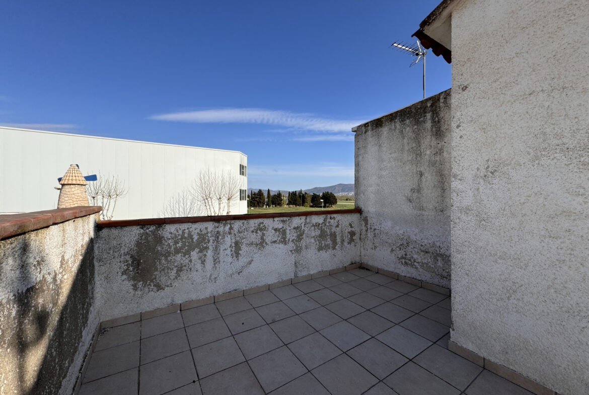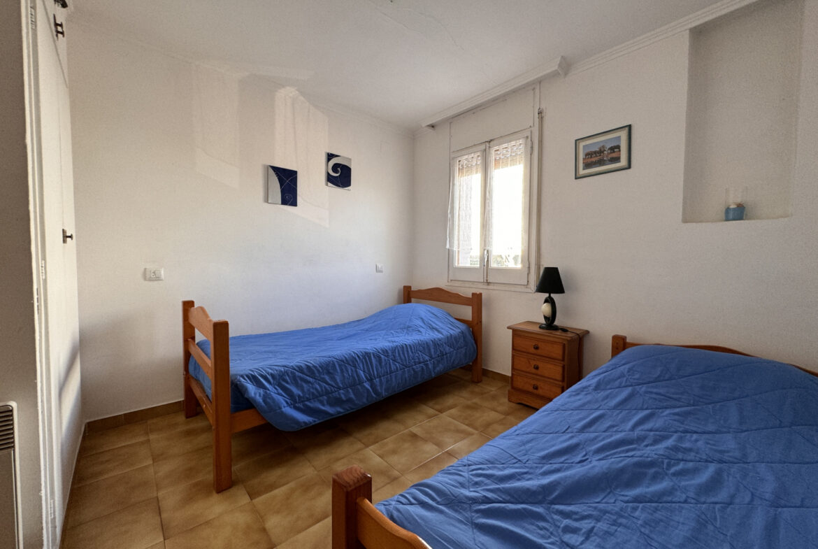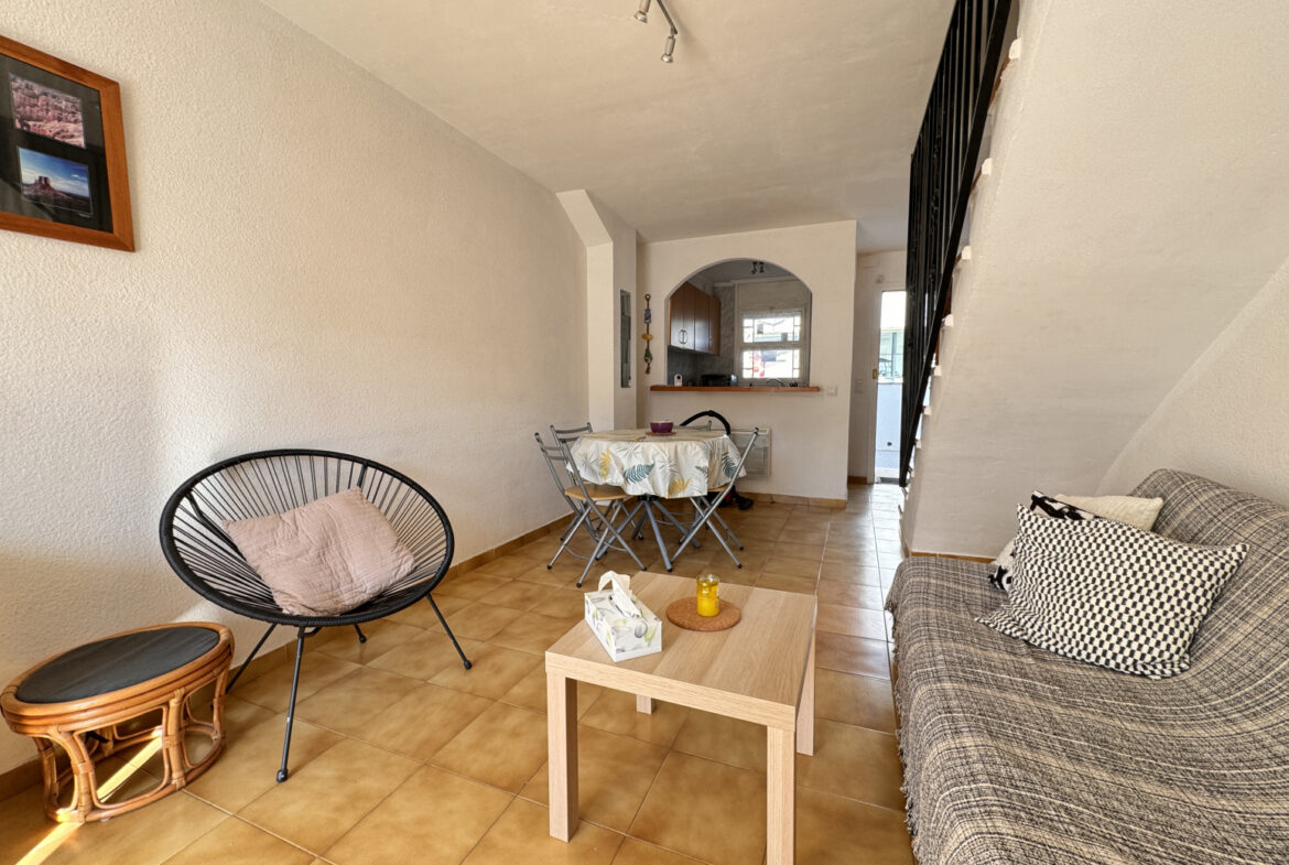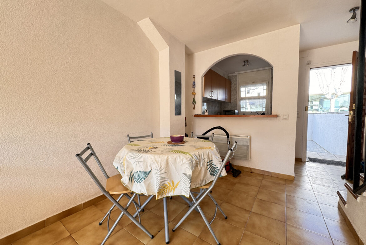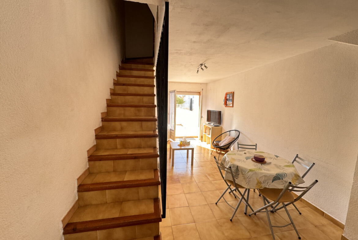 EH14 – Empuriabrava; sector Flamicell. Explora esta cautivadora vivienda adosada de 66 metros cuadrados, donde cada espacio ha sido meticulosamente diseñado para brindarte comodidad y estilo excepcional!Cuando pongas un pie dentro, serás recibido por una planta baja que derrocha modernidad y funcionalidad. Desde el acogedor vestíbulo con su propia plaza de aparcamiento, hasta la cocina americana de diseño elegante que se convierte en el epicentro del hogar, cada detalle ha sido cuidadosamente seleccionado para tu disfrute. La luminosa sala de estar-comedor, realzada por una chimenea acogedora, te invita a relajarte o a compartir momentos especiales con tus seres queridos. Y desde aquí, accedes a una amplia terraza con zona de barbacoa, que te conecta directamente con la piscina comunitaria, un refugio de tranquilidad y diversión.Al subir al primer piso, te esperan dos dormitorios encantadores, cada uno con su propio encanto único. Uno de ellos cuenta con un balcón privado, perfecto para disfrutar de las vistas panorámicas y la brisa fresca en cualquier momento. Además, un baño completo asegura tu confort y bienestar diario.Finalmente, en la última planta, te aguarda una sorpresa especial: una espectacular terraza solárium de 30 metros cuadrados, donde podrás relajarte bajo el sol y disfrutar de vistas impresionantes. Además, tienes la emocionante posibilidad de ampliar una habitación más, brindándote aún más flexibilidad para adaptar este hogar a tus necesidades y preferencias.Esta casa adosada representa una oportunidad única para vivir la vida que siempre has soñado, fusionando comodidad, elegancia y un estilo de vida al aire libre. ¡No dejes pasar la oportunidad de convertir este espacio en tu hogar ideal! ¡Contáctanos hoy mismo para concertar una visita y descubrir todas las maravillas que esta propiedad tiene para ofrecerte! ~