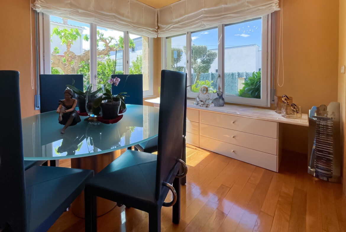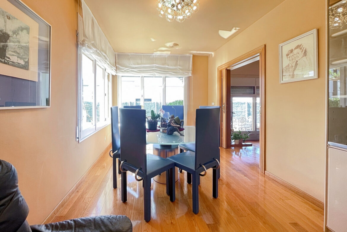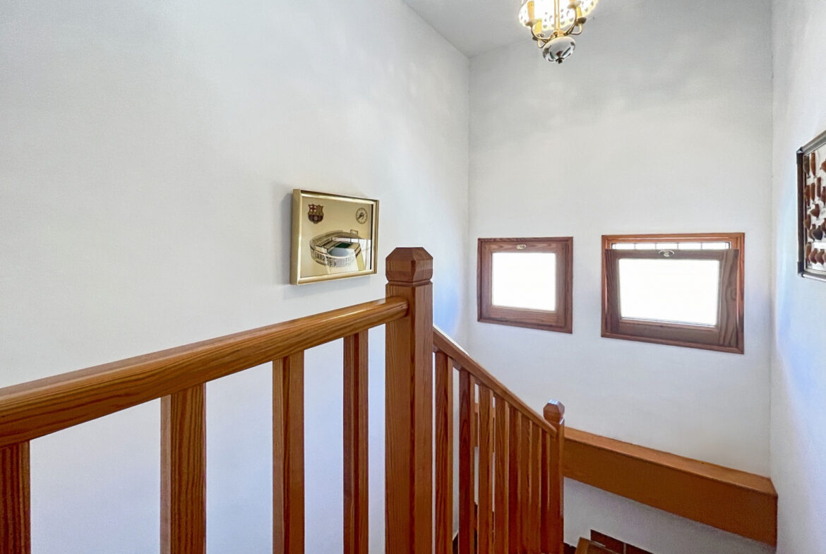 RV38 – Roses, Mas Mates, Villa; elegancia y el confort se fusionan en cada espacio de esta casa construida en 1991, esta residencia deslumbra con su diseño luminoso y su cuidada selección de materiales. La madera de roble, presente en toda la casa, brinda una sensación acogedora y un ambiente cálido. En la planta baja, te recibirá una suite de lujo con baño privado y armarios empotrados, mientras que la cocina-comedor, con su chimenea característica, ofrece un espacio moderno con un toque tradicional. El amplio salón, con techos altos y acceso al jardín, es perfecto para momentos de relajación y reuniones sociales. En la planta principal, la suite parental con balcón te invita a disfrutar de vistas panorámicas, acompañada de dos dormitorios adicionales y un funcional despacho. El sótano alberga una bodega ideal para eventos, mientras que los jardines, con su barbacoa al aire libre y áreas de descanso, ofrecen un refugio tranquilo y sereno. Equipada con calefacción central de gas ciudad, aire acondicionado y sistema de alarma, esta propiedad garantiza tu comodidad y seguridad en todo momento.~