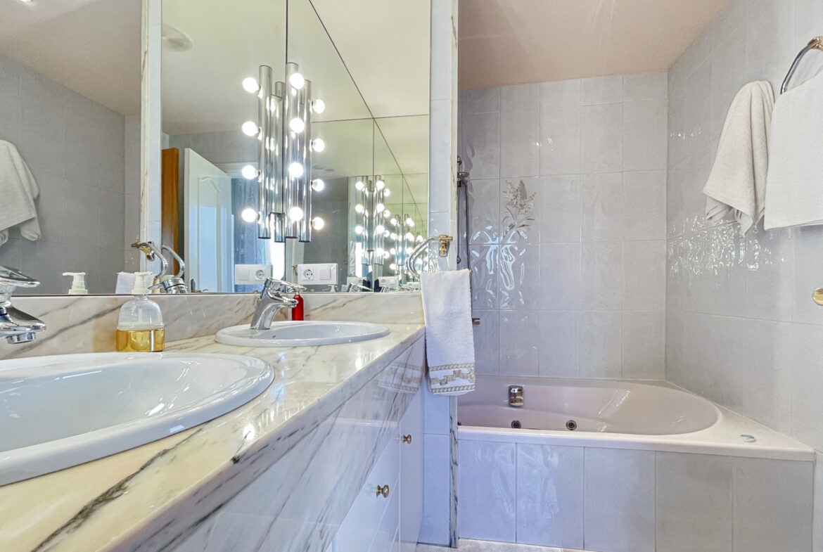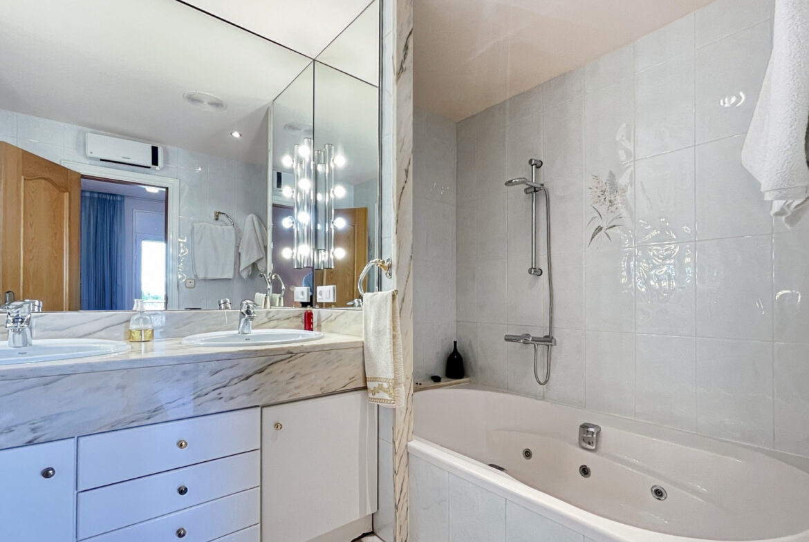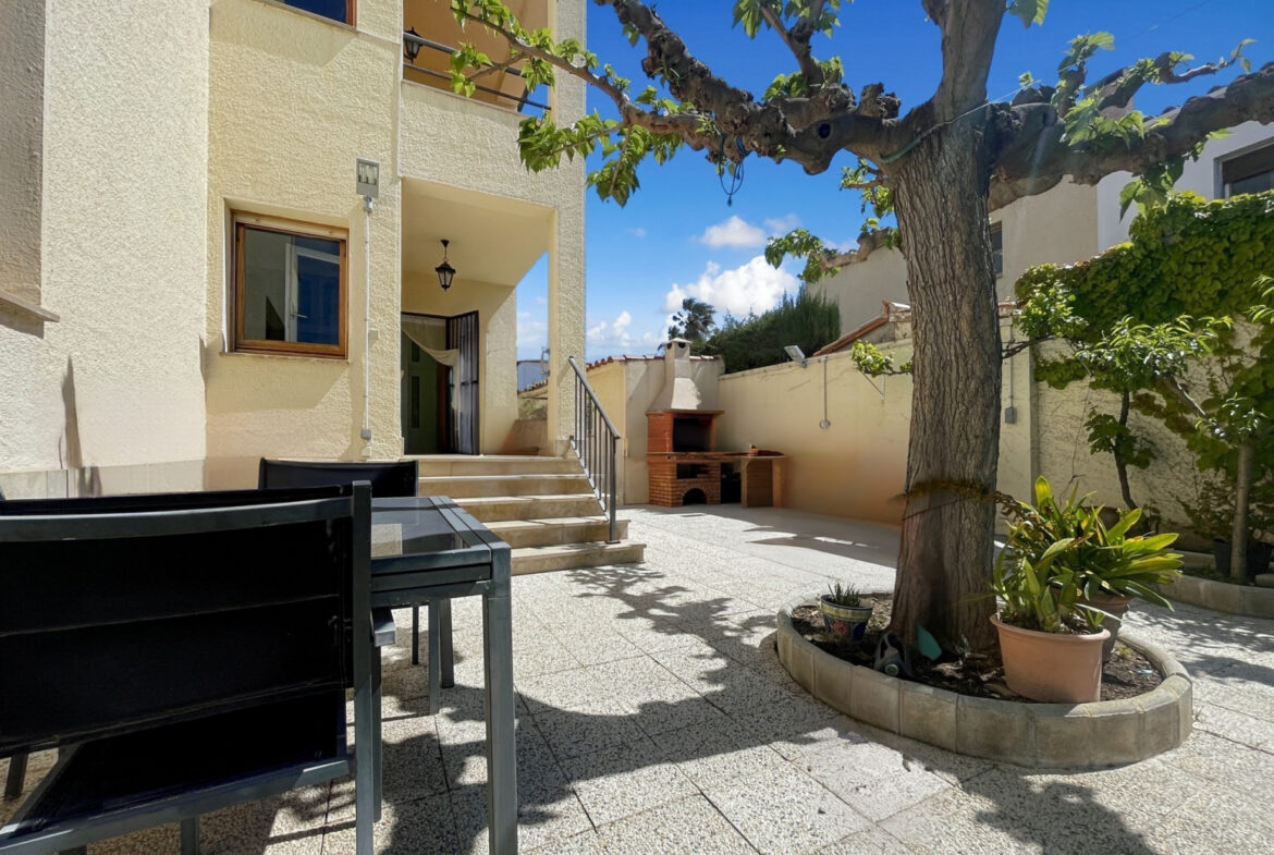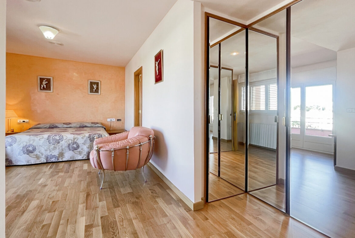 RV38 – Roses, Mas Mates, Villa; elegancia y el confort se fusionan en cada espacio de esta casa construida en 1991, esta residencia deslumbra con su diseño luminoso y su cuidada selección de materiales. La madera de roble, presente en toda la casa, brinda una sensación acogedora y un ambiente cálido. En la planta baja, te recibirá una suite de lujo con baño privado y armarios empotrados, mientras que la cocina-comedor, con su chimenea característica, ofrece un espacio moderno con un toque tradicional. El amplio salón, con techos altos y acceso al jardín, es perfecto para momentos de relajación y reuniones sociales. En la planta principal, la suite parental con balcón te invita a disfrutar de vistas panorámicas, acompañada de dos dormitorios adicionales y un funcional despacho. El sótano alberga una bodega ideal para eventos, mientras que los jardines, con su barbacoa al aire libre y áreas de descanso, ofrecen un refugio tranquilo y sereno. Equipada con calefacción central de gas ciudad, aire acondicionado y sistema de alarma, esta propiedad garantiza tu comodidad y seguridad en todo momento.~