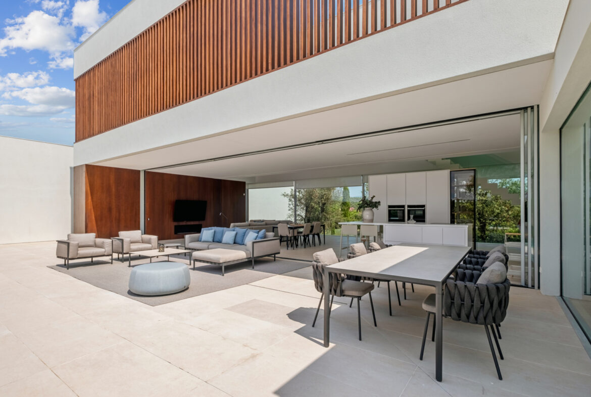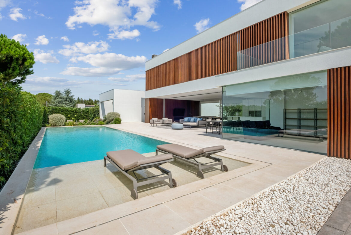 PRDAV02 Golf de Peralada, Villa de lujo. Esta impresionante villa de diseño único, construida en 2021, se encuentra en una parcela de 1.891 m² y ofrece 1.127 m² de superficie construida. Su distribución incluye 666 m² de vivienda, 85 m² dedicados a zona deportiva y gimnasio, y un garaje de 376 m² con capacidad para más de 10 vehículos.En la planta inferior destaca el garaje con luz natural, un almacén, habitación de servicio, lavandería, una espectacular piscina interior climatizada con sistema de nado contracorriente, sauna, y ducha integrada en un espacio lleno de detalles exclusivos.La planta baja alberga dos amplias suites de 24 m² con baños revestidos en mármol de diseño Porcelanosa, un gimnasio de 58 m² con acceso a terraza exterior, y un espectacular salón-comedor-cocina de 98 m², rodeado de ventanales de 3 metros de altura con persianas y ventanas motorizadas. La cocina, abierta y elegante, cuenta con electrodomésticos de alta gama Neff y un diseño modelo Emotions de Porcelanosa.La planta superior está dedicada a la suite principal, un espacio único con terraza privada, vistas al campo de golf, un patio interior acristalado, armarios empotrados y un baño que combina elegancia y funcionalidad, equipado con bañera, ducha doble y tocador doble.La villa ofrece las últimas tecnologías: domótica avanzada Jung, carpintería Technal con aislamiento térmico, aerotermia, suelo radiante, climatización por fancoils y sistema de alarma con videovigilancia. Los exteriores incluyen una piscina rodeada de terrazas y mobiliario de lujo, además de iluminación multicolor y sistema de riego automatizado.La villa dispone de licencia turistica.Te invitamos a disfrutar de sus amplios espacios y su tranquilidad. ¡No dejes pasar esta oportunidad única de convertirte en el dueño de este impresionante inmueble! ~