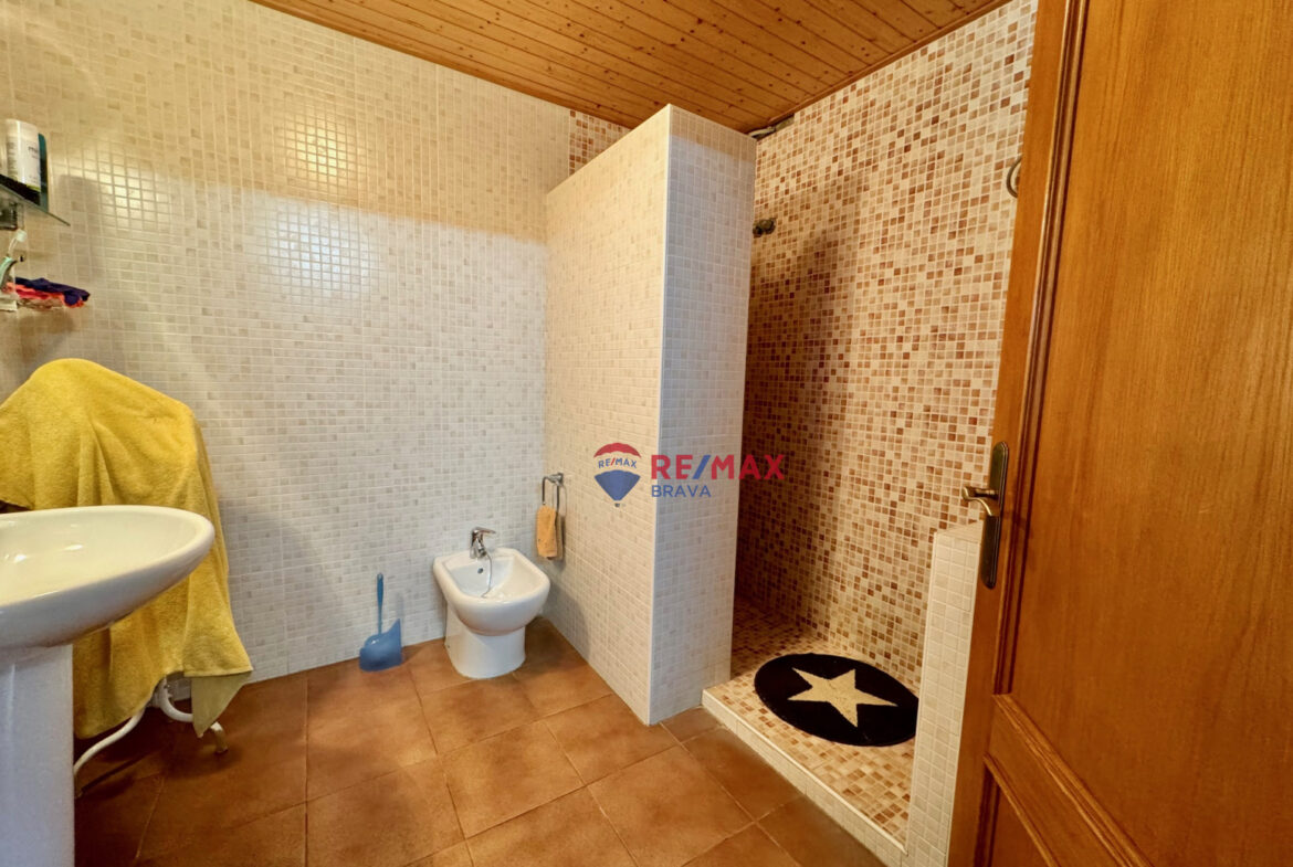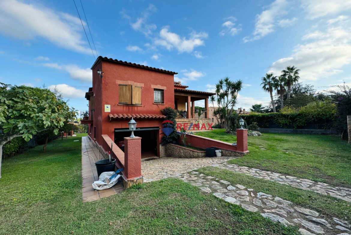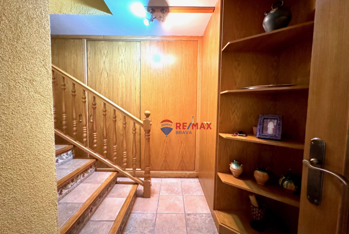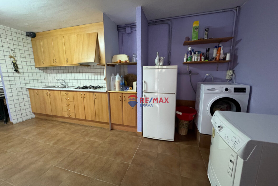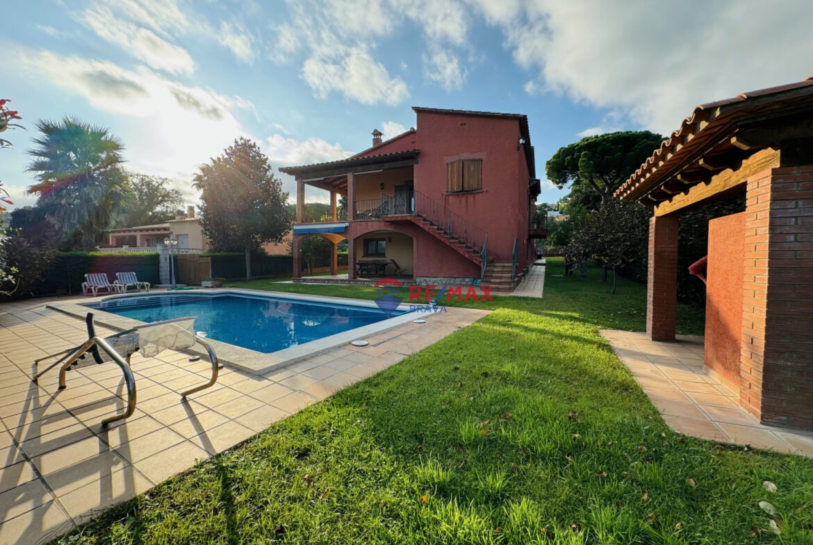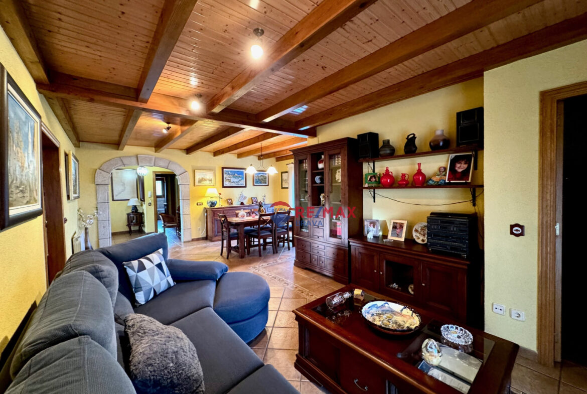 CALV06 Calonge: Casa. Magnífica villa con encanto y acabados de primera calidad! Construida en 2002, esta propiedad ofrece una amplia entrada, salón con elegante techo de madera, comedor con chimenea y cocina equipada. Cuenta con una suite principal, dos habitaciones dobles y un baño completo. Gran terraza cubierta para disfrutar del exterior. En el sótano, taller de 30 m² con aire acondicionado, cocina de verano y garaje para tres coches. Caseta de barbacoa, piscina de 8×4 m, jardín con frutales y pozo propio completan este oasis único. ¡Una oportunidad excepcional.~