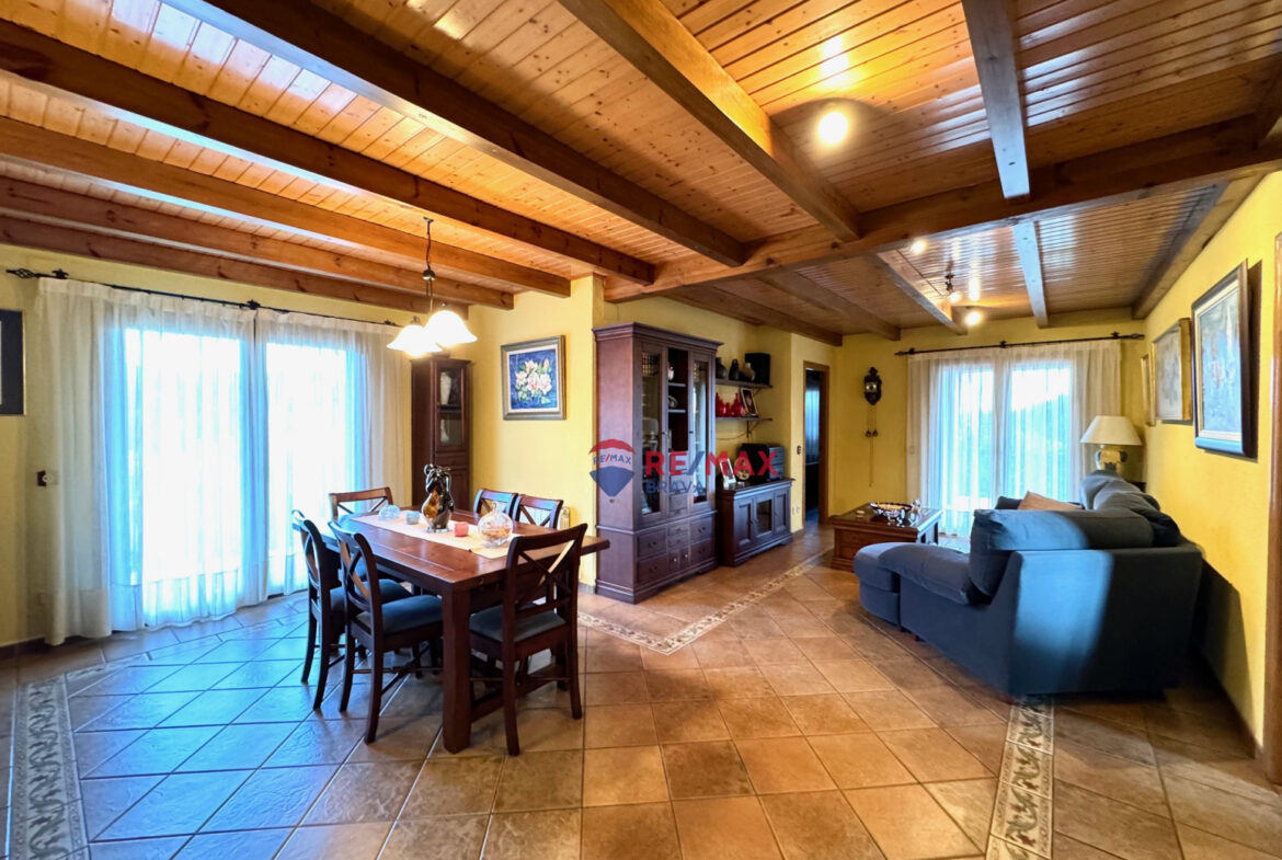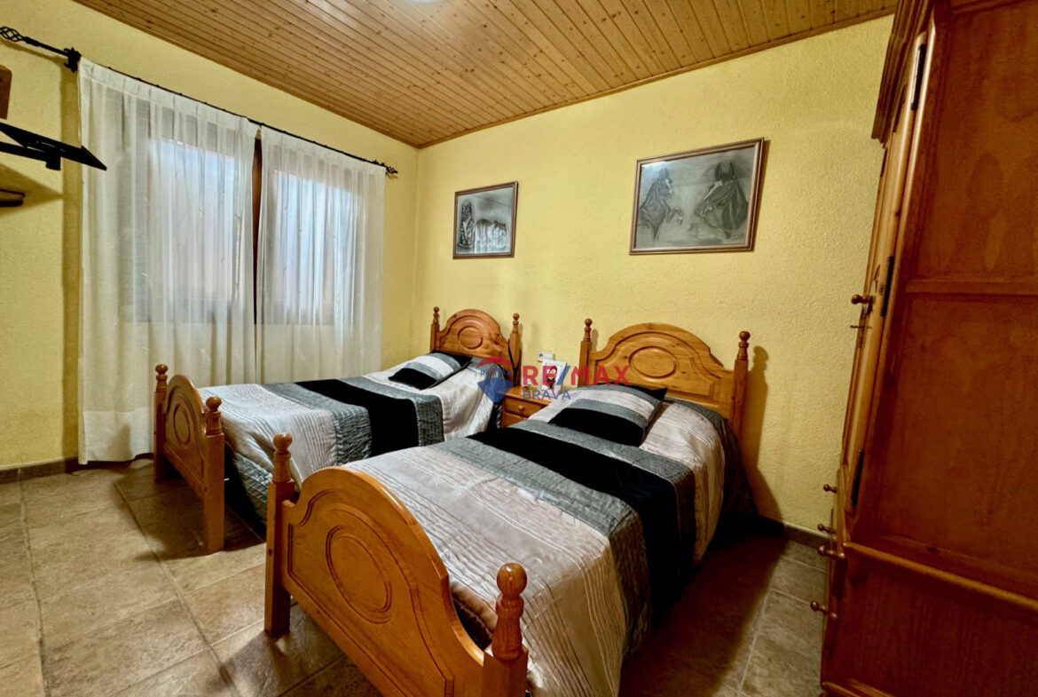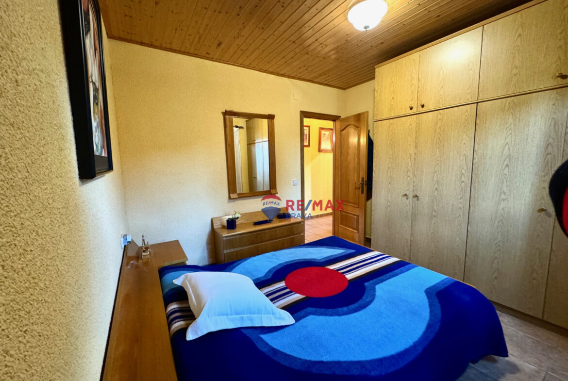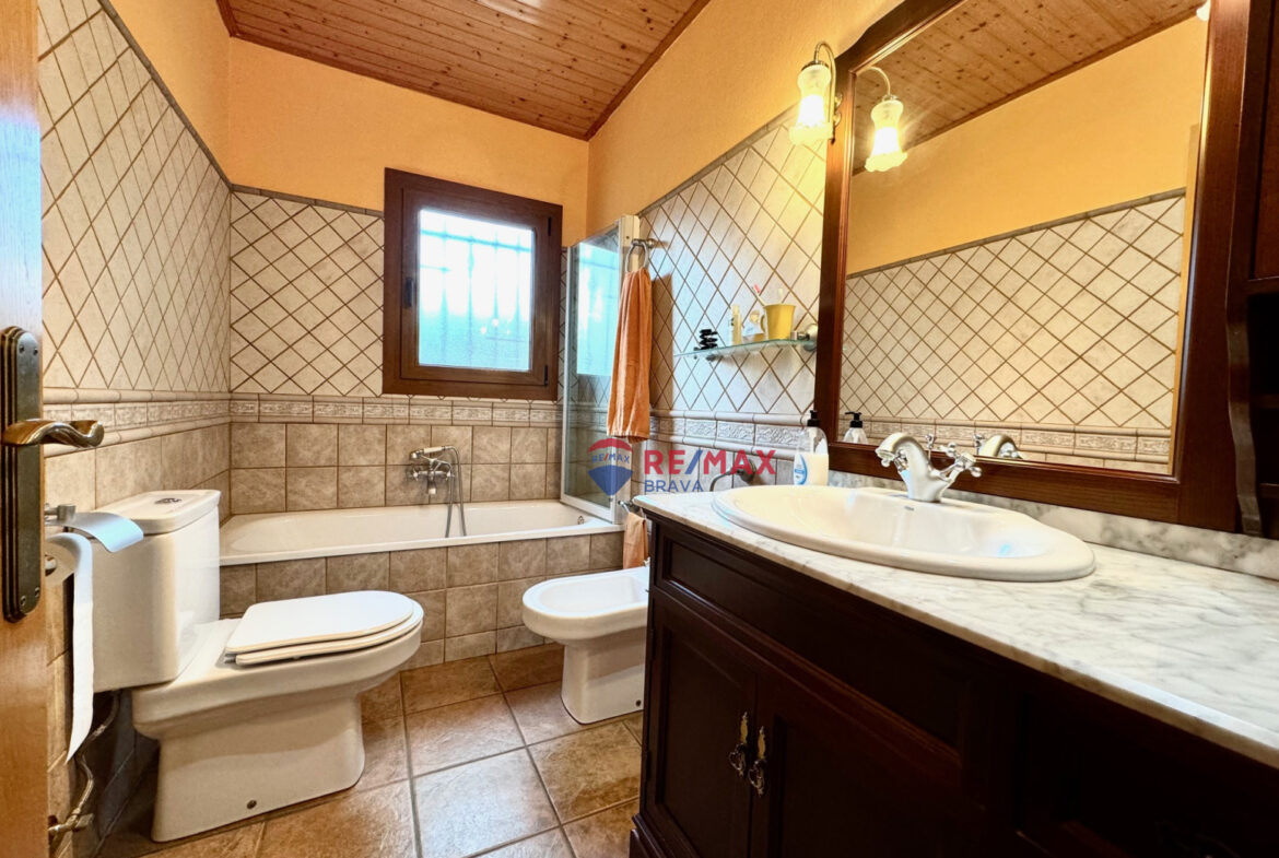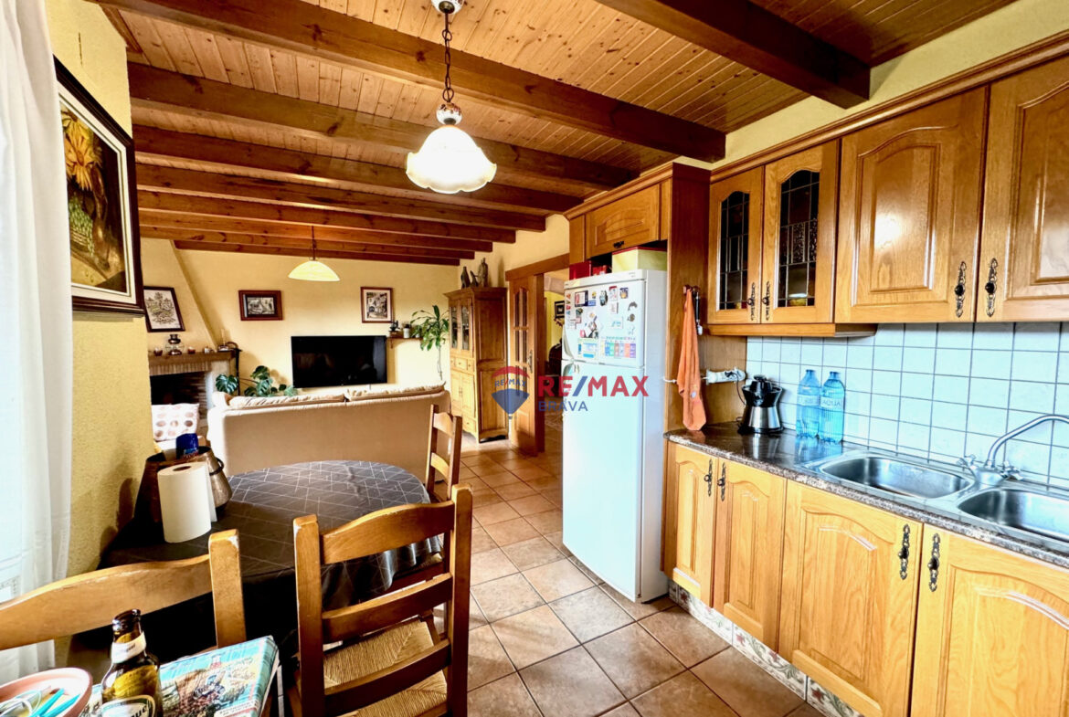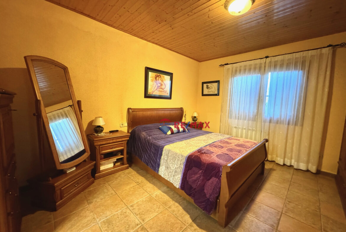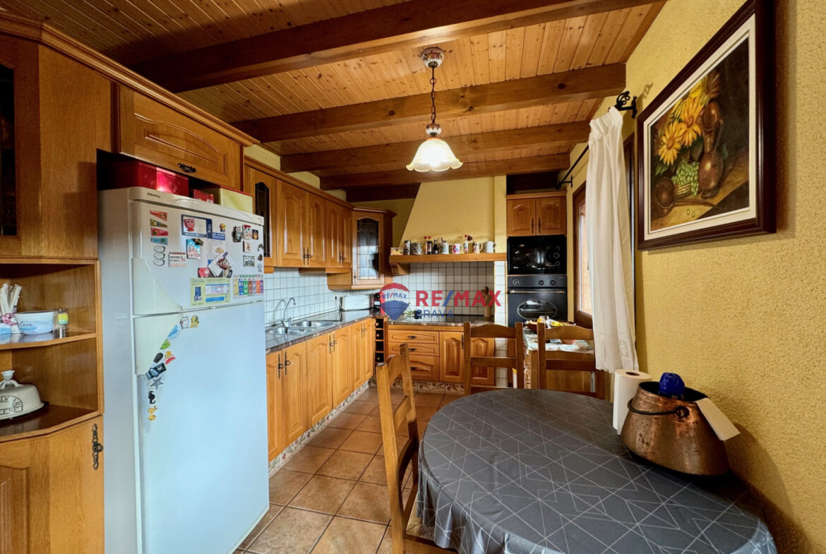 CALV06 Calonge: Casa. Magnífica villa con encanto y acabados de primera calidad! Construida en 2002, esta propiedad ofrece una amplia entrada, salón con elegante techo de madera, comedor con chimenea y cocina equipada. Cuenta con una suite principal, dos habitaciones dobles y un baño completo. Gran terraza cubierta para disfrutar del exterior. En el sótano, taller de 30 m² con aire acondicionado, cocina de verano y garaje para tres coches. Caseta de barbacoa, piscina de 8×4 m, jardín con frutales y pozo propio completan este oasis único. ¡Una oportunidad excepcional.~