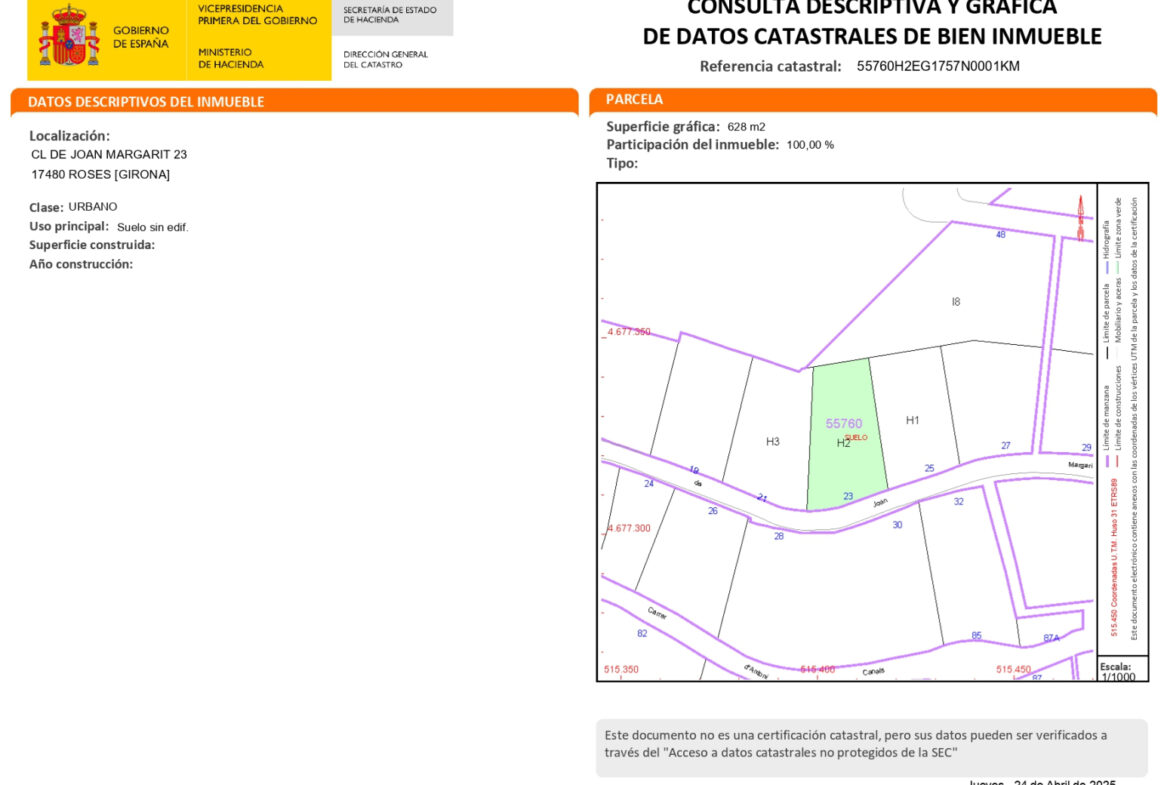 RVA59 Roses, Terreno. Está buscando una parcela con vistas en la Costa Brava para construir una vivienda a medida? Esta es una oportunidad única. Le presentamos este terreno residencial de 628 m², ubicado en una zona privilegiada, con una exposición sur que garantiza sol durante todo el día y unas vistas despejadas realmente espectaculares al entorno natural que la rodea.La parcela es completamente urbanizable y permite construir una vivienda unifamiliar de hasta 219 m² construidos, perfecta para diseñar un chalet exclusivo con jardín, piscina y todas las comodidades, en un entorno tranquilo y bien conectado.Todos los suministros disponibles a pie de parcela (agua, luz, alcantarillado, zona residencial consolidada y con excelentes accesos, entorno natural y vistas panorámicas impresionantes, orientación sur, ideal para aprovechar la luz solar todo el año, edificabilidad máxima: 219 m² construidos, superficie total: 628 m².Este terreno ofrece la posibilidad de crear una vivienda totalmente personalizada, con materiales y distribución a su gusto, aprovechando la topografía y orientación para maximizar la luz, la privacidad y las vistas. Ya sea como residencia principal, segunda vivienda o inversión, esta parcela es una excelente elección.Además, desde nuestra oficina podemos asesorarle con ideas de proyecto, mostrarle chalets similares construidos en la zona, e incluso facilitarle el contacto con arquitectos y constructores locales con experiencia en desarrollos de alta calidad.Ubicada en un entorno natural, muy próximo a Roses y a las mejores playas de la Costa Brava, esta parcela combina tranquilidad, vistas, privacidad y conexión rápida con todos los servicios. La zona es muy valorada tanto por residentes como por compradores internacionales, lo que añade atractivo si busca una inversión sólida.No deje pasar esta oportunidad única de construir la casa que siempre soñó, en una de las zonas más deseadas del Alt EmpordàContáctenos sin compromiso para más información o para agendar una visita a la parcelaEn RE/MAX Brava estaremos encantados de ayudarle en cada paso del camino~