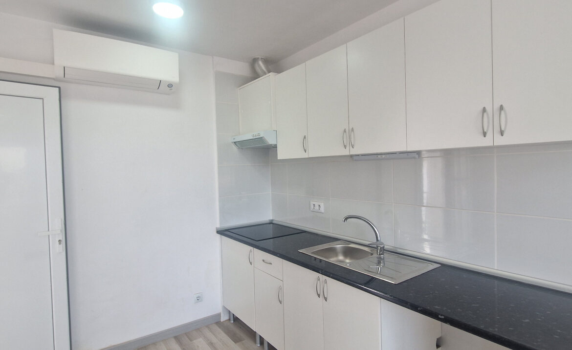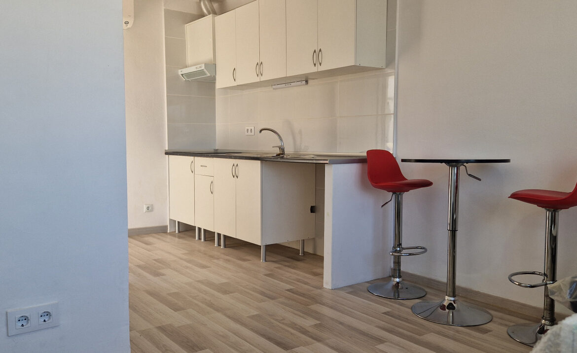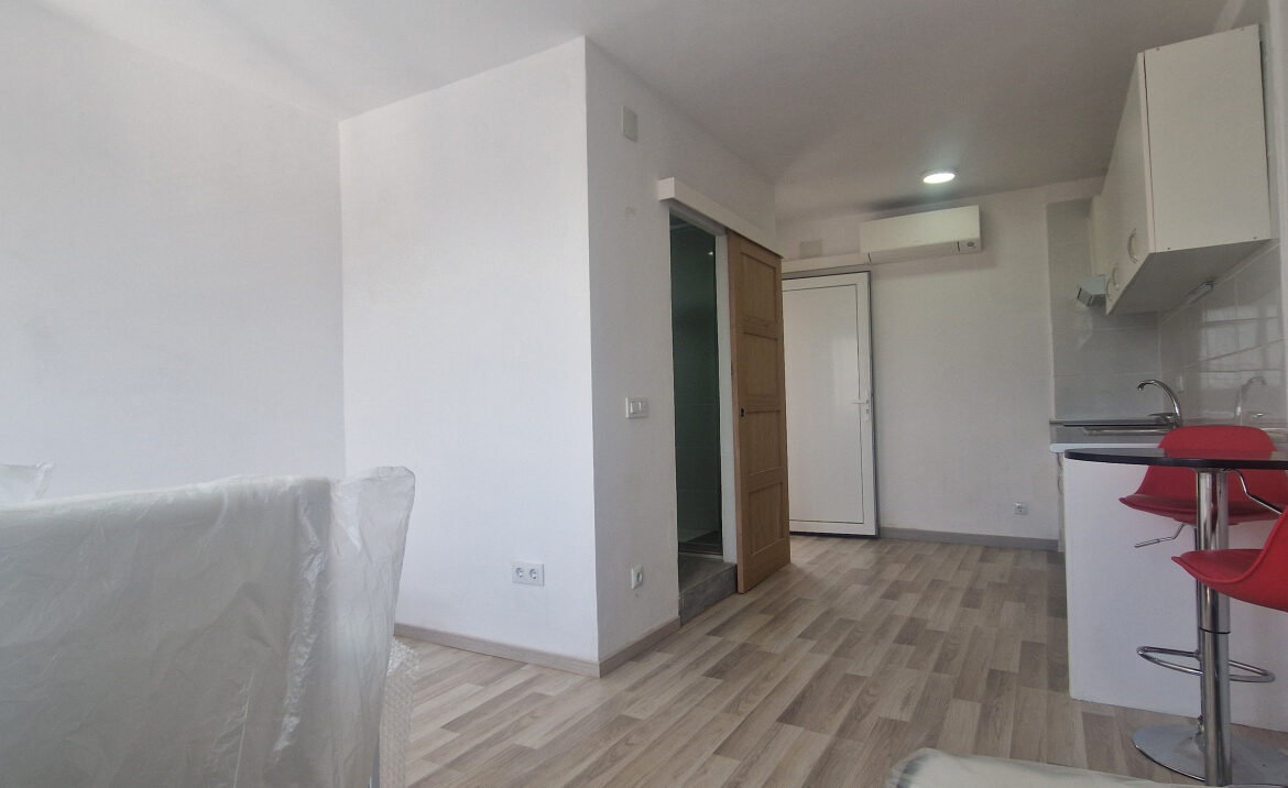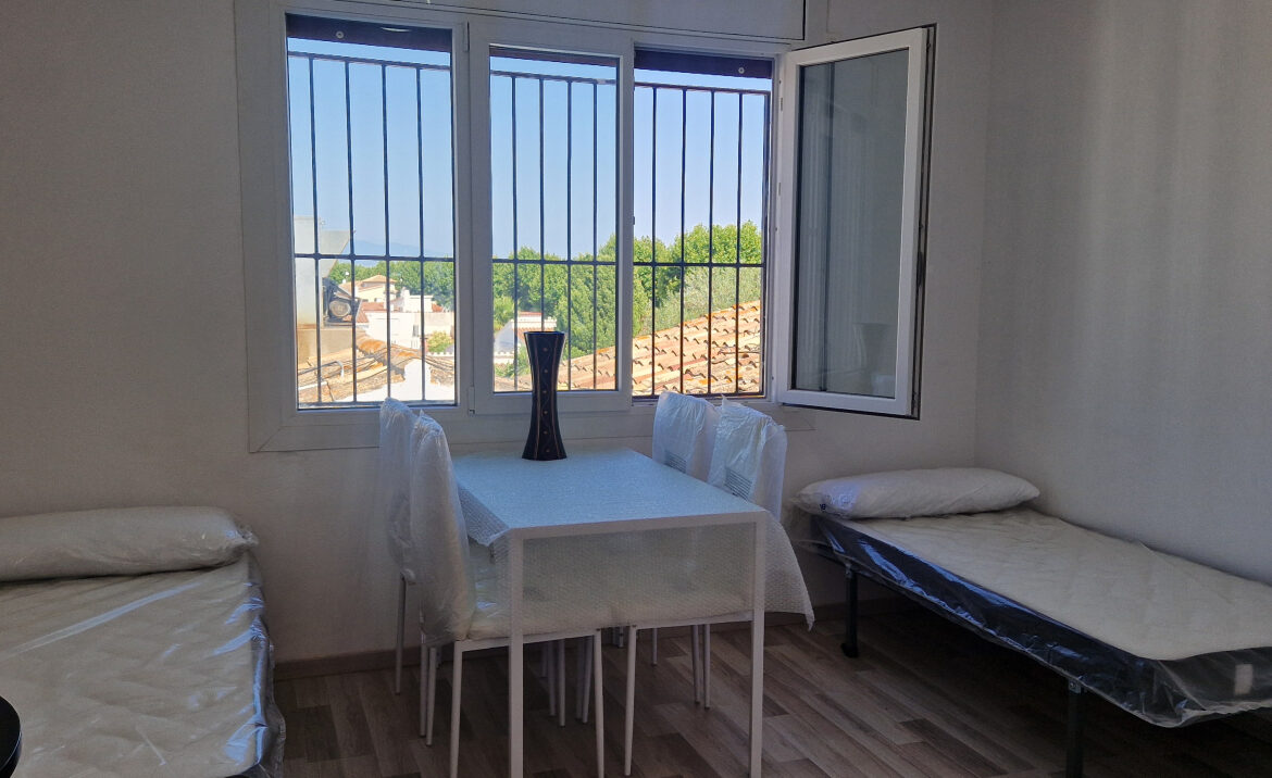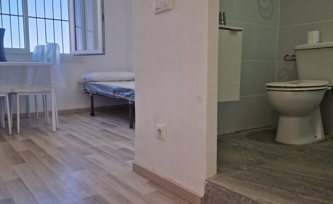 EA46 Empuriabrava, estudio en pleno centro. Este encantador estudio de 21,33 m2, ubicado en la segunda planta del edificio «Los Arcos», ha sido completamente renovado con esmero y buen gusto, en pleno corazón de Empuriabrava. El espacio cuenta con una cocina totalmente equipada, ideal para preparar tus comidas, y dispone de una mesa que acomoda a cuatro personas. A continuación, encontrarás dos cómodas camas individuales y un baño con ducha. Además, el estudio está equipado con un sistema de bomba de frío/calor y una amplia ventana de aluminio con reja, que permite disfrutar de la luz natural. ~