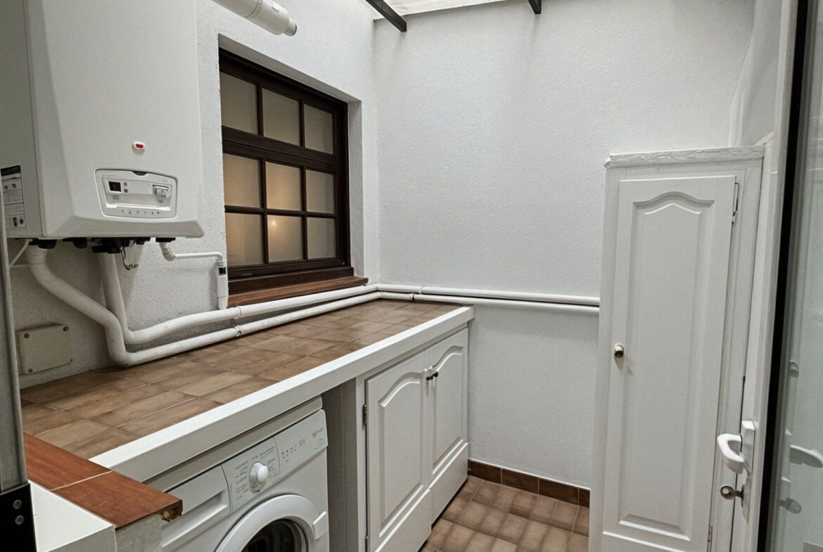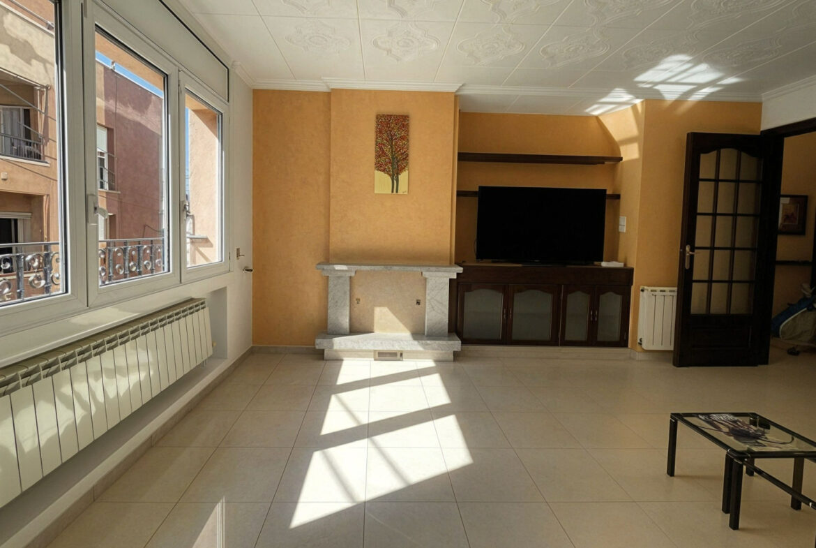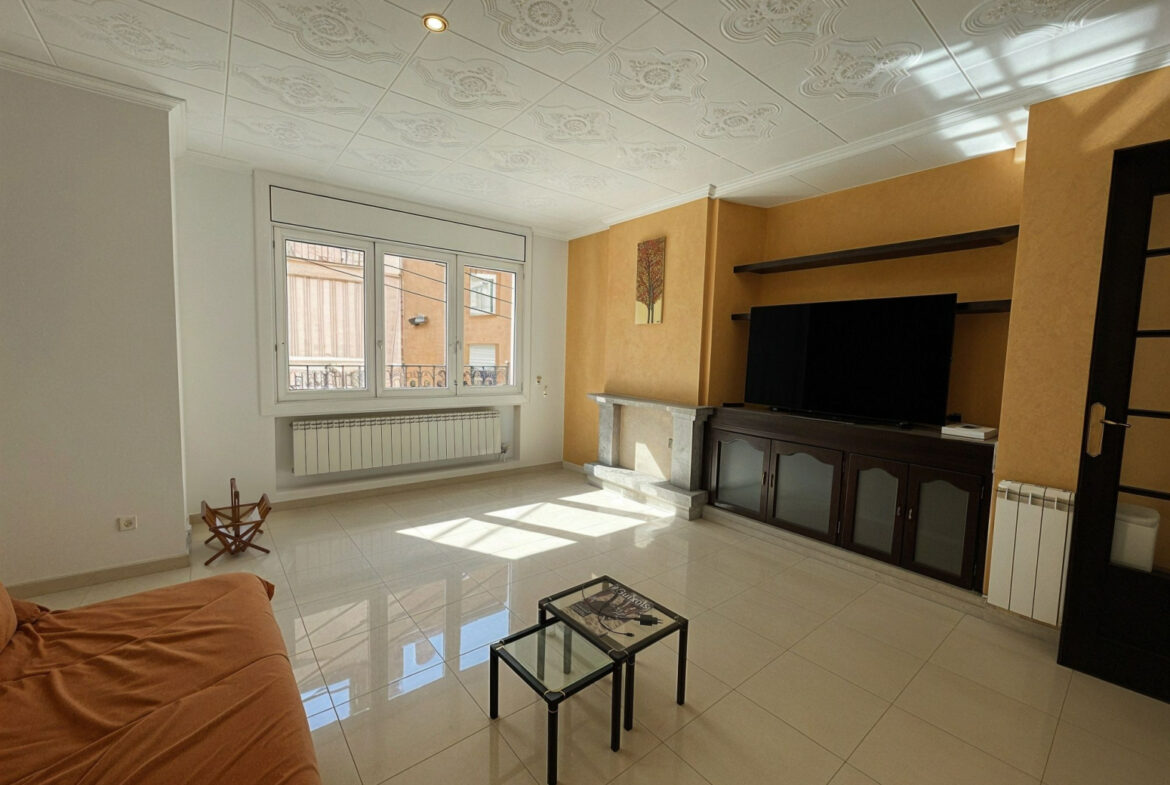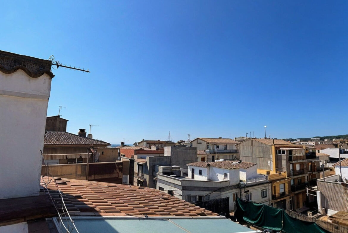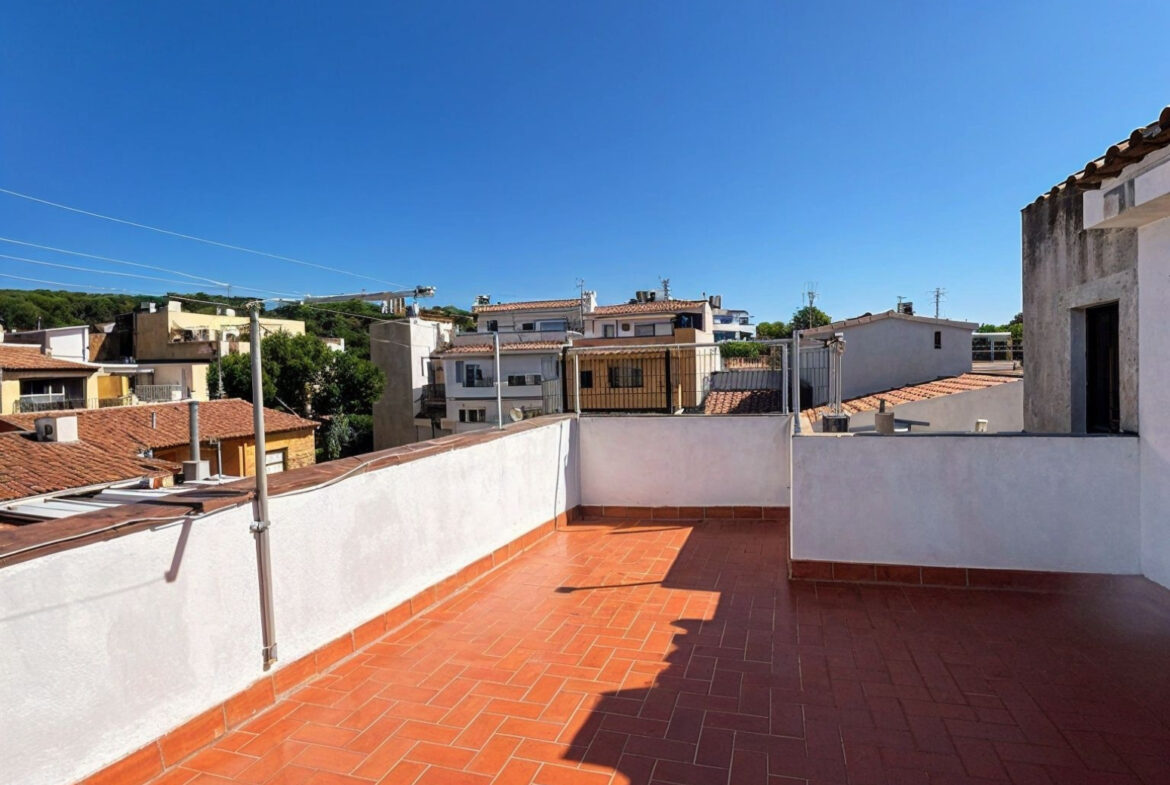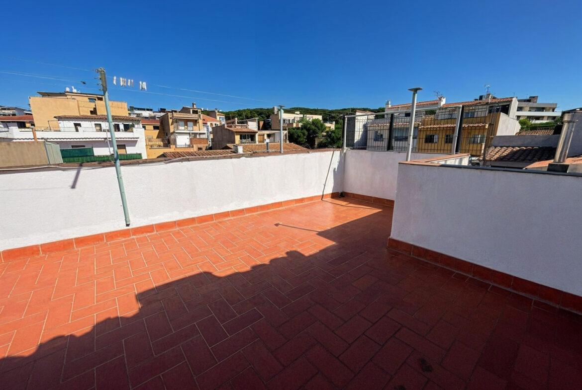 SFA09- Apartamento; Sant Feliu de Guixols. Bonito piso de 113 m² construidos, situado en un 1er piso sin ascensor, ubicado en una finca tranquila y con pocos vecinos, sin gastos de comunidad.La vivienda se distribuye en un luminoso salón-comedor con chimenea, cocina independiente con zona de lavadero, 3 habitaciones (dos dobles y una individual), todas con armarios empotrados, trastero y un baño completo con bañera.Además, dispone de un patio interior privado, otro trastero en planta, y en la planta superior un tercer trastero y una amplia terraza con vistas despejadas a la montaña, ideal para disfrutar del aire libre.El piso cuenta con puertas de madera de roble, suelo de parquet de pino y buenos acabados en toda la vivienda. Equipado con calefacción a gas ciudad y chimenea, ofrece comodidad, calidez y espacios bien aprovechados. La vivienda se encuentra en perfecto estado de conservación, ideal para familias.~