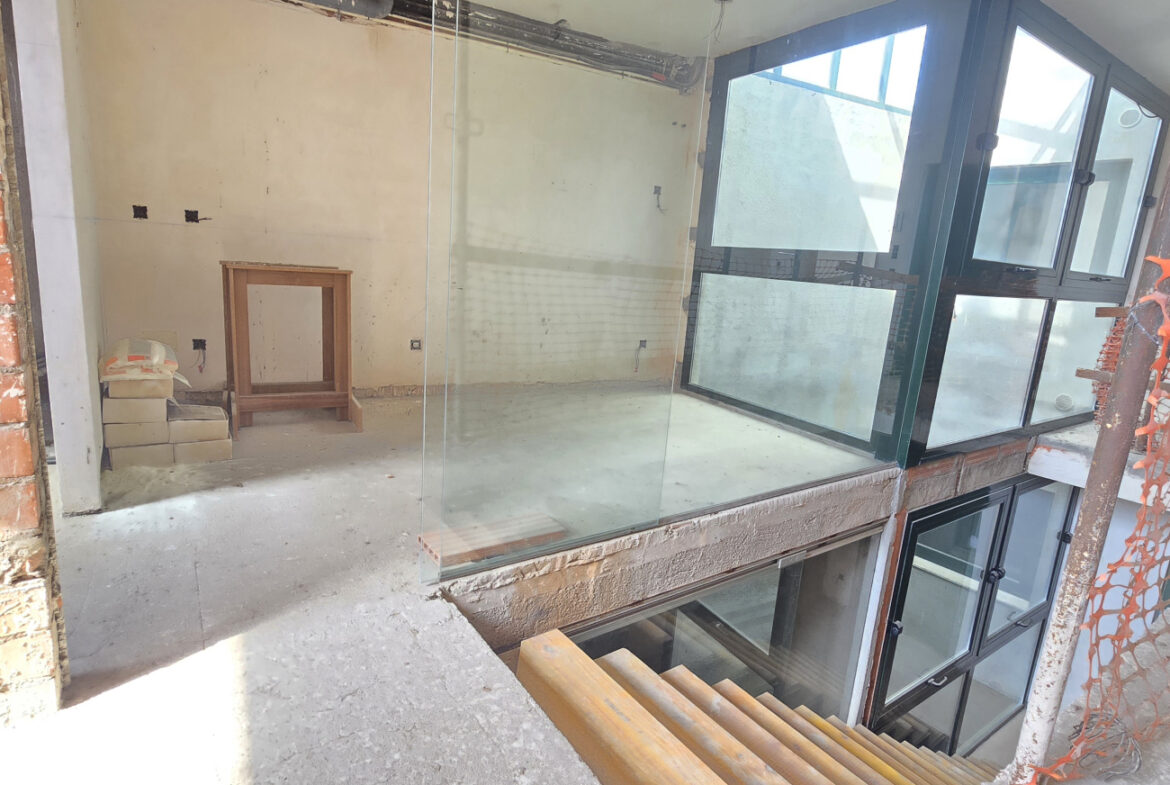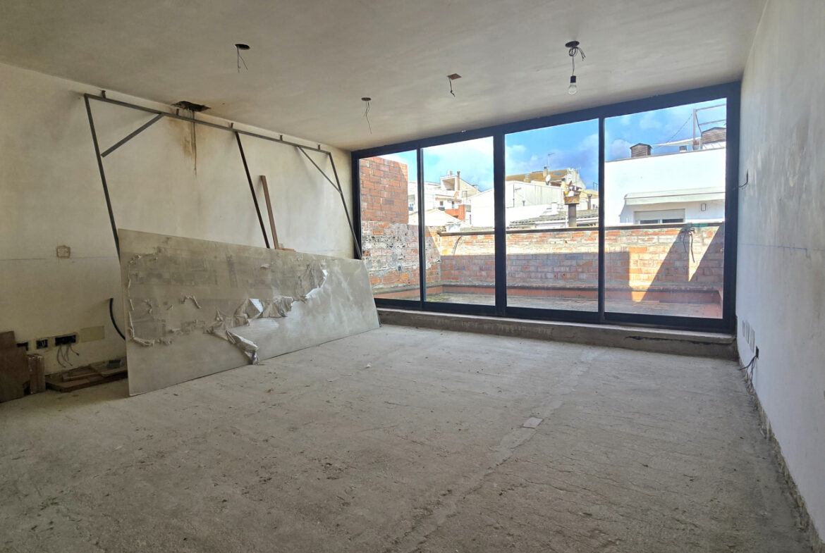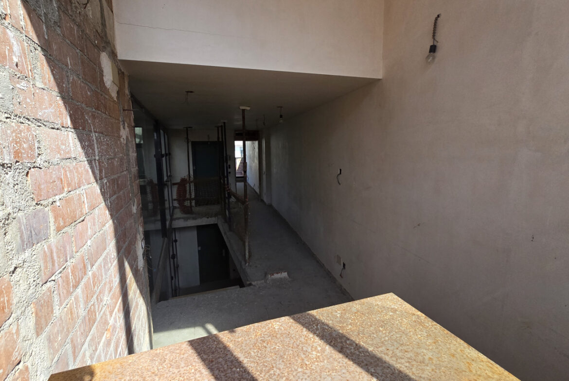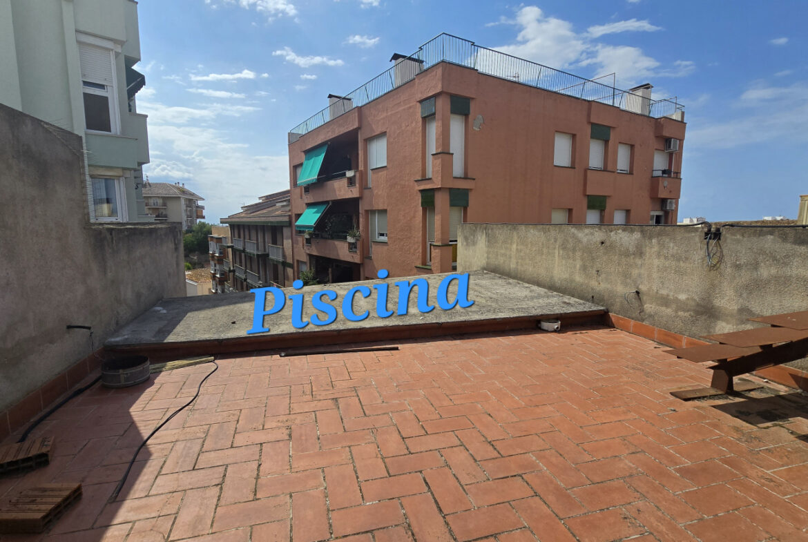 BLAH02-Blanes, edificio. Solar con construcción en curso en pleno centro de Blanes: más de 500 m² ya levantados para rematar a tu gusto, a 3 minutos de la playa. Luz a raudales gracias al patio central acristalado, garaje para 4 coches (adiós vueltas), grandes zonas de día para vivir a lo grande (comedor principal y estar-cocina con chimenea), privacidad real en la suite con vestidor y terraza, espacios útiles que ordenan tu vida (lavandería, despensa, despacho/biblioteca, zona sauna/gimnasio). Tres terrazas para desayunar al sol y un solárium con mini-piscina en cubierta; azotea de 75 m² con vistas al mar para esas noches que no se olvidan. Proyecto aprobado y obra iniciada: ahorras tiempo y compras el final, no el principio. Se comercializa como solar con construcción existente, sin cédula ni final de obra en el estado actual. Si quieres una casa única, con espacio, luz y revalorización, aquí tienes la base perfecta donde solo falta tu firma y tus acabados.~