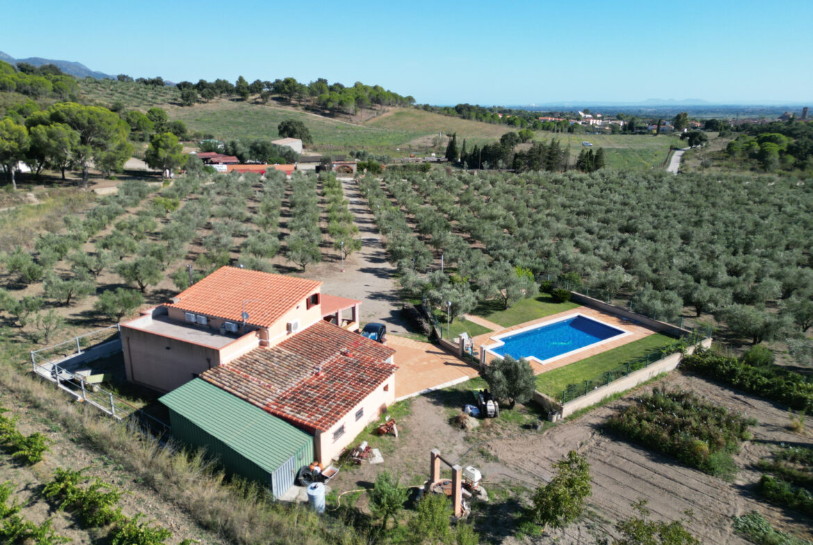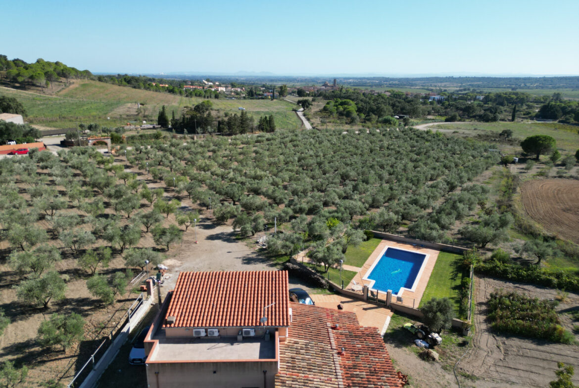 GRGH01 – Garriguella, casa de campo. Descubra esta magnífica propiedad ubicada en un entorno privilegiado dentro del Parque Natural de lAlbera, rodeada de paz y naturaleza. Con más de 13.000 m² de terreno plantados en su mayoría de olivos en plena producción, además de un huerto propio y un pozo que garantiza el riego de toda la finca, esta finca rústica le permitirá disfrutar de un estilo de vida saludable y sostenible. El acceso se realiza a través de una puerta automatizada y, en el interior, distintos espacios exteriores han sido diseñados para el disfrute: piscina con zona ajardinada, dos edificaciones auxiliares una destinada a herramientas y otra ideal como almacén de maquinaria o taller y amplias zonas de cultivo. La vivienda principal, equipada con fibra óptica, calefacción de gasoil y aire acondicionado en todas las estancias, ofrece un alto nivel de confort tanto para residencia habitual como para segunda vivienda. Su distribución comprende una planta baja con cocina independiente totalmente equipada, salón-comedor con salida a una amplia terraza cubierta, cinco habitaciones (cuatro dobles y una individual), despacho y tres baños completos, y un altillo con un gran espacio diáfano bajo cubierta que permite crear una habitación adicional con salida a terraza privada. Esta propiedad única combina el encanto del campo con el confort de una casa bien equipada y la tranquilidad de vivir dentro de un parque natural sin renunciar a ningún servicio. Estamos convencidos de que esta preciosa finca le encantará, no dude en contactarnos para agendar una visita.~