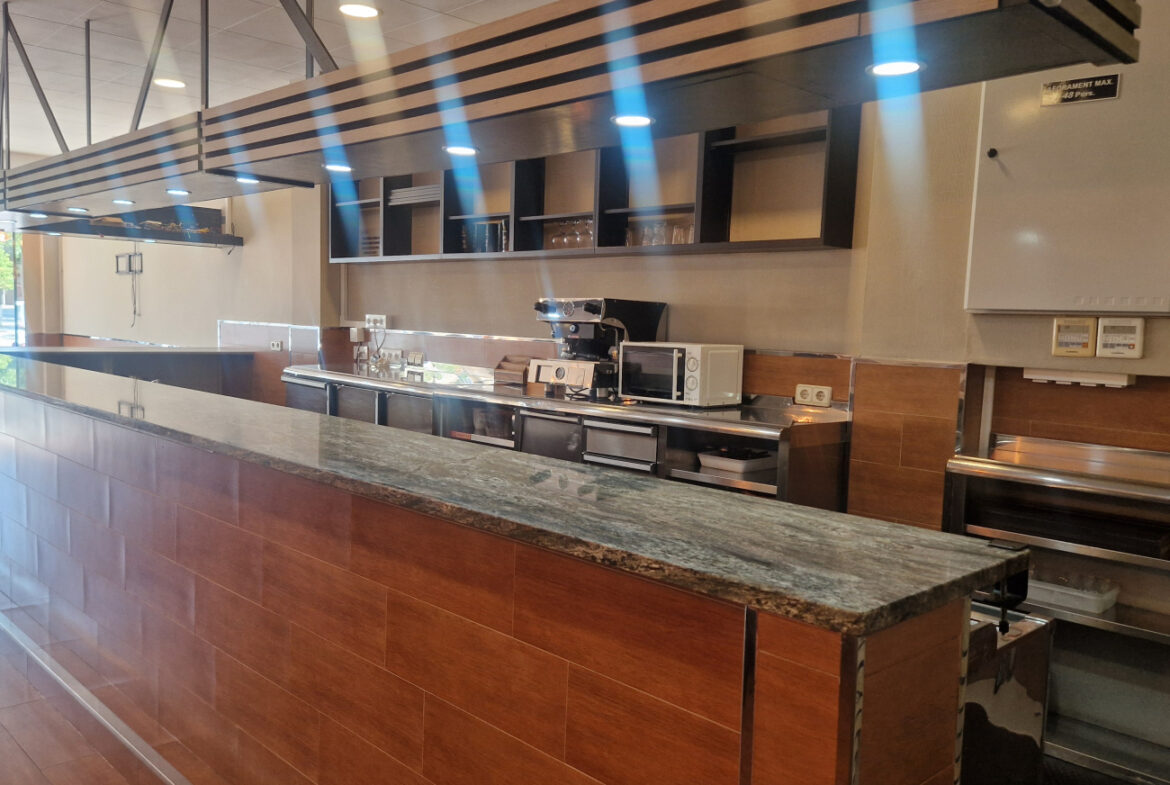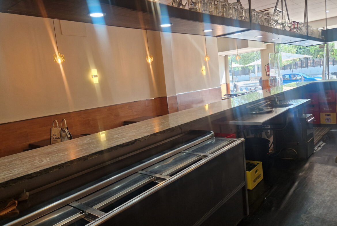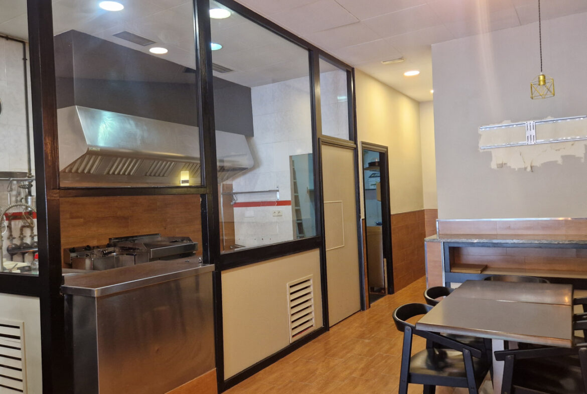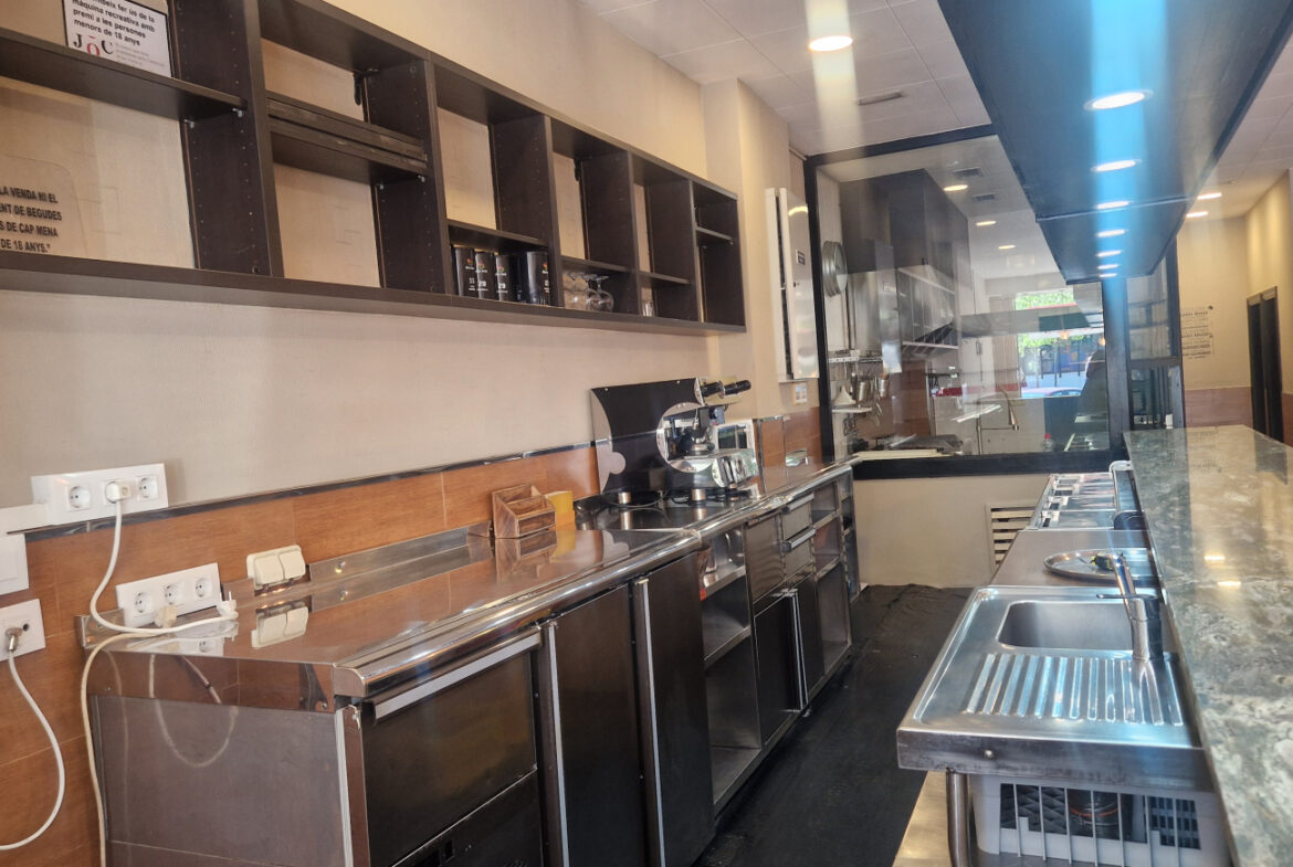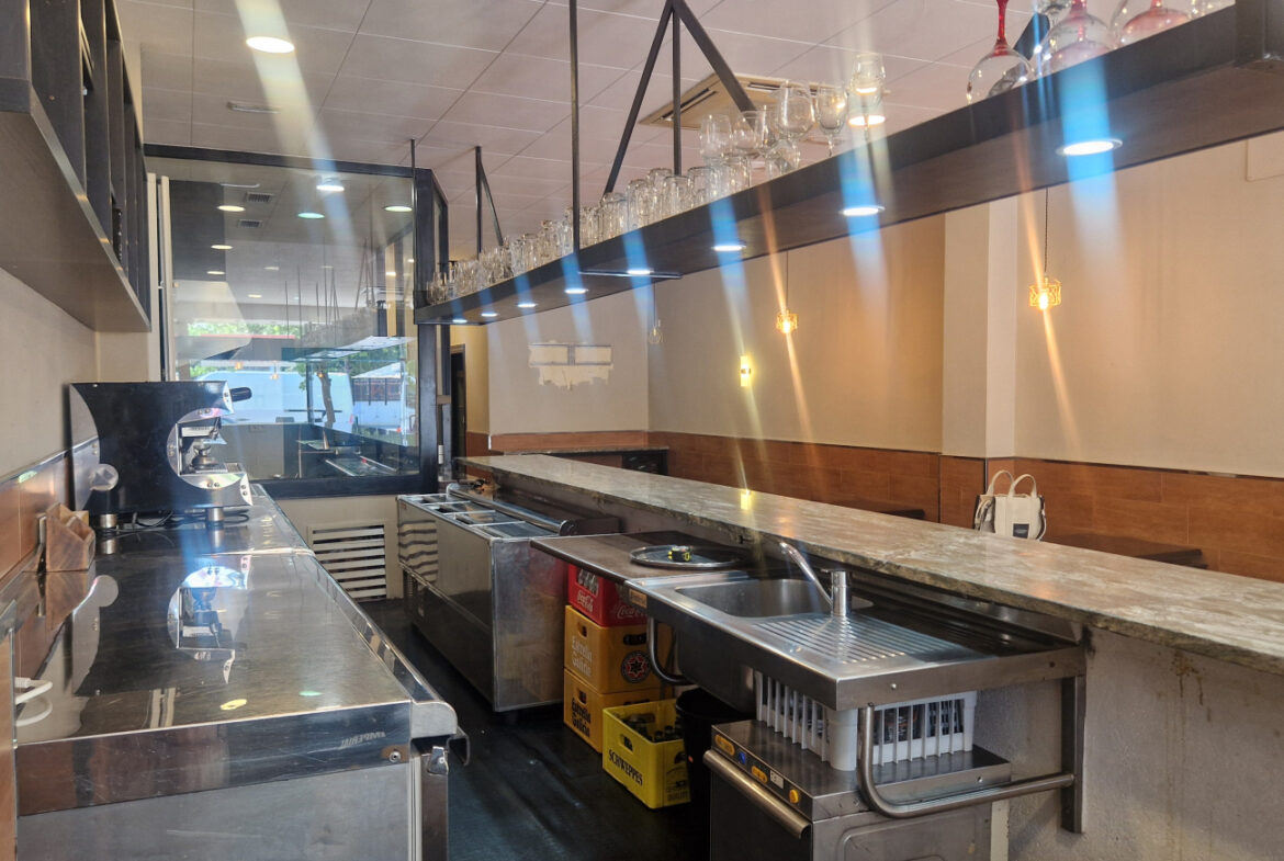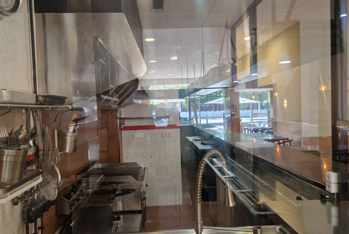 RVA62 Roses, Bar Restaurante. Se traspasa local comercial en perfecto estado, listo para empezar a trabajar. Situado en una zona inmejorable de Roses, en una de las principales avenidas y con terraza. A su alrededor se encuentran cines, colegios y mercados; en temporada de fiestas es un punto de paso obligado hacia las ferias. Es muy fácil aparcar en los alrededores del local. Tiene una superficie de 106,36 m2 que da capacidad para 48 comensales en el interior y 15 en la terraza. Distribución: sala-comedor con una decoración versátil y acogedora. En el centro del local hay una gran barra y en uno de los laterales puede instalarse una vitrina. La cocina está cerrada con cristal permitiendo apreciar la preparación de los platos. Conectada a la cocina, se encuentra una habitación destinada a almacén y maquinaria complementaria. Este local también dispone de 2 amplios baños.~