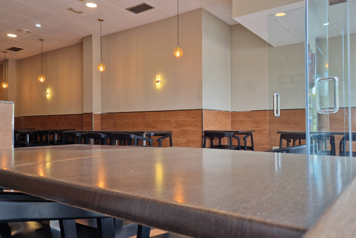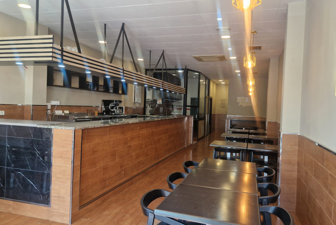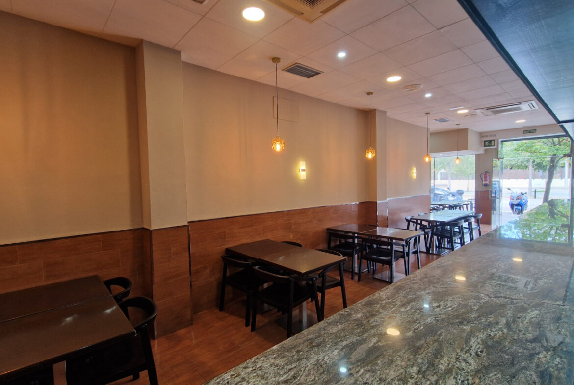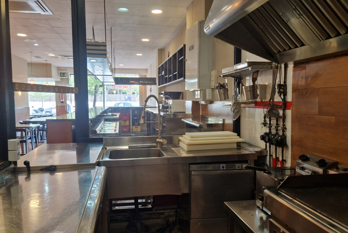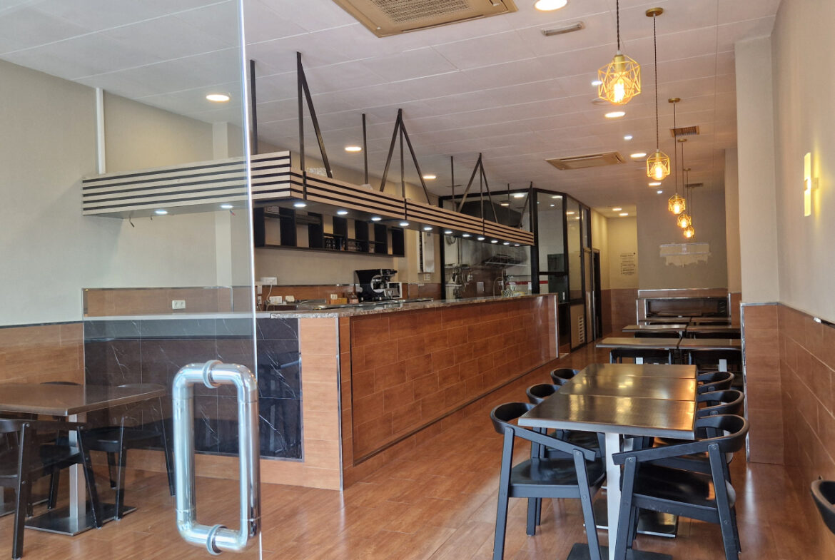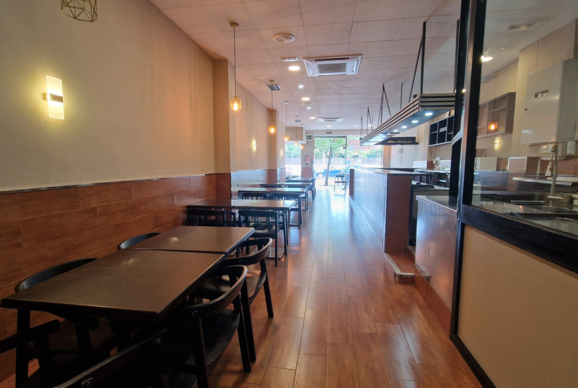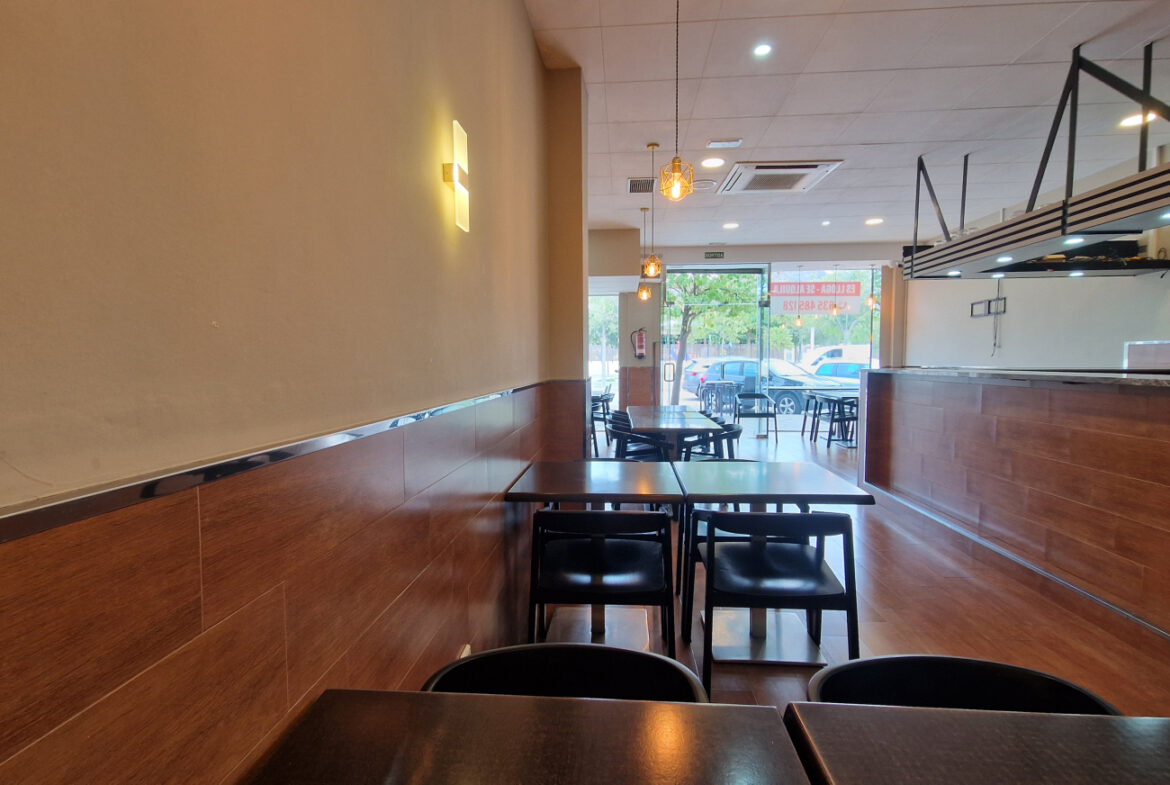 RVA62 Roses, Bar Restaurante. Se traspasa local comercial en perfecto estado, listo para empezar a trabajar. Situado en una zona inmejorable de Roses, en una de las principales avenidas y con terraza. A su alrededor se encuentran cines, colegios y mercados; en temporada de fiestas es un punto de paso obligado hacia las ferias. Es muy fácil aparcar en los alrededores del local. Tiene una superficie de 106,36 m2 que da capacidad para 48 comensales en el interior y 15 en la terraza. Distribución: sala-comedor con una decoración versátil y acogedora. En el centro del local hay una gran barra y en uno de los laterales puede instalarse una vitrina. La cocina está cerrada con cristal permitiendo apreciar la preparación de los platos. Conectada a la cocina, se encuentra una habitación destinada a almacén y maquinaria complementaria. Este local también dispone de 2 amplios baños.~