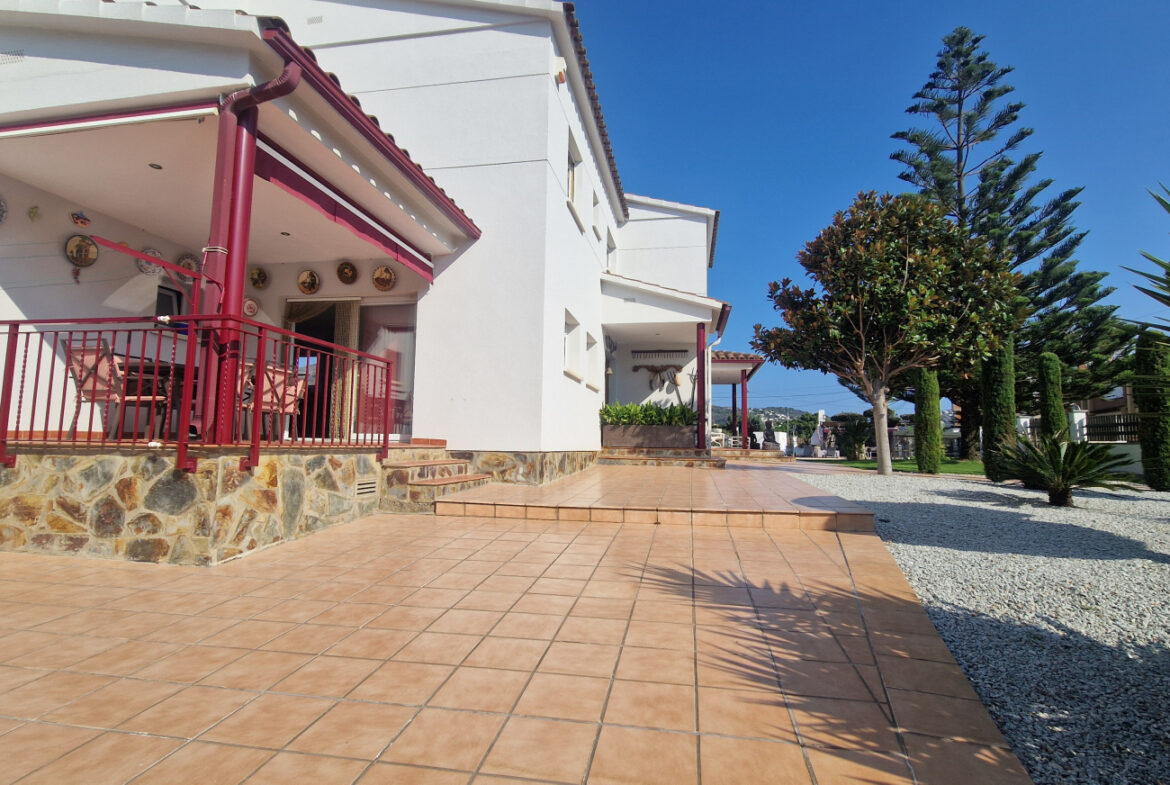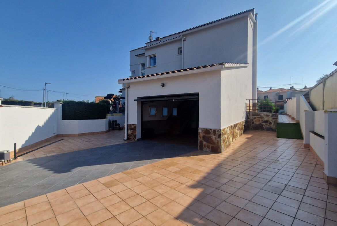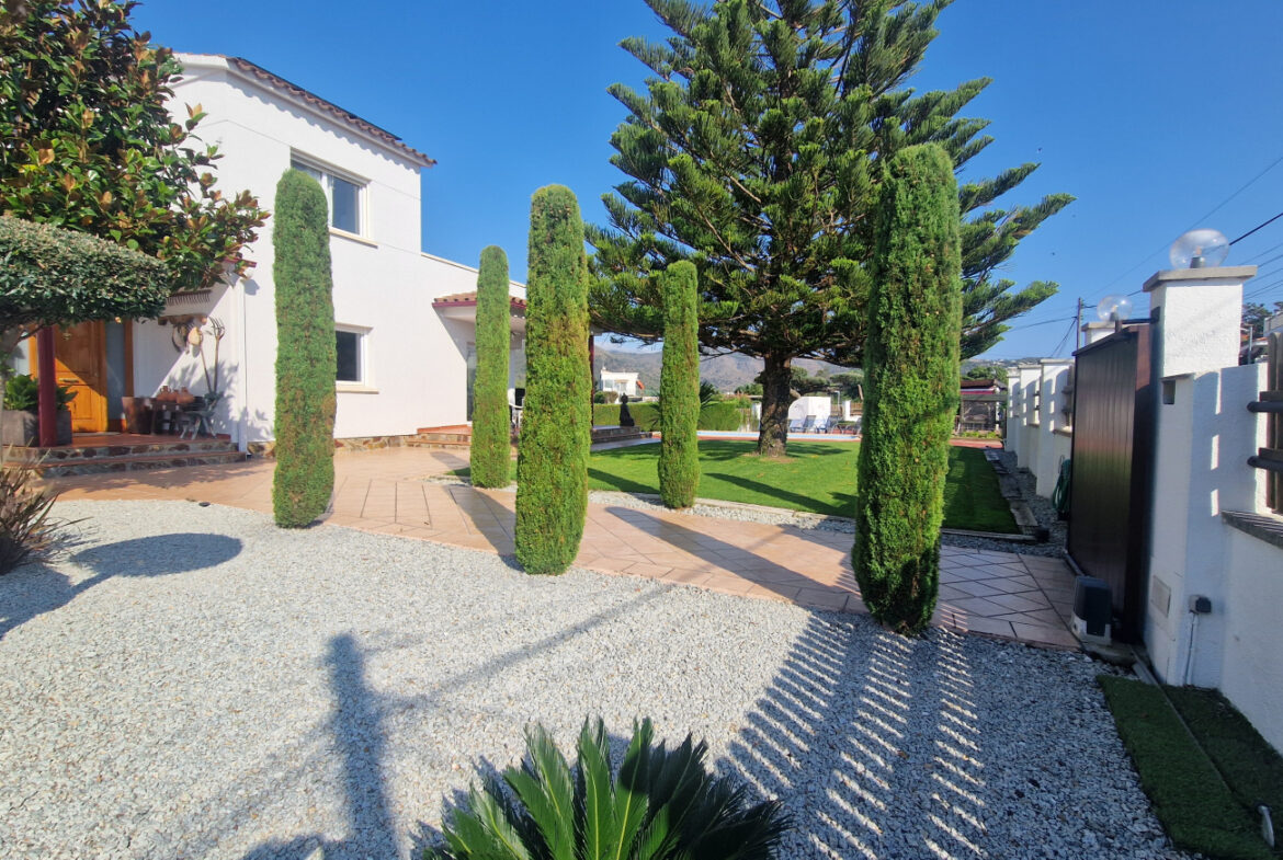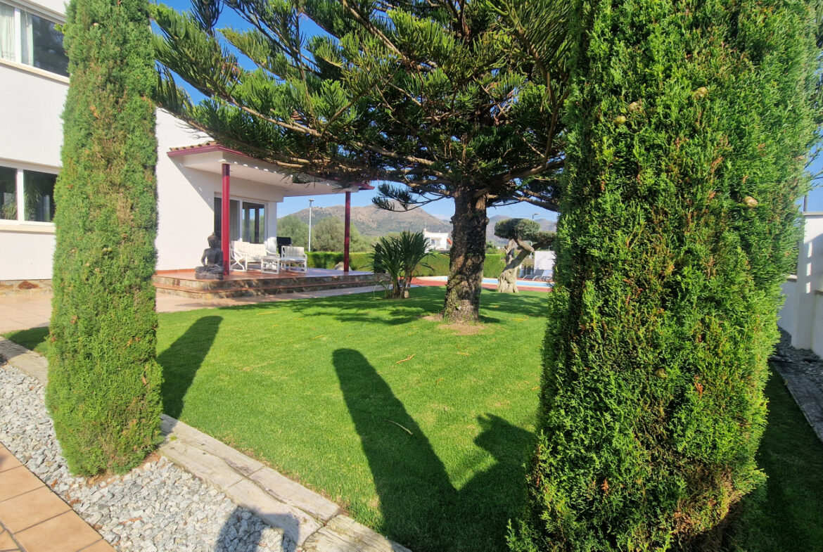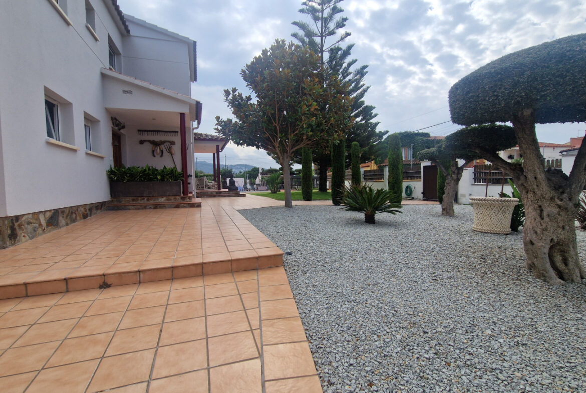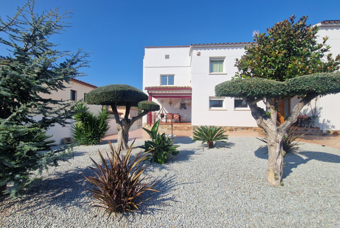 RV44 Roses, villa de lujo. Esta espectacular casa de 177 m² útiles de vivienda, complementada con más de 100 m² de terrazas y porches, situada en una parcela de 1.190 m² dentro de una urbanización muy tranquila de Roses, se presenta en un estado de conservación impecable y cuidada hasta el más mínimo detalle. En la planta baja se encuentra una amplia cocina con acceso directo a una terraza destinada a comedor de verano; cuenta además con una gran despensa doble, zona de lavadero y una puerta que comunica con el garaje. Frente a la entrada principal se ubica el comedor, con suelo de madera, junto a un acogedor salón con chimenea, y al pie de la escalera se dispone un aseo de cortesía.Al subir las escaleras se accede a un distribuidor que da paso, a la derecha, a dos dormitorios dobles y un baño completo, y a la izquierda a un dormitorio principal tipo suite que incluye vestidor, terraza privada y un gimnasio. La vivienda dispone de numerosos armarios empotrados, todos de madera. El jardín, con vegetación mediterránea y una variedad de árboles y plantas, ofrece además una zona de huerto, un porche con cocina y barbacoa destinado a comedor de verano, y en el centro una gran piscina con ducha.Superficie construida: 318 m². Superficie útil: 176,74 m² + terraza de 57,5 m².~