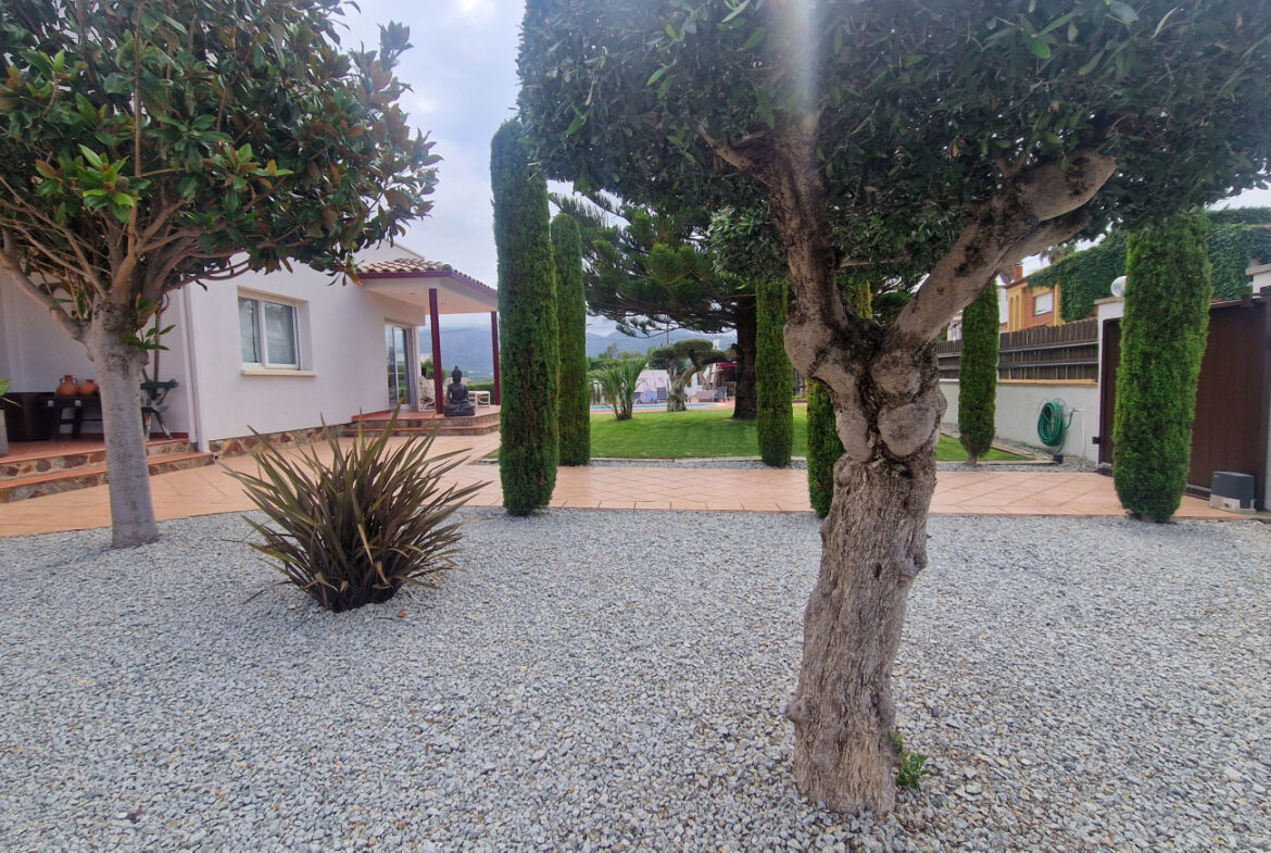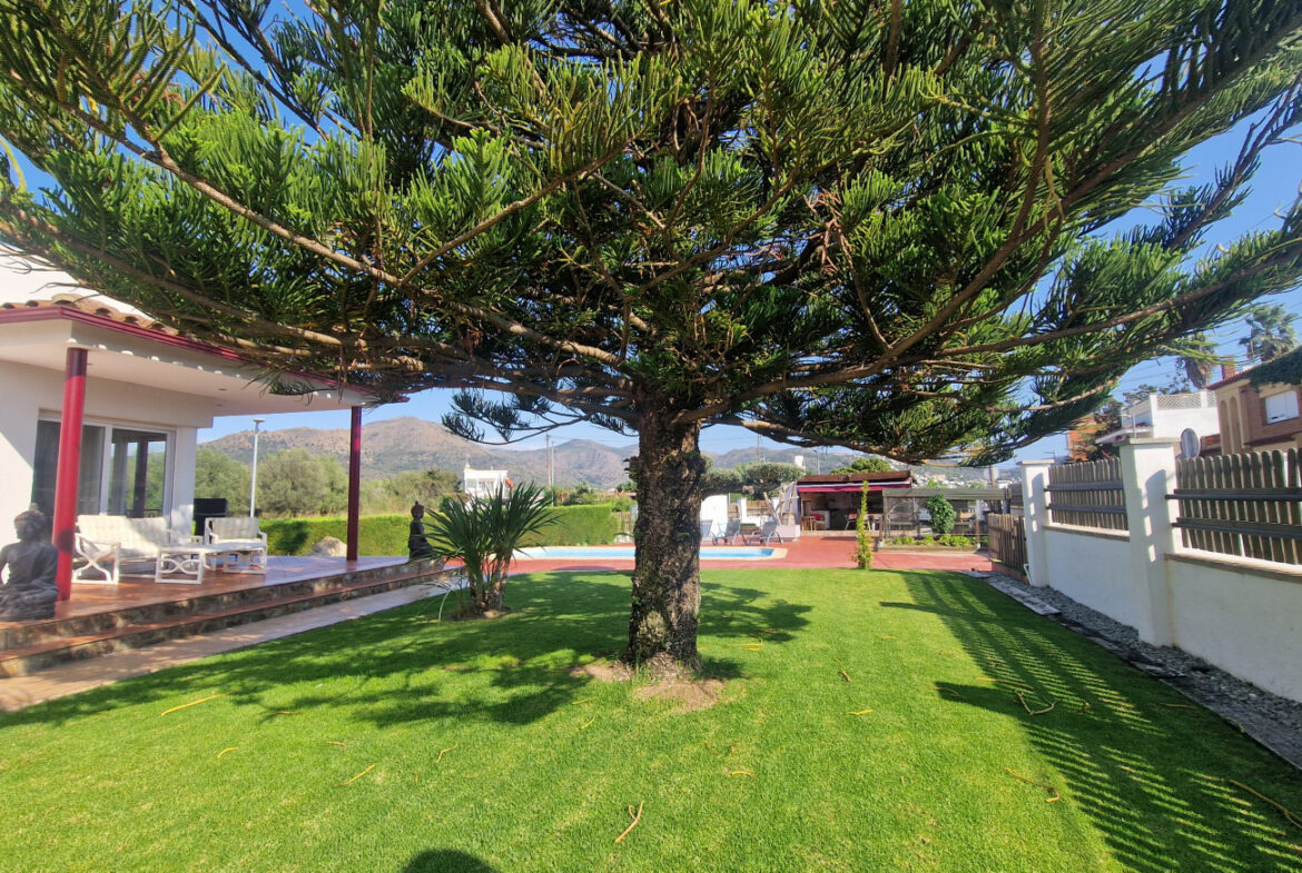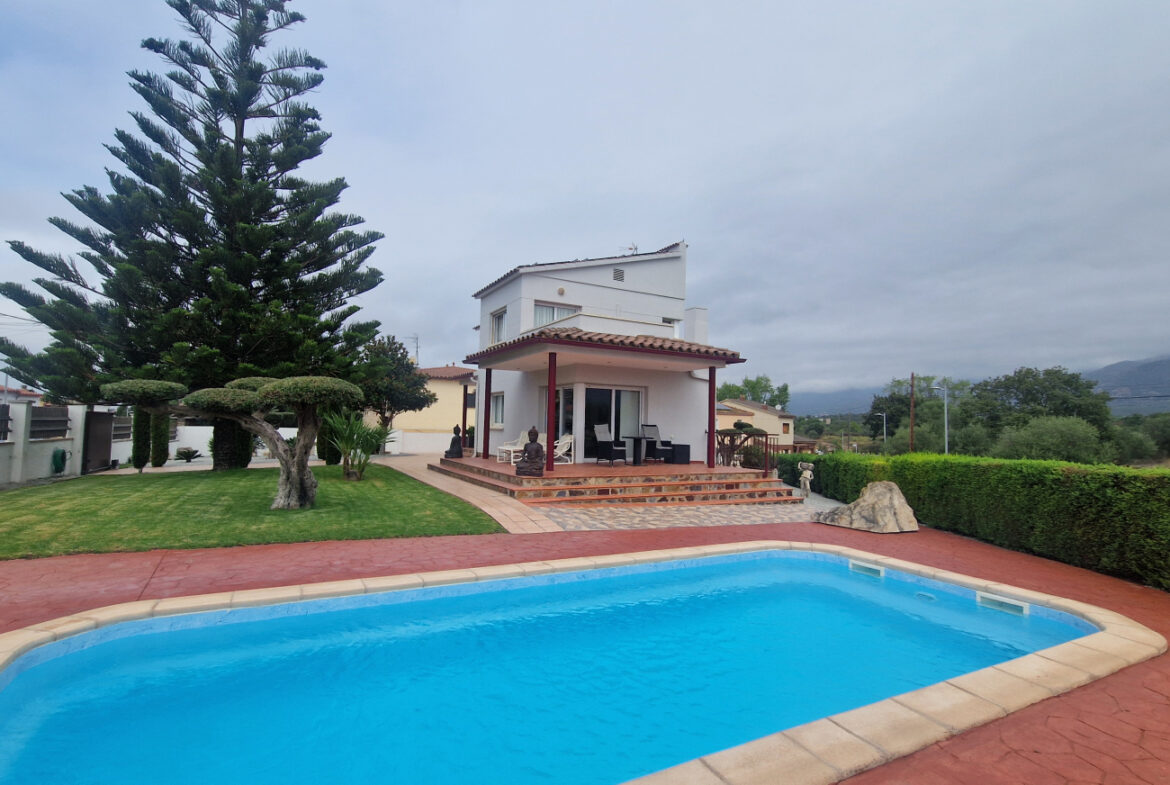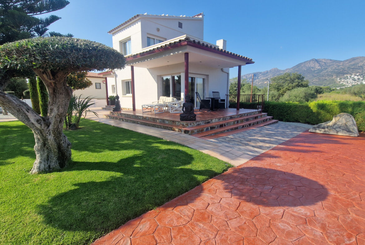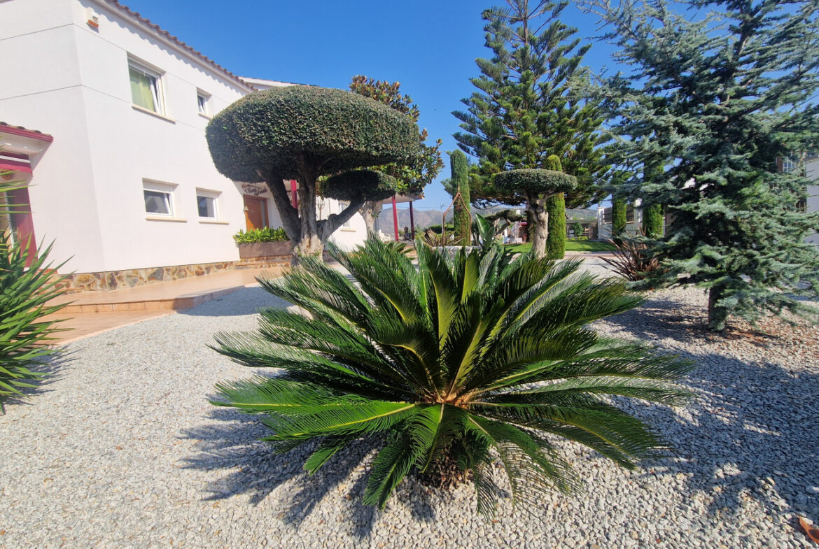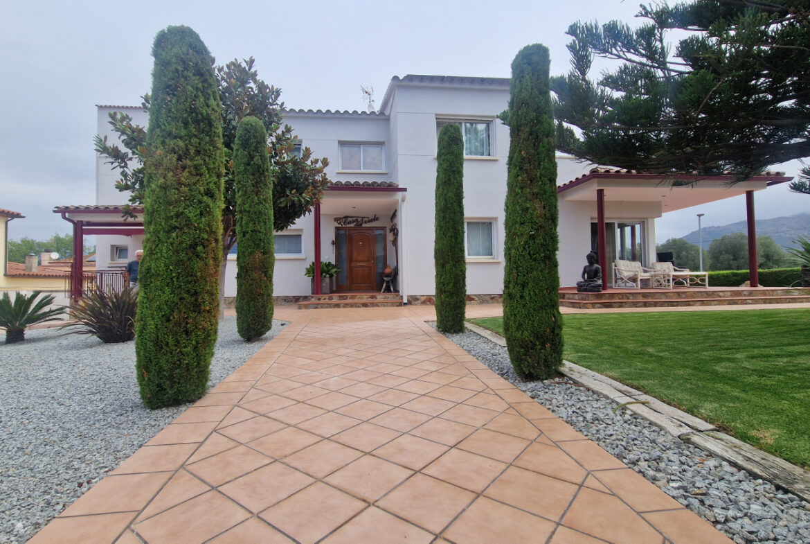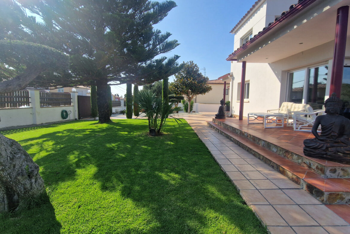 RV44 Roses, villa de lujo. Esta espectacular casa de 177 m² útiles de vivienda, complementada con más de 100 m² de terrazas y porches, situada en una parcela de 1.190 m² dentro de una urbanización muy tranquila de Roses, se presenta en un estado de conservación impecable y cuidada hasta el más mínimo detalle. En la planta baja se encuentra una amplia cocina con acceso directo a una terraza destinada a comedor de verano; cuenta además con una gran despensa doble, zona de lavadero y una puerta que comunica con el garaje. Frente a la entrada principal se ubica el comedor, con suelo de madera, junto a un acogedor salón con chimenea, y al pie de la escalera se dispone un aseo de cortesía.Al subir las escaleras se accede a un distribuidor que da paso, a la derecha, a dos dormitorios dobles y un baño completo, y a la izquierda a un dormitorio principal tipo suite que incluye vestidor, terraza privada y un gimnasio. La vivienda dispone de numerosos armarios empotrados, todos de madera. El jardín, con vegetación mediterránea y una variedad de árboles y plantas, ofrece además una zona de huerto, un porche con cocina y barbacoa destinado a comedor de verano, y en el centro una gran piscina con ducha.Superficie construida: 318 m². Superficie útil: 176,74 m² + terraza de 57,5 m².~