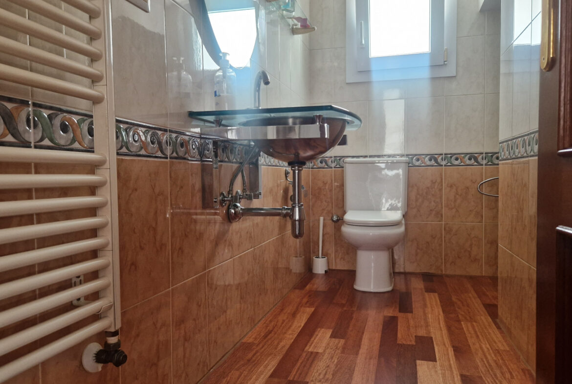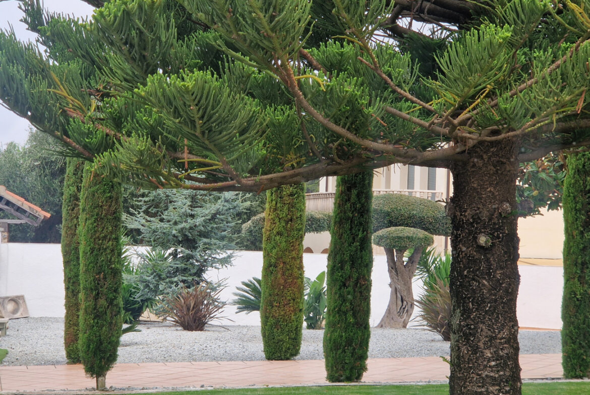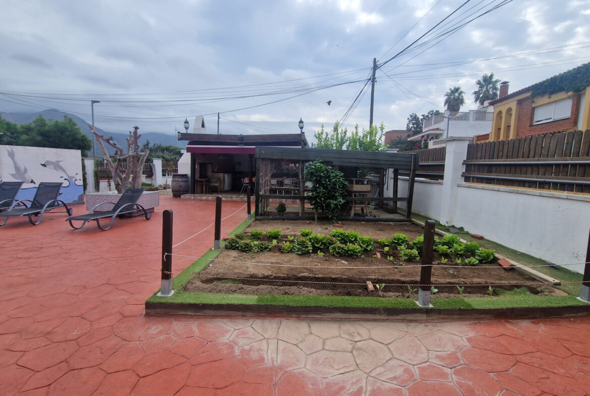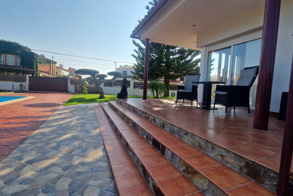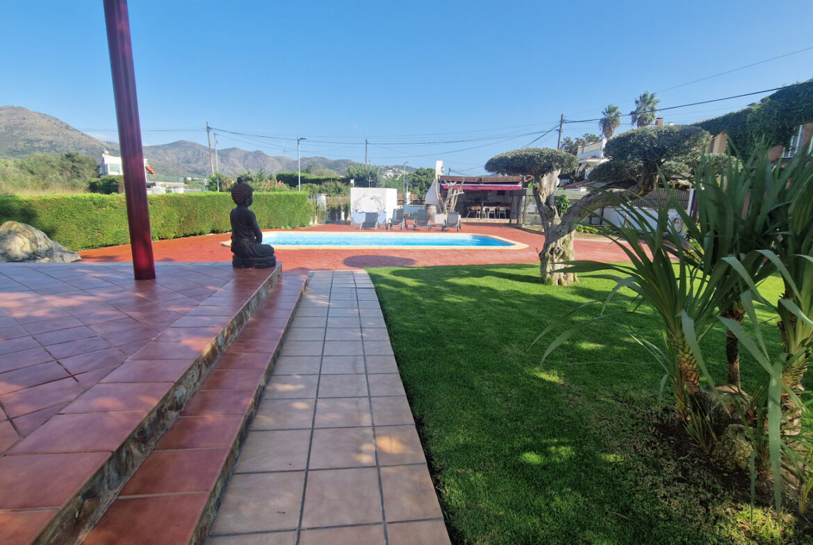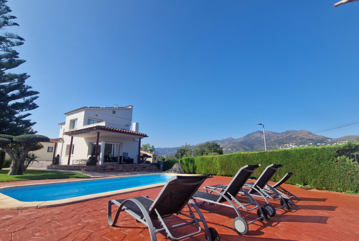 RV44 Roses, villa de lujo. Esta espectacular casa de 177 m² útiles de vivienda, complementada con más de 100 m² de terrazas y porches, situada en una parcela de 1.190 m² dentro de una urbanización muy tranquila de Roses, se presenta en un estado de conservación impecable y cuidada hasta el más mínimo detalle. En la planta baja se encuentra una amplia cocina con acceso directo a una terraza destinada a comedor de verano; cuenta además con una gran despensa doble, zona de lavadero y una puerta que comunica con el garaje. Frente a la entrada principal se ubica el comedor, con suelo de madera, junto a un acogedor salón con chimenea, y al pie de la escalera se dispone un aseo de cortesía.Al subir las escaleras se accede a un distribuidor que da paso, a la derecha, a dos dormitorios dobles y un baño completo, y a la izquierda a un dormitorio principal tipo suite que incluye vestidor, terraza privada y un gimnasio. La vivienda dispone de numerosos armarios empotrados, todos de madera. El jardín, con vegetación mediterránea y una variedad de árboles y plantas, ofrece además una zona de huerto, un porche con cocina y barbacoa destinado a comedor de verano, y en el centro una gran piscina con ducha.Superficie construida: 318 m². Superficie útil: 176,74 m² + terraza de 57,5 m².~