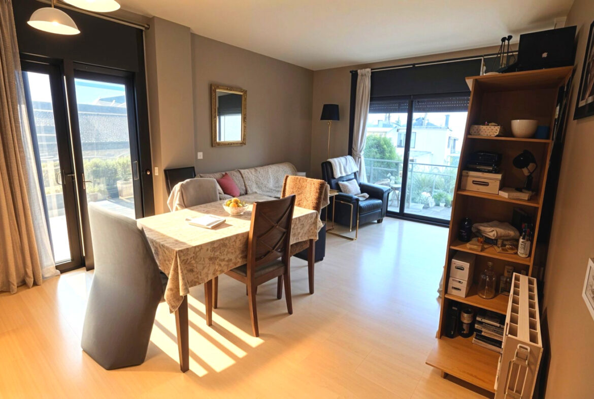 GIA33-Girona, Montilivi, piso si tu prioridad es vivir fuera sin salir de casa, esta es la terraza que manda: 48 m² de sol para desayunos largos, siestas, cenas con amigos y teletrabajo con aire; debajo, un primer piso inteligente, 94m2 construidos, 75 m² útiles con tres habitaciones y dos baños, más lo que convierte un piso en comodidad real: plaza de parking y trastero en finca reciente con ascensor, a un paso de todo y bien conectada con el centro; por dentro te pide una puesta a punto estética para dejarlo a tu gusto (mejor así: eliges tú colores y calidades), pero la base es la que no se replica ni con dinero: ubicación buscada, distribución práctica y una terraza de las que casi no salen; si llevas meses esperando ese piso que justifique vivir en Girona con aire, luz y metros exteriores de verdad, ya lo has encontrado.~