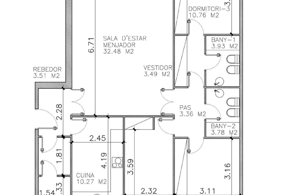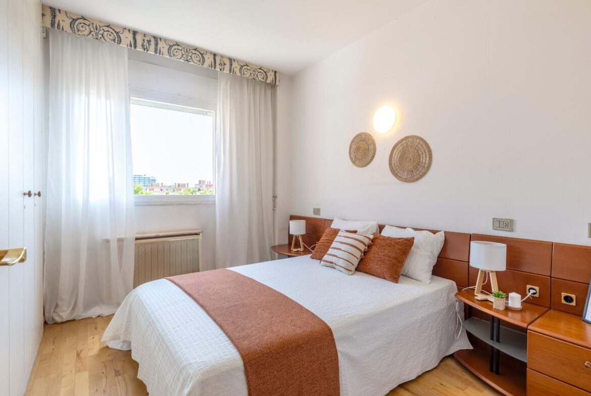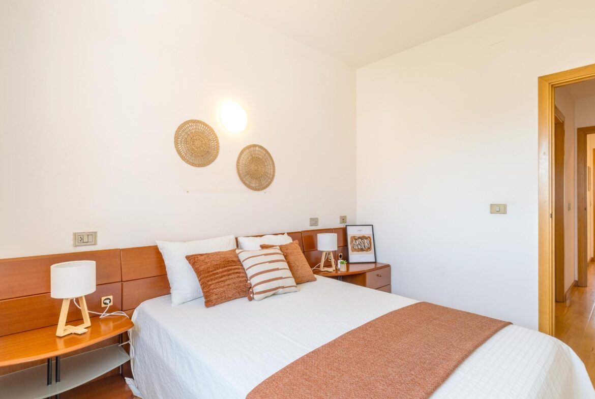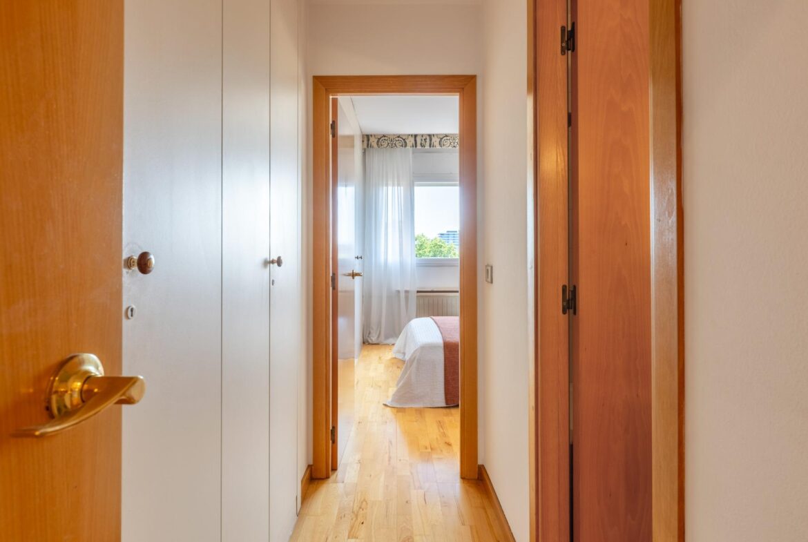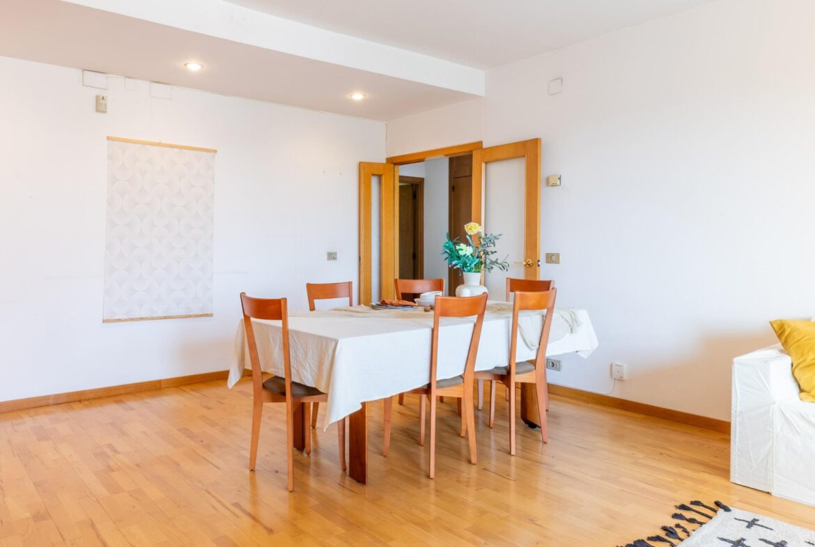 Piso alto, espacioso, muy cerca de la Avinguda d’Icària, a 10 minutos de la playa y con una impresionante zona comunitaria de 6.500 m2.~Se trata de un piso de amplias estancias, de planta muy cuadrada con doble orientación.~Dispone de un gran salón comedor de 33 m2, contiguo a una cocina office de más de 10 m2, y una práctica y espacioso cuarto de lavado , plancha y galería de más de 5 m2, ideal para habilitar como zona de almacenaje.~Consta además de 3 dormitorios dobles, uno de ellos tupo suite. consta de amplios armarios empotrados.~La zona comúnitaria cuenta con diversos espacios, con una zona donde numerosa acacias nos dan una agradable sombra, así como zonas de bancos, columpios, y césped.~En el precio se incluye una espaciosas plaza de párking.~ITP, Gastos de Notaría, gestoría o ventuales gastos de financiación no incluidos.~Segunda plaza de párking opcional~