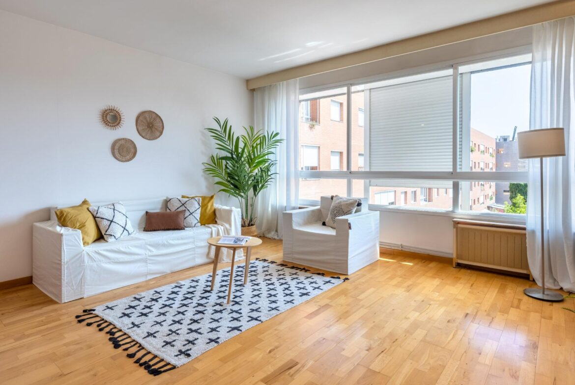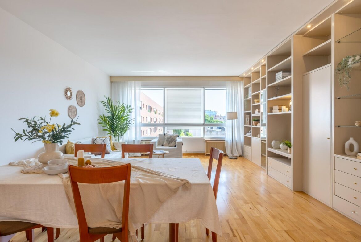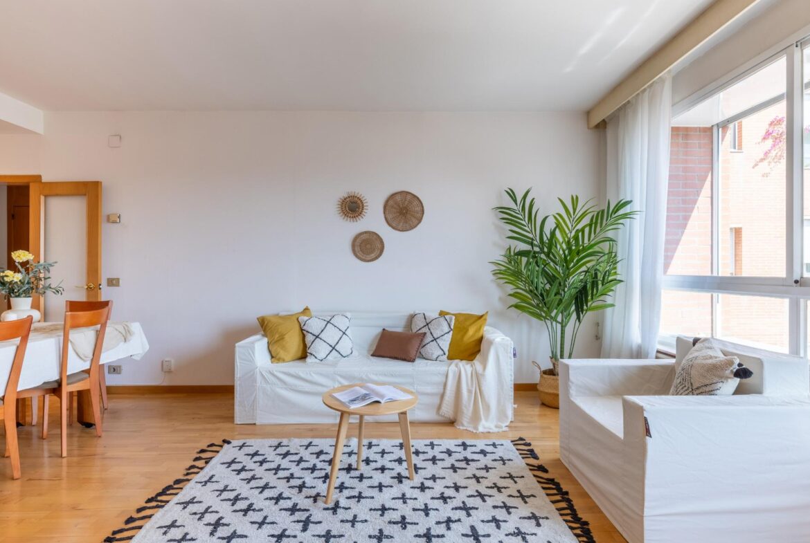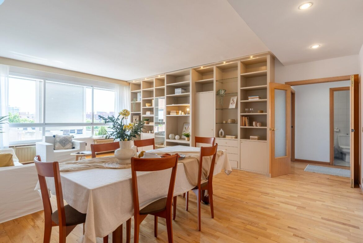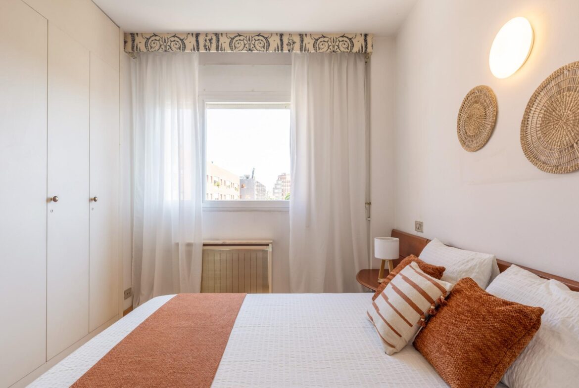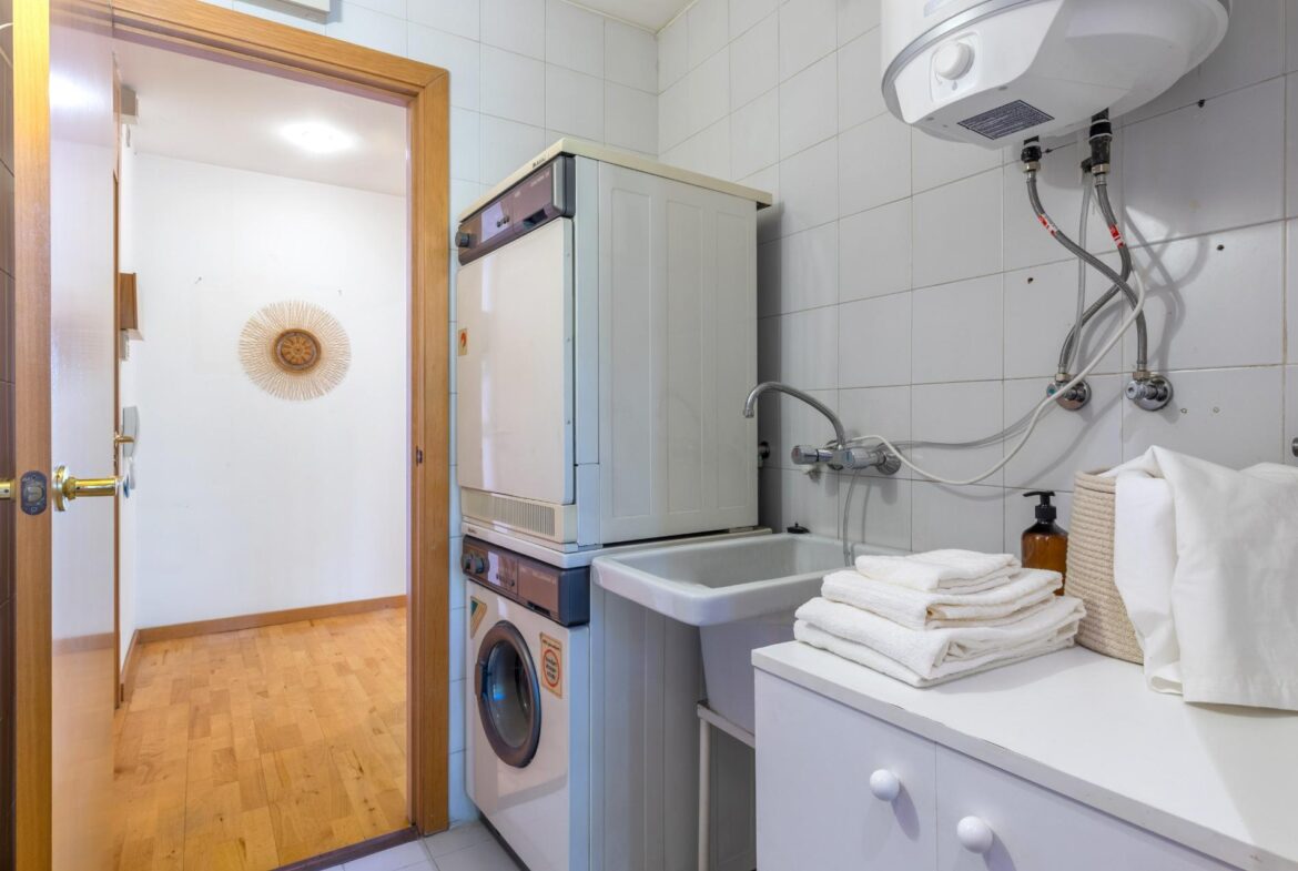 Piso alto, espacioso, muy cerca de la Avinguda d’Icària, a 10 minutos de la playa y con una impresionante zona comunitaria de 6.500 m2.~Se trata de un piso de amplias estancias, de planta muy cuadrada con doble orientación.~Dispone de un gran salón comedor de 33 m2, contiguo a una cocina office de más de 10 m2, y una práctica y espacioso cuarto de lavado , plancha y galería de más de 5 m2, ideal para habilitar como zona de almacenaje.~Consta además de 3 dormitorios dobles, uno de ellos tupo suite. consta de amplios armarios empotrados.~La zona comúnitaria cuenta con diversos espacios, con una zona donde numerosa acacias nos dan una agradable sombra, así como zonas de bancos, columpios, y césped.~En el precio se incluye una espaciosas plaza de párking.~ITP, Gastos de Notaría, gestoría o ventuales gastos de financiación no incluidos.~Segunda plaza de párking opcional~