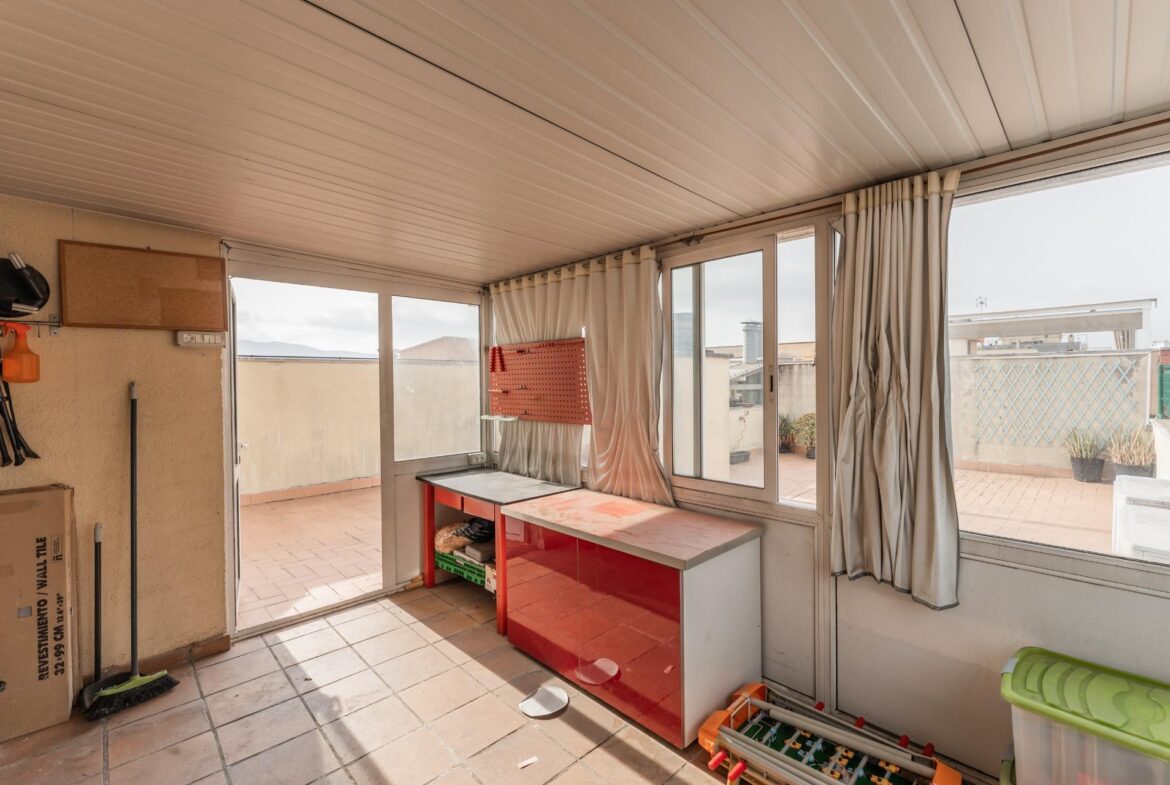 ¿Buscas algo más que un simple piso? Este ático es una joya escondida en Can Pantiquet, listo para enamorarte. Con tres habitaciones que se adaptan a tu ritmo de vida, dos baños (uno de ellos reformado recientemente) y una cocina moderna donde hasta el café sabe mejor.~El salón se abre a un balcón, ideal para tus mañanas de sol o tus noches de charla. Pero lo mejor está arriba: una terraza privada en la azotea que te regala vistas, intimidad y espacio para soñar despierto.~¿Comodidades? Todas: ascensor, plaza de parking, aire acondicionado, calefacción eléctrica, parquet elegante, ventanas de aluminio que aíslan el ruido y el frío, y hasta armarios empotrados que hacen que el orden parezca fácil.~Este ático no es solo un lugar para vivir. Es un lugar para disfrutar.~