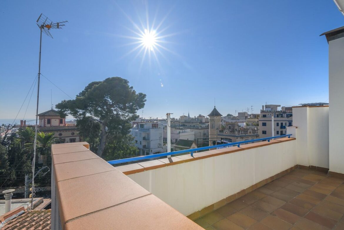 Ático de Ensueño en Sitges ¡Dos Terrazas, Vistas al Mar y Soleado Todo el Día!~Descubre este espectacular ático combina una ubicación céntrica inmejorable y el lujo de sus amplios espacios exteriores. Olvídate del estrés y vive en un oasis de luz natural, donde cada rincón te invita a disfrutar del clima mediterráneo y de unas vistas al mar que te dejarán sin aliento.~Esta vivienda única es ideal para quienes buscan un hogar espacioso, luminoso y con todas las comodidades a su alcance.~ Impresionante terraza principal de 72 m² ideal para comidas, cenas y relajación, más una terraza adicional privada en la suite principal.~Todo el piso es exterior y extremadamente soleado, con vistas al mar desde las terrazas.~Salón Comedor amplio y luminoso de 20 m², con acceso directo a la terraza , perfecto para la vida social y familiar.~Cocina Americana moderna y funcional integrada en el salón, facilitando la interacción mientras cocinas.~~Suite Principal: Dormitorio principal con baño en suite y acceso a su propia terraza privada.~Dormitorios Adicionales: Dos habitaciones individuales, ambas con acceso a balcón , perfectas para hijos o despacho.~Dos baños completos para mayor comodidad.~~Ubicado en el centro de Sitges, tendrás todos los servicios a tu puerta: comercios locales, supermercados, restaurantes y zonas de ocio. La estación de tren se encuentra a pocos minutos andando, garantizando una excelente conexión con Barcelona y otras localidades.~¡Calidad de vida garantizada!~Este ático es una oportunidad que no se ve todos los días en Sitges. Si buscas un hogar luminoso, con grandes terrazas y una ubicación privilegiada, esta es tu vivienda ideal.~Llama ahora para concertar una visita. ¡Te enamorarás a primera vista!~~