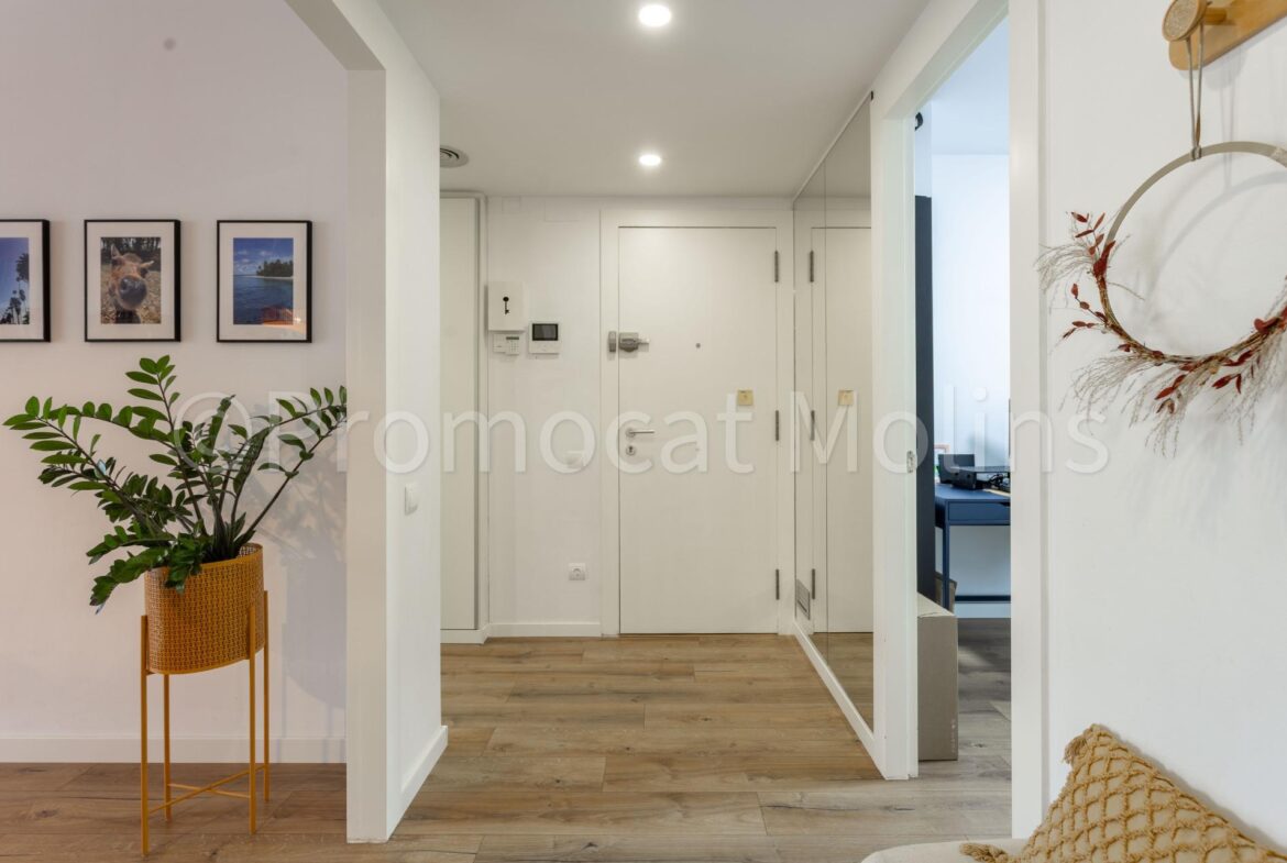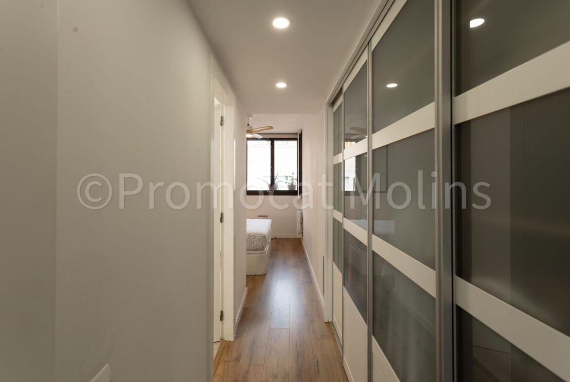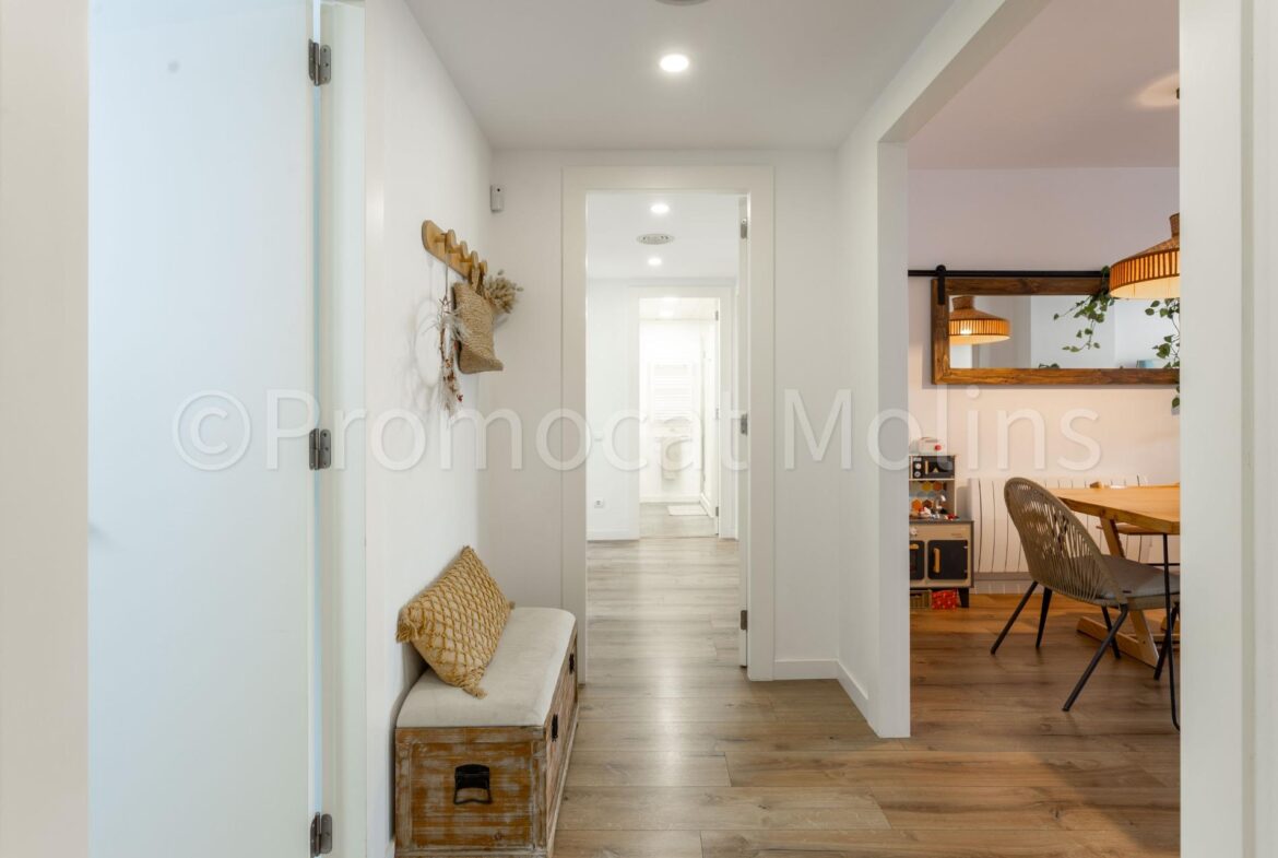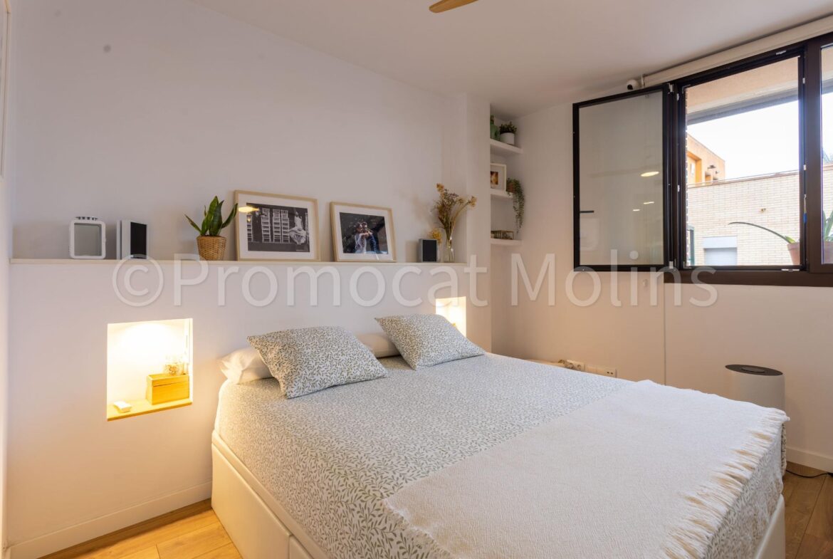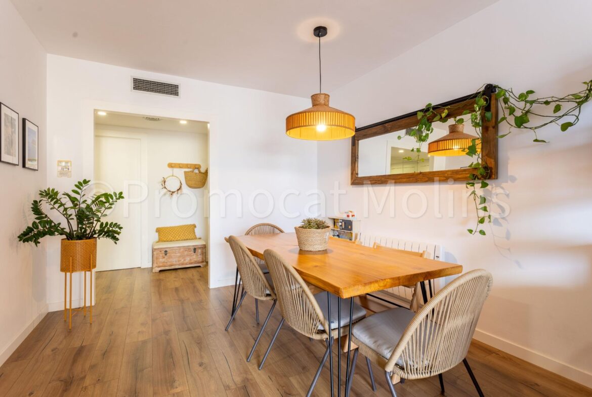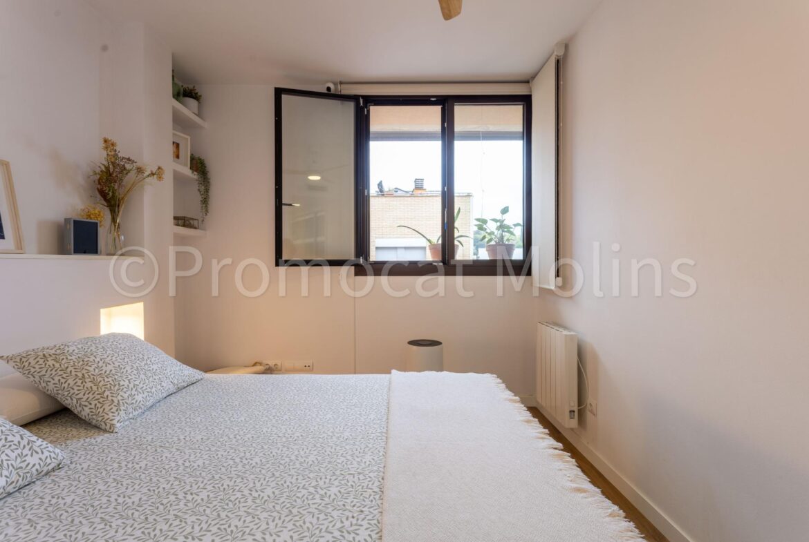 PROMOCAT MOLINS LES PRESENTA: este espectacular ático situado en una de las zonas más demandadas de Molins de Rei, Riera Nova, dentro de una comunidad moderna que ofrece piscina, jardines, zona infantil y sala polivalente para el uso y disfrute de los vecinos.~La vivienda ha sido totalmente reformada con materiales de alta calidad y un diseño elegante y funcional, pensada para quienes buscan comodidad, estilo y luz natural en cada rincón.~Dispone de 4 habitaciones, dos de ellas dobles y una suite con baño privado y vestidor, todas exteriores y muy luminosas. El salón-comedor es el corazón del hogar: amplio, soleado durante todo el día y con salida directa a una encantadora terraza, ideal para disfrutar del aire libre y las vistas despejadas.~La cocina, con acceso tanto desde el distribuidor como desde el salón, combina practicidad y diseño, ofreciendo un espacio cómodo y bien aprovechado para el día a día.~Entre sus equipamientos destacan el aire acondicionado por conductos, calefacción, plaza de parking amplia y trastero en el mismo edificio. Además, la finca dispone de ascensor y todas las comodidades que garantizan una excelente calidad de vida.~Un ático exclusivo, listo para entrar a vivir, donde la luz, la amplitud y el confort se unen para crear un hogar único en una ubicación inmejorable.~~