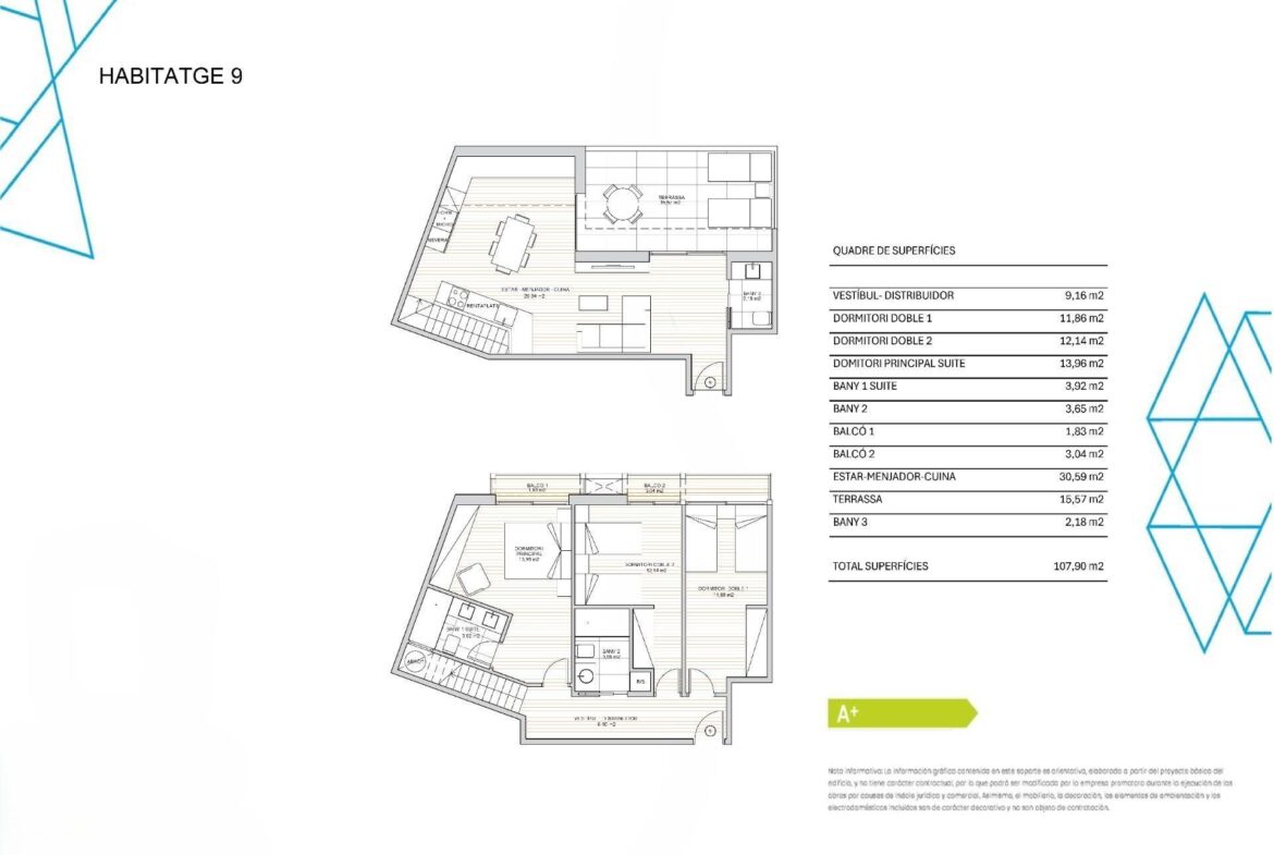 Exclusivo ático dúplex INVERTIDO, con acceso y ascensor en las 2 plantas y entradas independientes.~~Consta de 3 dormitorios en planta, 1 suite de 14m2 con baños propio y 2 dobles (12m2 + 12m2) todas exteriores, y con balcón. Baño común adicional en planta y gran recibidor de mas de 9m2.~~En planta superior, zona diáfana para disfrutar de salón comedor cocina de la prestigiosa marca Bulthaup y acceso a terraza privada y 1 aseo. ~Esta planta tiene acceso independiente si se desea, las 2 plantas se comunican mediante escalera interior de obra.~~Borràs 63 Living es un edificio residencial que se encuentra en el corazón de la Creu Alta, en una de las zonas mas demandadas, por sus excelentes servicios, ubicación y fácil acceso a cualquier punto de la ciudad.~~Un exclusivo edificio proyectado y pensado para satisfacer todas las necesidades y comodidades con nivel, estilo, nuevas tecnologías y ecoeficiencia.~~La promoción consta de 11 viviendas, desde 1 hasta 3 habitaciones, con terrazas privadas, solárium, acabados de alto standing i primera calidad. Las viviendas de Borràs 63 Living están pensadas para ser sostenibles. Constan de una alta eficiencia energética, fachada con sistema de aerotermia, recarga para vehículos eléctricos conectadas a la propia instalación, cocinas Bulthaup, aerotérmia, ventanas de aluminio climalit Cortizo y un sinfín de detalles que te enamorarán.~~Contáctanos sin compromiso, viviendas totalmente personalizables en acabados y distribución.~~OBRA INICIADA – ENTREGA PREVISTA 2º SEMESTRE 2025.~