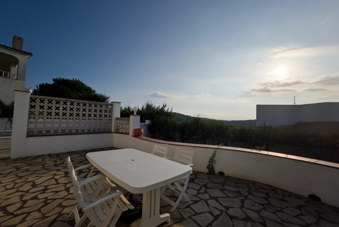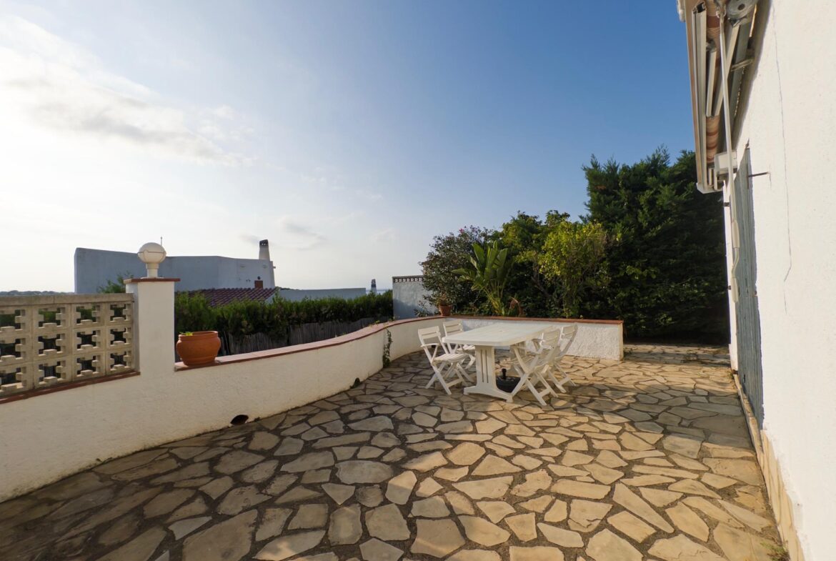 Casa en la bonita Cala Montgó, en La Escala Costa Brava, situada a tan sólo 180m2 del mar.. La casa dispone de 2 viviendas independientes, garaje y dos parkings. Tiene una superficie construida de 205,56m2 en total. En la planta principal tenemos una vivienda de 75,38m2 construidos con un porche de 10,50m2 y una terraza de 25,32m2. Se distribuye en comedor – sala de estar con chimenea y salida a la terraza cubierta con barbacoa y unas vistas muy bonitas a la montaña y laterales al mar, cocina independiente, dos habitaciones dobles con armarios empotrados y un baño con ducha. En la planta baja tenemos otra vivienda de 72,79m2 con un salón comedor con cocina americana y chimenea, una habitación doble, una habitación individual, y un baño con ducha con acceso a una terraza y la piscina de 22,37m2. En la entrada de la casa tenemos un garaje de 24,52m2 y dos plazas de parking descubiertas. Debajo del garaje y de las dos plazas de parking tenemos un gran trastero. La casa está situada a 3km de la zona de tiendas y restaurantes de la playa de Riells, 4km del casco antiguo de La Escala con sus tiendas y restaurantes, 5km de los supermercados Lidl y Mercadona, 17km del Empordà Golf Resort, 30km de Figueres y la estación del AVE, 52km del aeropuerto Girona Costa Brava, 53km del Perthus y la frontera francesa. El precio NO incluye impuestos, gastos ni el mobiliario.~