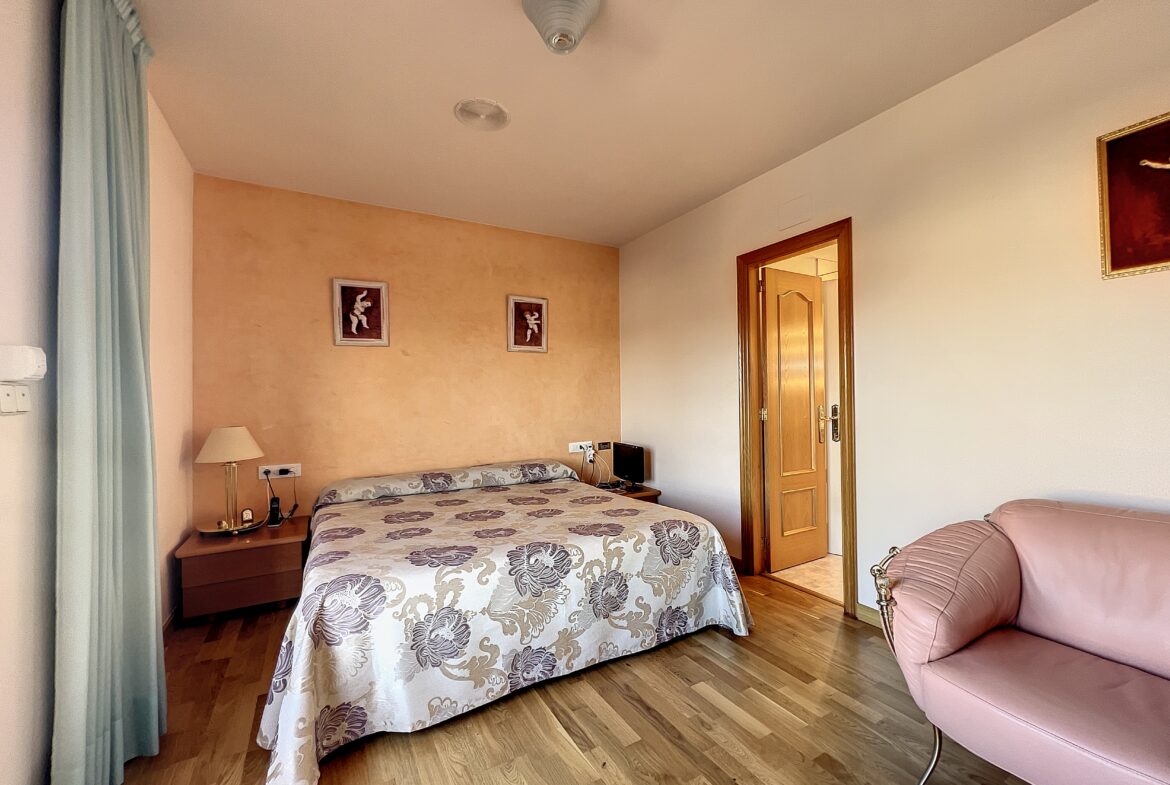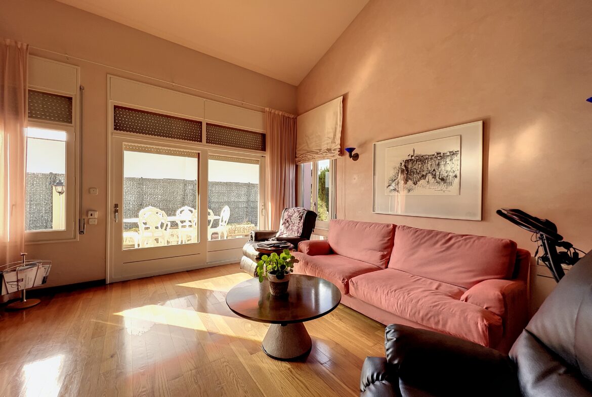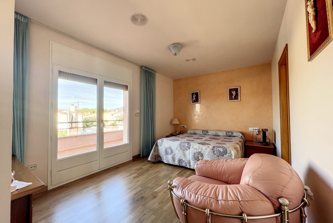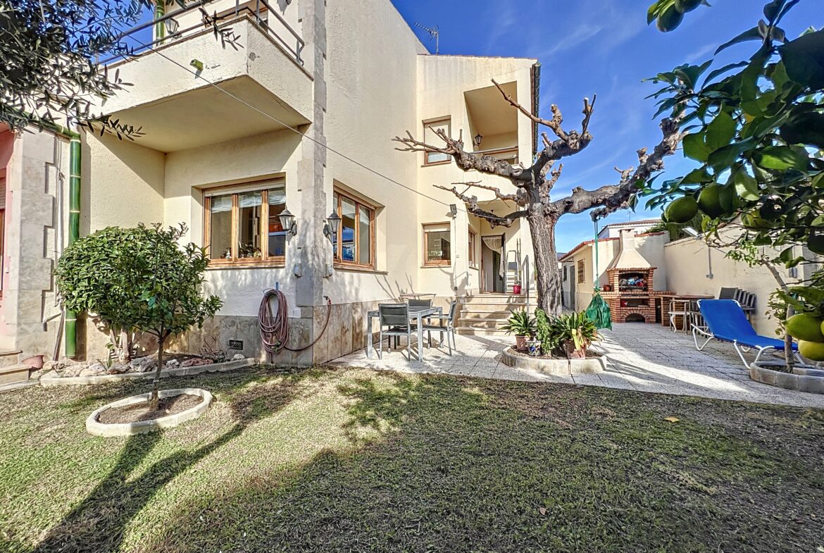 Situada en el tranquilo barrio de Mas Mates, esta encantadora residencia le invita a explorar. Distribuida en tres niveles:- En la planta baja, un amplio salón que da directamente a la terraza y al jardín, un acogedor comedor y una espaciosa cocina con zona de comedor junto a la chimenea. También hay un lavadero y un aseo independiente. Una suite con baño en suite y ducha completa esta planta.- La primera planta cuenta con una suite principal con vestidor, cuarto de baño con bañera y aseo, así como otros dos generosos dormitorios, un cuarto de baño adicional y una zona de estudio.- El sótano cuenta con una zona BODEGA, ideal para entretener a los invitados.En el exterior, una gran parcela de terreno es ideal para una piscina, con una zona de barbacoa para su disfrute y espacio para aparcar sus vehículos.Un trastero completa el espacio exterior.~
