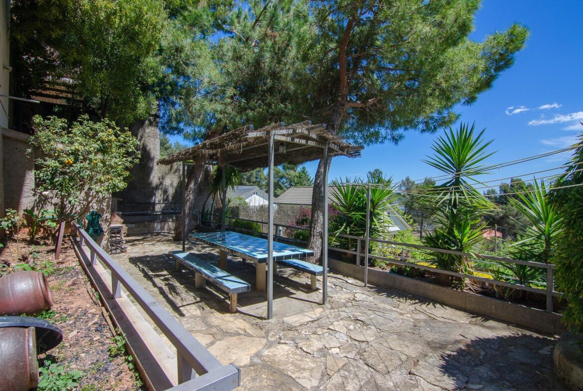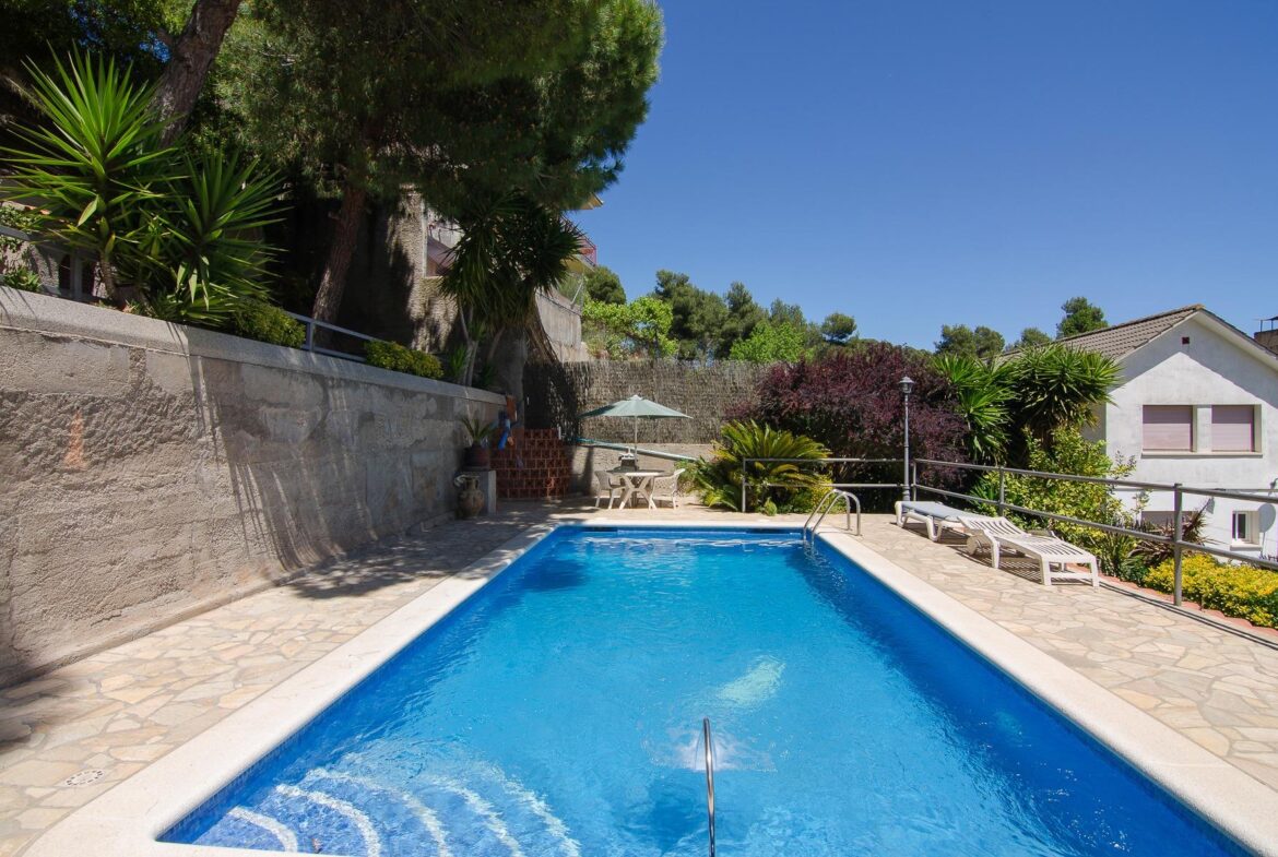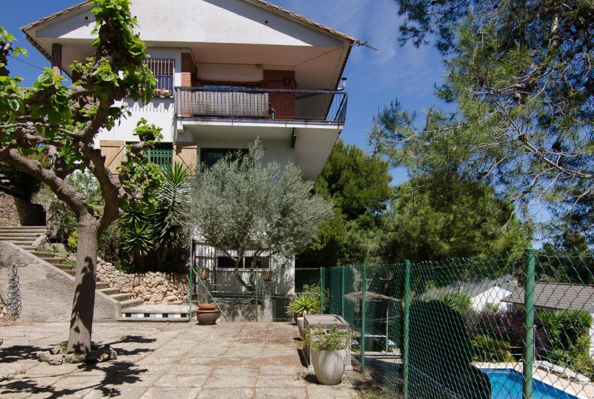 **Casa Unifamiliar en Venta en Corbera de Llobregat, Urbanización La Creu de Aragall**~~Descubre esta espectacular casa unifamiliar situada en la tranquila urbanización La Creu de Aragall, en Corbera de Llobregat. Con una superficie de 247 m² distribuidos en 3 plantas más una encantadora buhardilla de 31 m², esta propiedad ofrece espacio y comodidad para toda la familia. ~~En la planta principal encontrarás una cocina totalmente equipada, una habitación doble, un baño completo y un salón con chimenea que ofrece vistas impresionantes a las montañas y al mar. Además podrás disfrutar de una terraza de 22 m² ideal para relajarte.~~La planta -1 alberga dos habitaciones dobles, una habitación simple, un baño completo y un salón luminoso. En planta -2, hay un trastero, un taller de herramientas y un estudio de 27 m² con cocina y baño propio, perfecto para invitados o como espacio de trabajo.~~La zona exterior es un auténtico paraíso con barbacoa, piscina vallada, solarium, jardín, trasteros y un cuarto de maquinaria. También dispone de depósitos de agua de lluvia, árboles frutales y un huerto para los amantes de la naturaleza.~~Con carpintería exterior de aluminio y madera y suelos de cerámica, esta casa construida en el año 1980 se encuentra en buen estado y ofrece todas las comodidades modernas. Además, está orientada al sudeste, lo que garantiza una excelente iluminación natural durante todo el día.~~Situada a tan sólo 40 minutos de Barcelona y con fácil acceso al transporte público, esta propiedad es perfecta para aquellos que buscan vivir rodeados de naturaleza sin renunciar a la proximidad de la ciudad. ¡No pierdas la oportunidad de visitar esta maravillosa casa!~~**Características Principales:**~- Superficie construida: 247 m²~- Superficie útil: 220 m²~- Parcela: 1.088 m²~- Dormitorios: 5~- Baños: 3~- Terraza y balcón~- Armario empotrado~- Trastero~- Plaza de parking~- Clase energética E (165,00 kwh/m² año)~- Emisiones CO2 D (34,00 kgCO/m² año)~~¡Ven a conocer tu nuevo hogar en Corbera de Llobregat!~