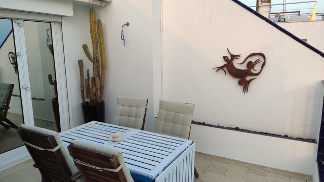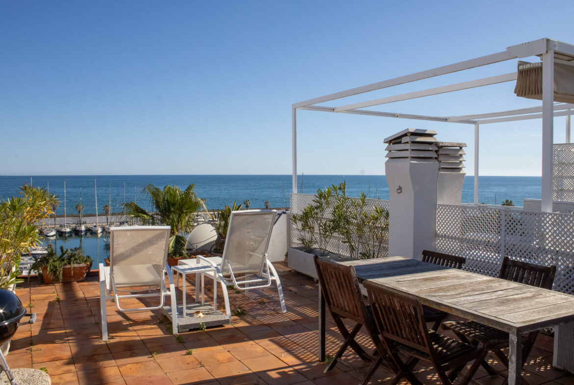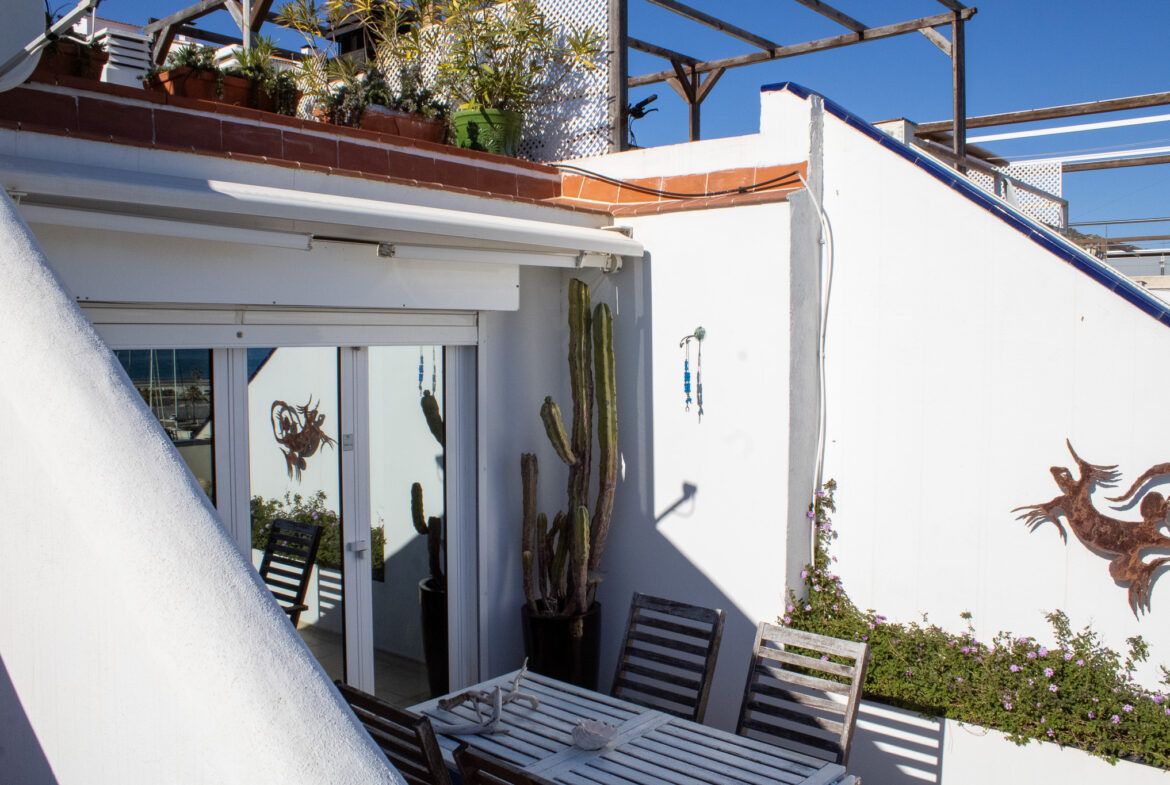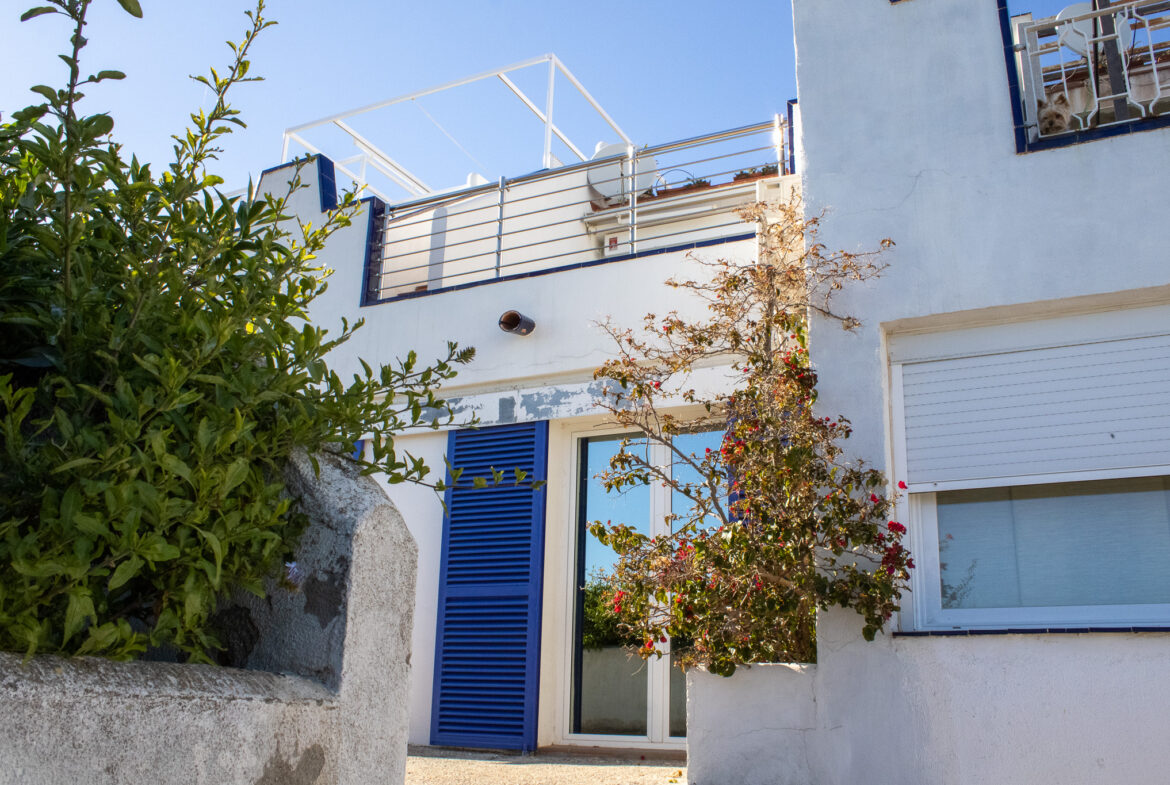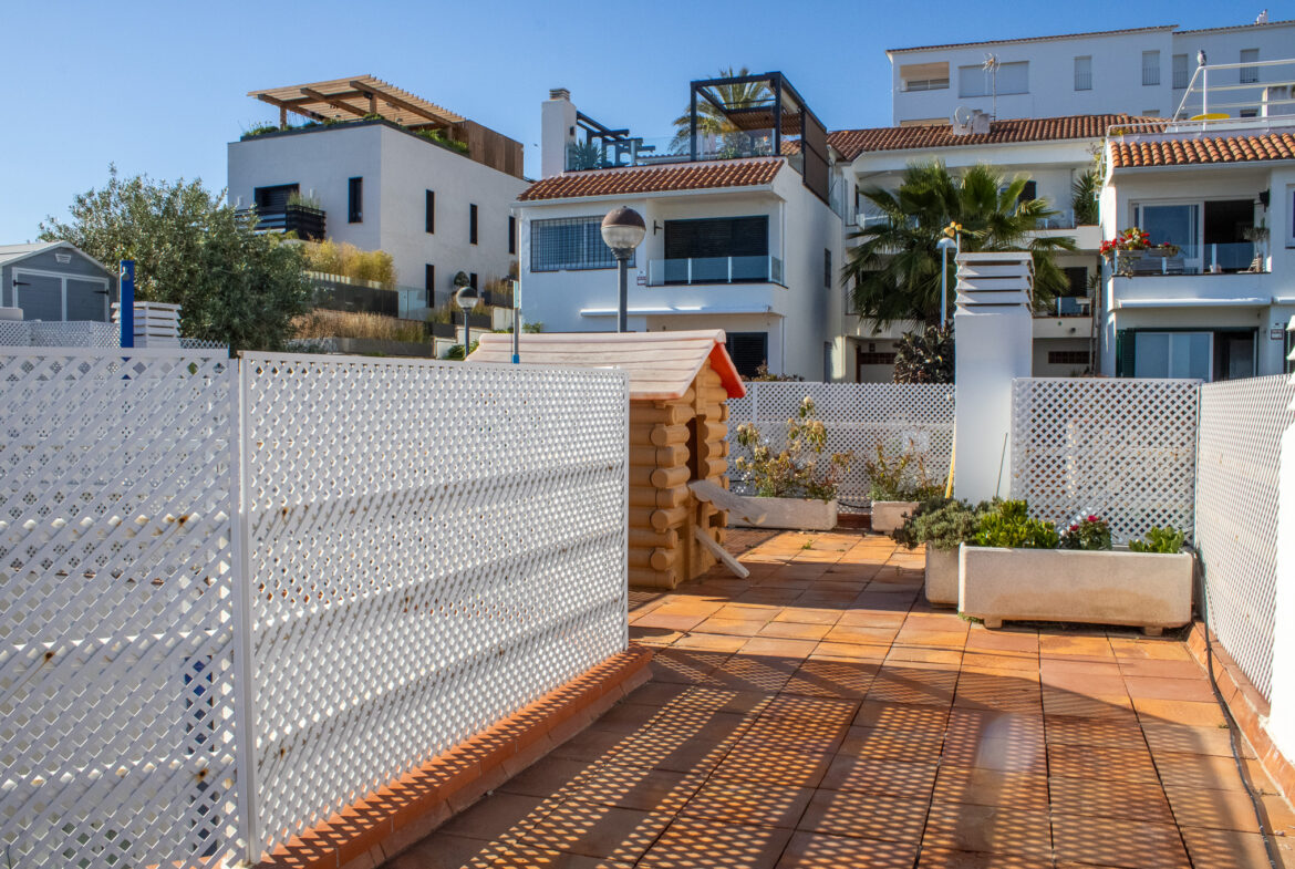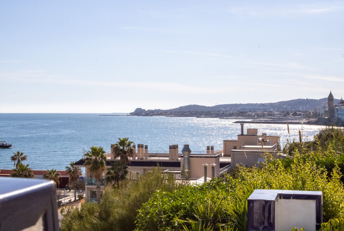 ¡Bienvenido al hogar de tus sueños en Sitges! Esta espectacular residencia con piscina comunitaria en primera línea de mar, ubicada en la prestigiosa zona residencial con vistas panorámicas al puerto de Aiguadolç, es una joya del litoral mediterráneo que combina elegancia, comodidad y una ubicación privilegiada. Construida en 1987 y meticulosamente renovada en 1999, esta casa de 152m2 construidos ofrece una distribución cuidadosamente diseñada que maximiza la funcionalidad y el confort. La última reforma en 2021 garantiza un estilo contemporáneo y actualizado que refleja la calidad y la atención al detalle en cada rincón.La vivienda se distribuye en dos plantas más una terraza solárium de 60m2, proporcionando un impresionante espacio al aire libre con vistas panorámicas al mar. La planta superior nos da la bienvenida con un práctico recibidor y nos conduce hasta el espacioso salón-comedor, inundado de luz natural y conectado con una preciosa cocina de diseño, totalmente equipada con electrodomésticos de primeras marcas. Desde aquí, tenemos acceso a una terraza-solárium de 60m2, donde podrás disfrutar de vistas impresionantes y momentos inolvidables. La planta inferior alberga tres dormitorios excepcionales. La habitación doble tipo suite cuenta con un baño completo con bañera y armarios empotrados. Otra habitación ofrece un baño con ducha y un vestidor, además tiene acceso a un despacho de 15m2, equipado con aire acondicionado y salida directa al paseo marítimo. La tercera habitación individual tiene salida a un patio interior. Finalmente, tenemos una zona de lavandería y una despensa, asegurando funcionalidad y comodidad en cada rincón.Esta propiedad cuenta con comodidades de primera categoría, dispone de suelo radiante y aire acondicionado para garantizar el confort durante todo el año. La piscina comunitaria a tan solo 15 metros y compartida con solo 14 vecinos, añade un toque de exclusividad. En cuanto a los detalles prácticos, las persianas eléctricas, la calefacción central, la chimenea con recuperación de calor, el sistema de osmosis inversa y la domótica aseguran un nivel de comodidad excepcional.¡Vive la experiencia de la costa de Sitges en su máxima expresión!Para aquellos que buscan más que una casa, este es un hogar que celebra el estilo de vida mediterráneo. Contáctanos hoy mismo para explorar esta oportunidad única en el corazón de Sitges. ¡Te invitamos a hacer de esta propiedad tu nuevo hogar!~