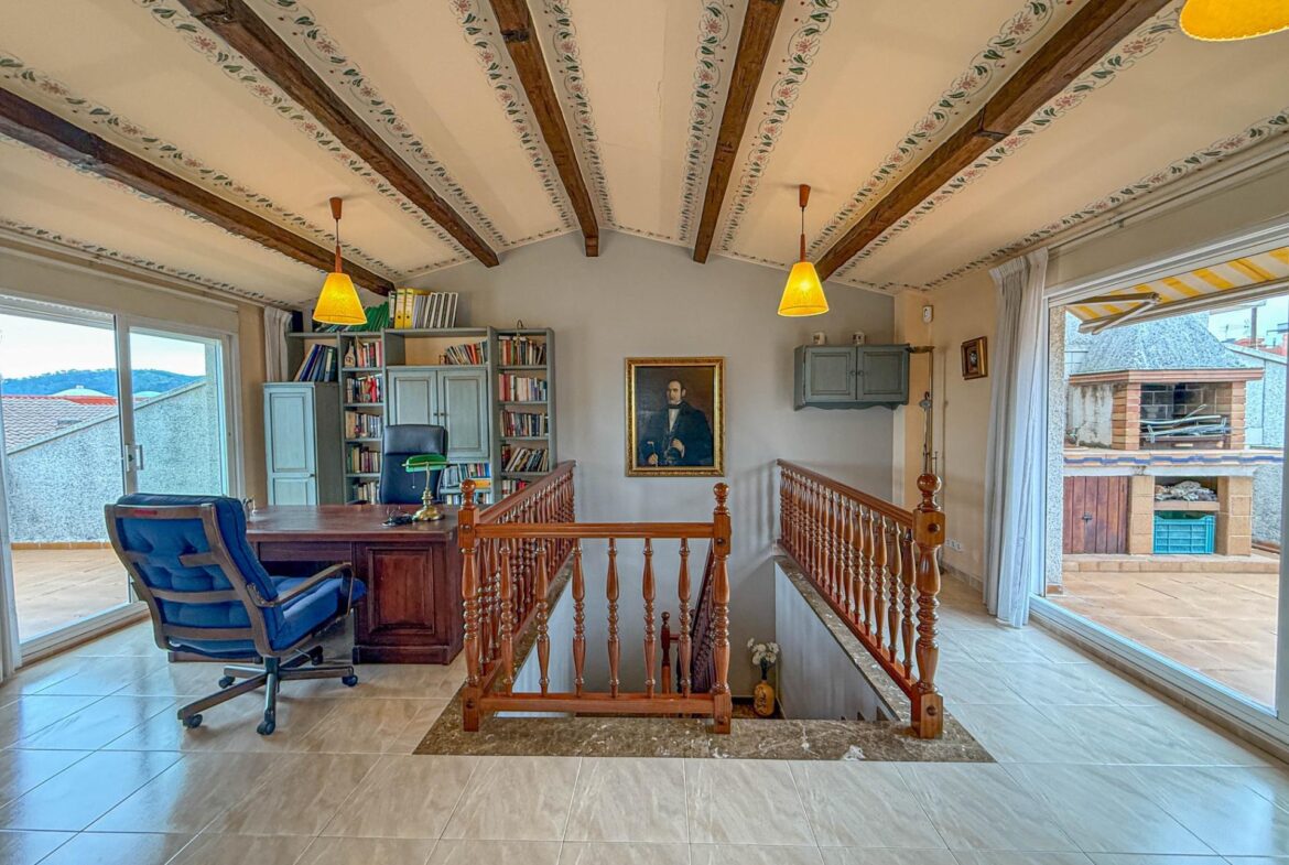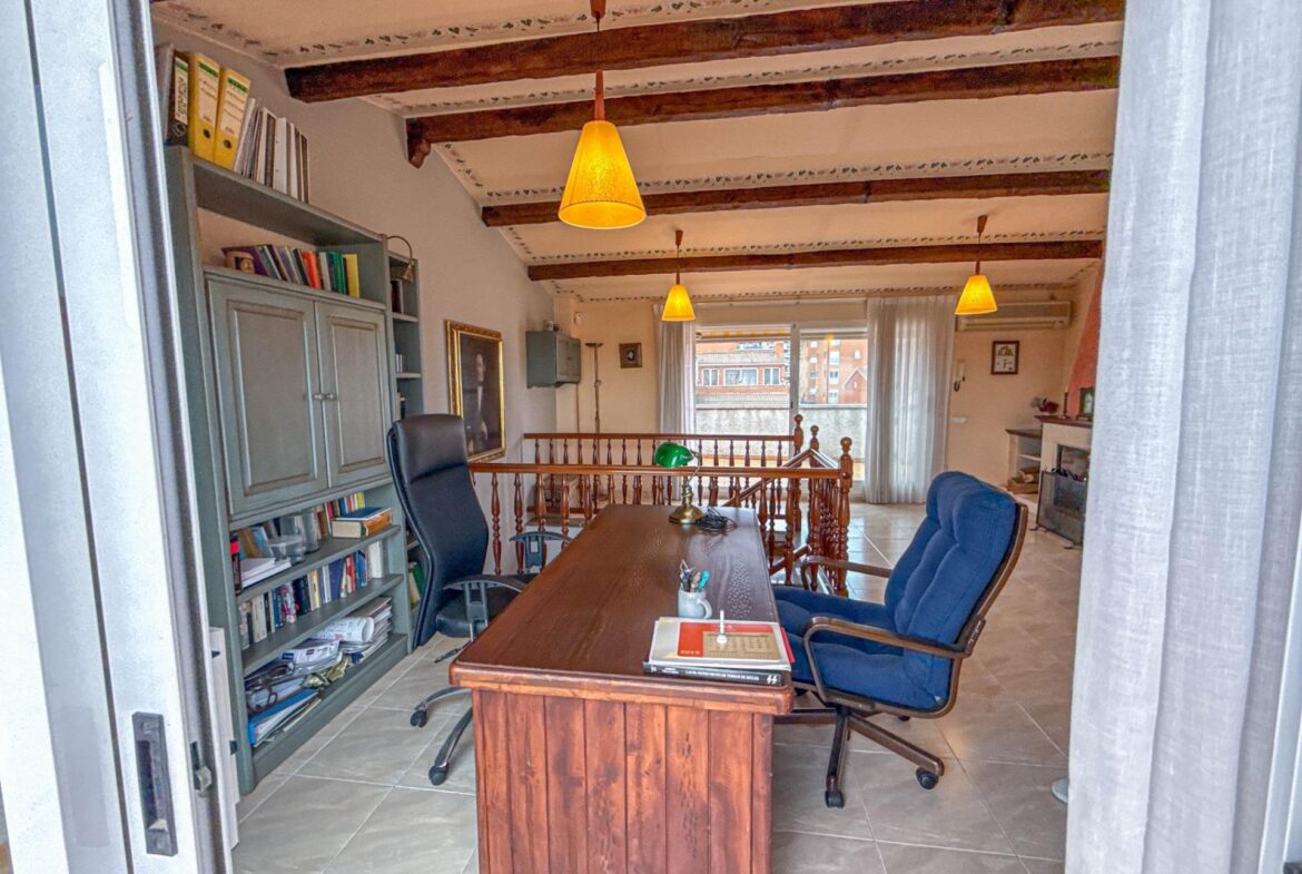 Ubicada en la zona más valorada de Martorell, esta casa unifamiliar adosada y esquinera destaca por ofrecer un entorno residencial extremadamente tranquilo, sin renunciar a la comodidad de tener absolutamente todos los servicios a pocos minutos a pie: comercios, colegios, transporte, zonas verdes y accesos principales.~~La vivienda se distribuye en cuatro plantas perfectamente organizadas, pensadas para cubrir con solvencia las necesidades de una familia actual, combinando espacios amplios, funcionalidad y múltiples zonas exteriores.~~En la planta sótano (-1) encontramos un gran garaje de 66 m², con capacidad holgada para varios vehículos y zona de almacenaje, que incorpora además un espacio de lavadero. Desde esta planta se accede directamente a un patio privado de 27 m², un rincón ideal como desahogo exterior, zona de juegos o espacio de relax.~~La planta baja alberga la zona de día, con un salón-comedor amplio y luminoso de 26 m² y una cocina independiente de 17 m², ambos con salida directa a terrazas, lo que refuerza la conexión interior–exterior y aporta una agradable sensación de amplitud y luz natural. Completa esta planta un aseo de cortesía, muy práctico para el día a día y para las visitas.~~En la primera planta se sitúa la zona de noche, compuesta por cuatro habitaciones: tres dobles y una individual; dos de las habitaciones disponen de terraza propia, un valor añadido poco habitual que mejora la calidad de vida y la ventilación natural de los espacios.~~La vivienda culmina en una planta buhardilla con chimenea, un espacio especialmente atractivo y versátil, ideal como estudio, despacho profesional, sala polivalente, habitación adicional o zona de ocio familiar. Esta planta cuenta con dos terrazas de 14 m² y 15 m², una de ellas equipada con barbacoa, convirtiéndose en un auténtico espacio para disfrutar del aire libre, reuniones sociales o momentos de calma con total privacidad.~~En conjunto, se trata de una vivienda muy completa, con excelente distribución, abundantes espacios exteriores, gran capacidad de aparcamiento y una ubicación privilegiada. Una casa pensada para vivir con tranquilidad, espacio y comodidad, en una de las mejores zonas residenciales de Martorell, donde todo está cerca y el día a día se disfruta de verdad.~~