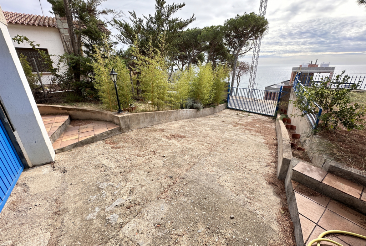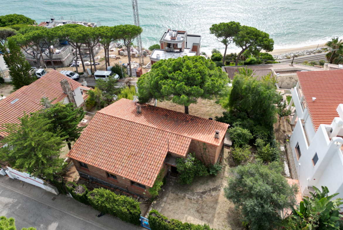 ARV01 – Arenys de Mar; Casa en primera línea de mar de Arenys de Mar, encontramos este chalet de 198 metros cuadrados de superficie construida, con 175 metros cuadrados útiles, la casa esta construida sobre una parcela de 716 metros cuadrados, la casa tiene la particularidad de tener acceso por dos calles diferentes, con múltiples aplicaciones. La casa consta de 4 habitaciones dobles, una de ellas es tipo suite, además un cuarto de baño completo, cocina independiente, salón comedor con chimenea y un amplio balcón a nivel del comedor con acceso al resto del terreno. La casa cuenta con exposición sur, dispone de espacio suficiente pare poder construir una piscina, y tiene una entrada para vehículos en la parte inferior de la parcela, con garaje para un vehículo y espacio para dos vehículos mas en la rampa de acceso, justo al lado del garaje, que esta en la planta baja de la casa, encontramos una lavandería. La casa dispone de calefacción de gas, terreno que la rodea para poder disponer de varias terrazas, la casa está habitable pero con muchas posibilidades de mejora, la situación y las vistas son inmejorables, no dude en contactarnos si esta es la zona donde quiere vivir!~