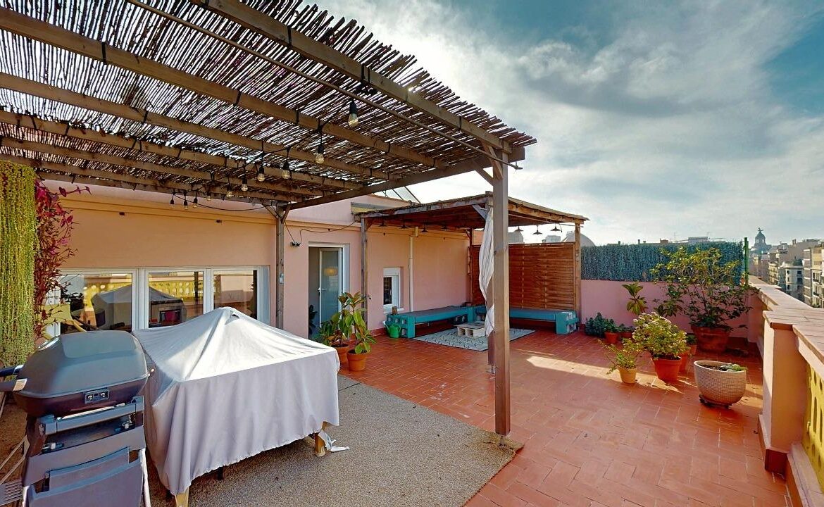 DIPUTACIÓ / BRUC – FINCA REGIA CATALOGADA – A 5 min. DE PASSEIG DE GRÀCIA~Ático con dos amplias terrazas en el corazón de L´Eixample Dret.~Una con vistas a la calle Diputació y otra orientada a un amplio y tranquilo patio de manzana, característico del Eixample.~La vivienda se vende con INQUILINO, contrato de alquiler vigente hasta marzo de 2030, lo que la convierte en una excelente oportunidad de inversión en una de las zonas más demandadas de Barcelona~~Dispone de un luminoso salón-comedor con salida directa a una de las terrazas, cocina semiabierta.~3 dormitorios y dos baños completos.~Aire acondicionado con bomba de calor.~El edificio dispone de ascensor, aunque para acceder al ático es necesario subir medio tramo de escaleras.~Ubicación inmejorable en pleno Eixample Dret, rodeado de todo tipo de servicios, comercios, transporte público y a pocos minutos de los principales puntos de interés de la ciudad.~Una propiedad única por su tipología, terrazas y ubicación, ideal como inversión segura en el centro de Barcelona.~Mobiliario no incluido.~~ * IMPORTANTE * ~~NO COBRAMOS HONORARIOS AL COMPRADOR~~ IMPUESTOS A CARGO DEL COMPRADOR:~ – ITP (entre un 5% y un 20% del precio final de venta, dependiendo del tipo de comprador) https://atc.gencat.cat/ca/tributs/itpajd/tpo/tarifes-tipus/ ~- NOTARÍA y REGISTRO: Gastos sometidos a arancel, su coste estimado puede oscilar Real Decreto 1426/1989 (Notarios) / Real Decreto 1427/1989 (Registradores de la Propiedad)~ EN EL CASO DE PRECISAR FINANCIACIÓN BANCARIA: El importe de los gastos adicionales deberán ser consensuados con la entidad financiera~~~