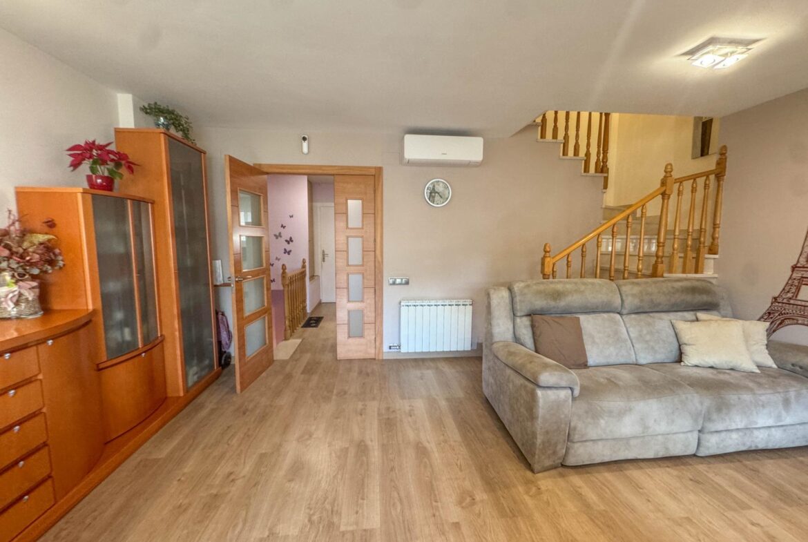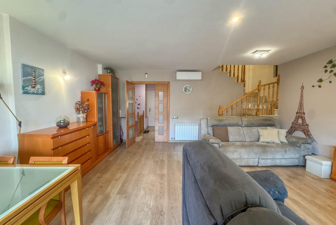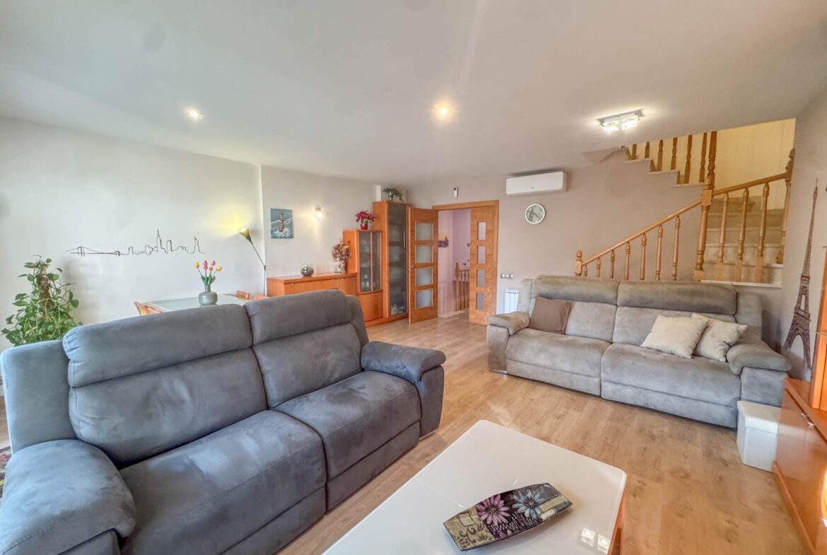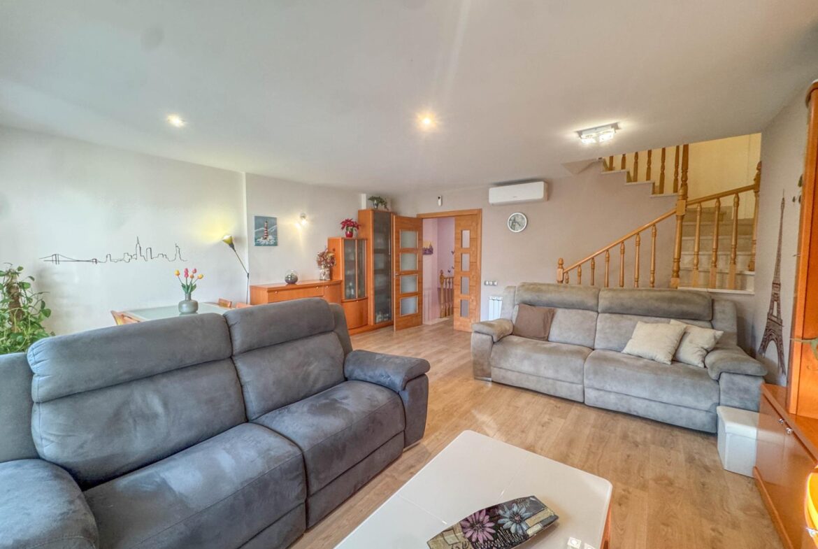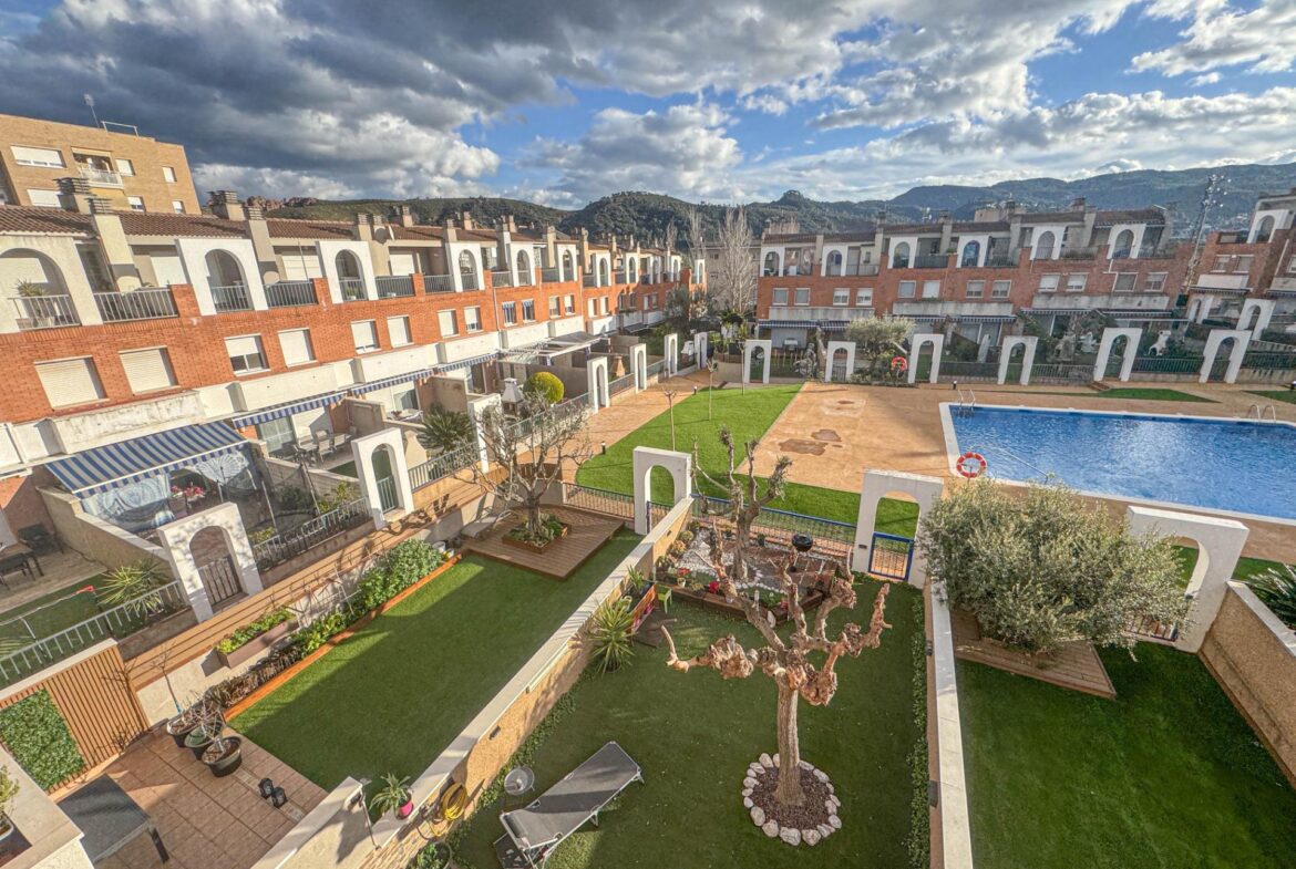 En una de las zonas residenciales más valoradas de Martorell, se encuentra esta casa adosada impecablemente cuidada, una vivienda pensada para disfrutarla desde el primer día, sin renuncias y con un nivel de confort poco habitual.~~La casa destaca especialmente por su zona de día, auténtico corazón de la vivienda. Un salón comedor de 31 m², amplio y luminoso, se abre de forma natural a un jardín privado de 63 m², creando una continuidad perfecta entre interior y exterior. Desde el propio jardín se accede directamente a la zona comunitaria con piscina, una piscina grande, agradable y muy bien mantenida, que aporta una sensación permanente de espacio, calma y calidad de vida. Cabe destacar que el recinto comunitario es privado y cerrado.~Completa esta zona de día en planta baja, una cocina independiente de 11 m², práctica y bien distribuida, y un aseo de cortesía, configurando un espacio pensado para el día a día, pero también para recibir y compartir.~~En la planta sótano (-1) encontramos el garaje, cómodo y funcional, acompañado de dos estancias adicionales que multiplican las posibilidades de la vivienda: sala polivalente, despacho, zona de ocio, gimnasio o almacenaje, según las necesidades de cada familia.~~La zona de noche, situada en la primera planta, ofrece cuatro dormitorios: tres dobles y uno individual. Uno de los dormitorios dobles es suite, y la planta dispone además de un segundo baño completo, garantizando comodidad y privacidad para todos los miembros del hogar.~~En la planta superior, la vivienda sorprende con una buhardilla de 32 m², un espacio con personalidad propia, con salida directa a una magnífica terraza. Las vistas abiertas, tanto al entorno natural como a la piscina comunitaria, convierten este nivel en un lugar ideal para desconectar, trabajar o disfrutar de momentos de tranquilidad.~~A todo ello se suman mejoras y extras de alto valor funcional, como:~•8 placas solares con sistema de compensación de excedentes,~•Iluminación LED en toda la vivienda,~•Descalcificador y ósmosis,~•Toldos y persianas motorizados.~~En definitiva, una casa que combina ubicación, espacio, eficiencia y estado de conservación, pensada para quienes buscan una vivienda cómoda, bien resuelta y en un entorno residencial de primer nivel en Martorell.~~