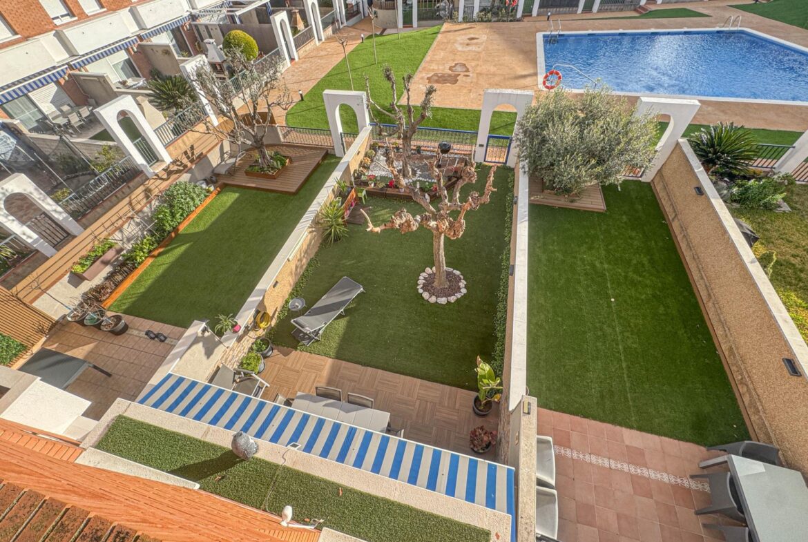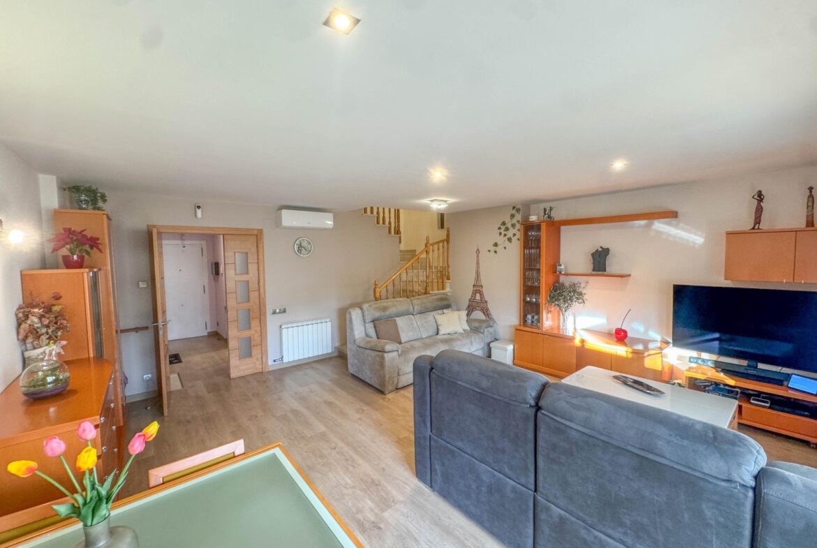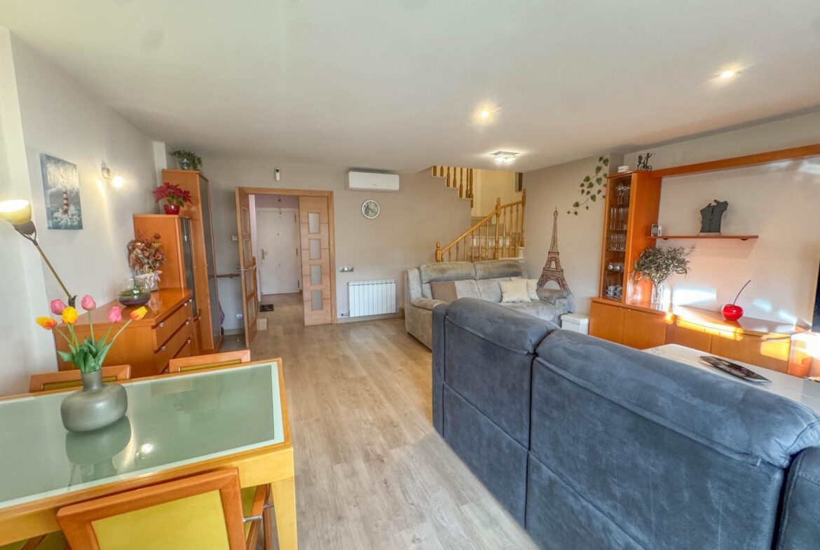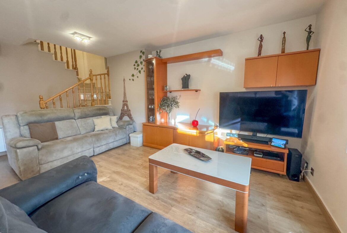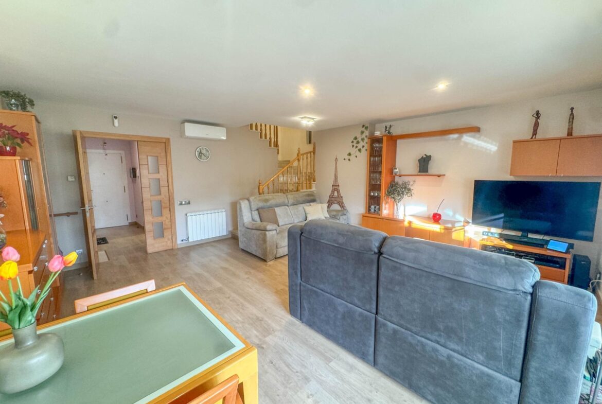 En una de las zonas residenciales más valoradas de Martorell, se encuentra esta casa adosada impecablemente cuidada, una vivienda pensada para disfrutarla desde el primer día, sin renuncias y con un nivel de confort poco habitual.~~La casa destaca especialmente por su zona de día, auténtico corazón de la vivienda. Un salón comedor de 31 m², amplio y luminoso, se abre de forma natural a un jardín privado de 63 m², creando una continuidad perfecta entre interior y exterior. Desde el propio jardín se accede directamente a la zona comunitaria con piscina, una piscina grande, agradable y muy bien mantenida, que aporta una sensación permanente de espacio, calma y calidad de vida. Cabe destacar que el recinto comunitario es privado y cerrado.~Completa esta zona de día en planta baja, una cocina independiente de 11 m², práctica y bien distribuida, y un aseo de cortesía, configurando un espacio pensado para el día a día, pero también para recibir y compartir.~~En la planta sótano (-1) encontramos el garaje, cómodo y funcional, acompañado de dos estancias adicionales que multiplican las posibilidades de la vivienda: sala polivalente, despacho, zona de ocio, gimnasio o almacenaje, según las necesidades de cada familia.~~La zona de noche, situada en la primera planta, ofrece cuatro dormitorios: tres dobles y uno individual. Uno de los dormitorios dobles es suite, y la planta dispone además de un segundo baño completo, garantizando comodidad y privacidad para todos los miembros del hogar.~~En la planta superior, la vivienda sorprende con una buhardilla de 32 m², un espacio con personalidad propia, con salida directa a una magnífica terraza. Las vistas abiertas, tanto al entorno natural como a la piscina comunitaria, convierten este nivel en un lugar ideal para desconectar, trabajar o disfrutar de momentos de tranquilidad.~~A todo ello se suman mejoras y extras de alto valor funcional, como:~•8 placas solares con sistema de compensación de excedentes,~•Iluminación LED en toda la vivienda,~•Descalcificador y ósmosis,~•Toldos y persianas motorizados.~~En definitiva, una casa que combina ubicación, espacio, eficiencia y estado de conservación, pensada para quienes buscan una vivienda cómoda, bien resuelta y en un entorno residencial de primer nivel en Martorell.~~