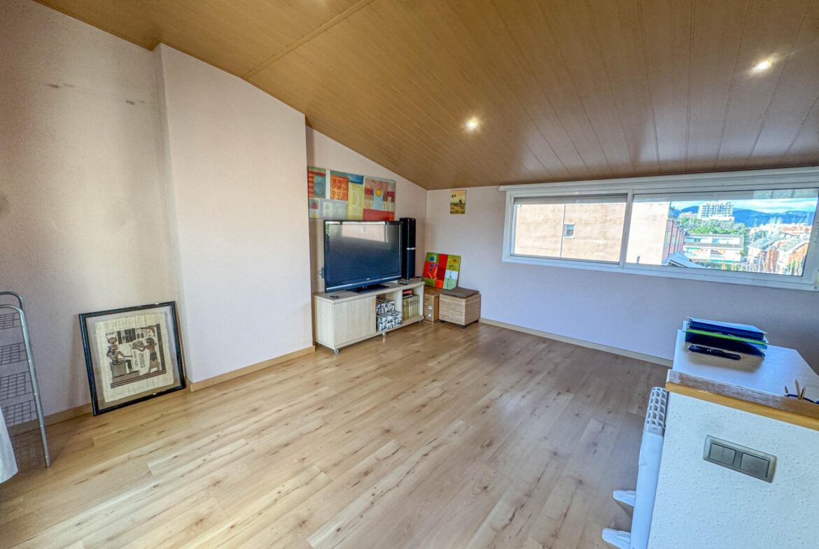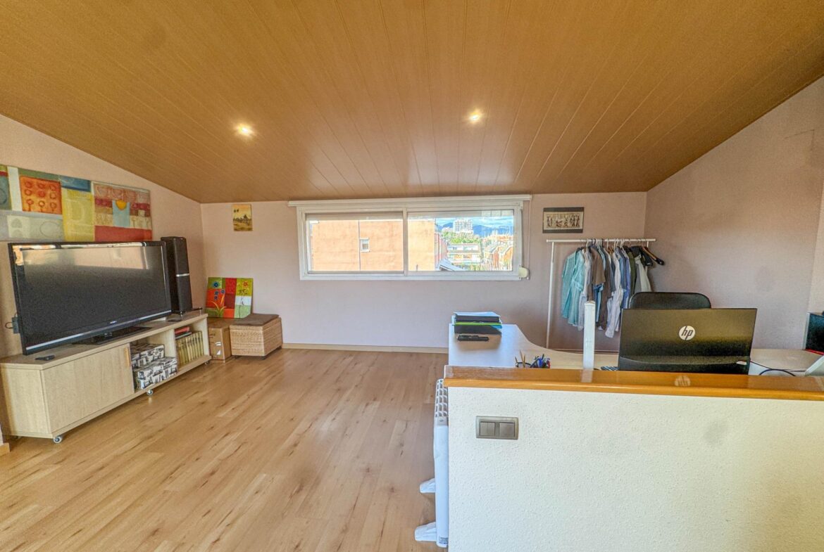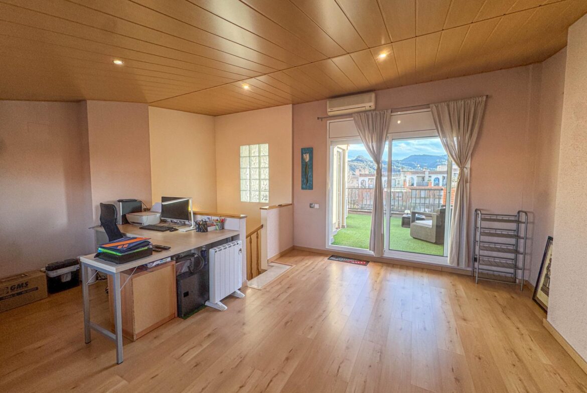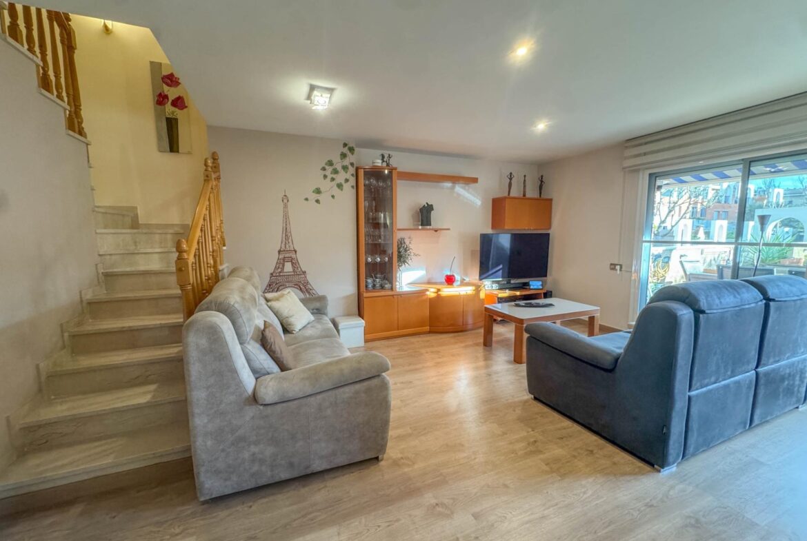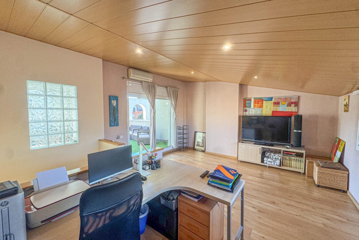 En una de las zonas residenciales más valoradas de Martorell, se encuentra esta casa adosada impecablemente cuidada, una vivienda pensada para disfrutarla desde el primer día, sin renuncias y con un nivel de confort poco habitual.~~La casa destaca especialmente por su zona de día, auténtico corazón de la vivienda. Un salón comedor de 31 m², amplio y luminoso, se abre de forma natural a un jardín privado de 63 m², creando una continuidad perfecta entre interior y exterior. Desde el propio jardín se accede directamente a la zona comunitaria con piscina, una piscina grande, agradable y muy bien mantenida, que aporta una sensación permanente de espacio, calma y calidad de vida. Cabe destacar que el recinto comunitario es privado y cerrado.~Completa esta zona de día en planta baja, una cocina independiente de 11 m², práctica y bien distribuida, y un aseo de cortesía, configurando un espacio pensado para el día a día, pero también para recibir y compartir.~~En la planta sótano (-1) encontramos el garaje, cómodo y funcional, acompañado de dos estancias adicionales que multiplican las posibilidades de la vivienda: sala polivalente, despacho, zona de ocio, gimnasio o almacenaje, según las necesidades de cada familia.~~La zona de noche, situada en la primera planta, ofrece cuatro dormitorios: tres dobles y uno individual. Uno de los dormitorios dobles es suite, y la planta dispone además de un segundo baño completo, garantizando comodidad y privacidad para todos los miembros del hogar.~~En la planta superior, la vivienda sorprende con una buhardilla de 32 m², un espacio con personalidad propia, con salida directa a una magnífica terraza. Las vistas abiertas, tanto al entorno natural como a la piscina comunitaria, convierten este nivel en un lugar ideal para desconectar, trabajar o disfrutar de momentos de tranquilidad.~~A todo ello se suman mejoras y extras de alto valor funcional, como:~•8 placas solares con sistema de compensación de excedentes,~•Iluminación LED en toda la vivienda,~•Descalcificador y ósmosis,~•Toldos y persianas motorizados.~~En definitiva, una casa que combina ubicación, espacio, eficiencia y estado de conservación, pensada para quienes buscan una vivienda cómoda, bien resuelta y en un entorno residencial de primer nivel en Martorell.~~