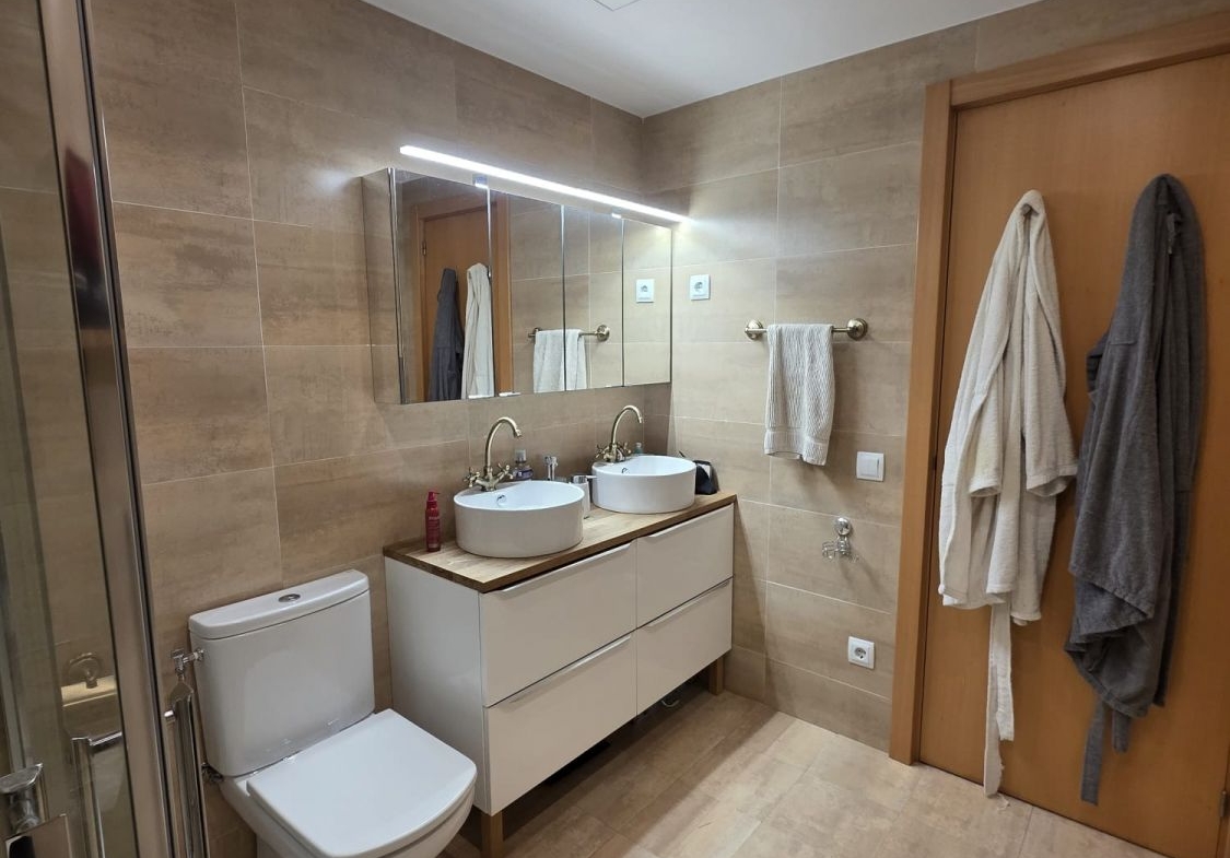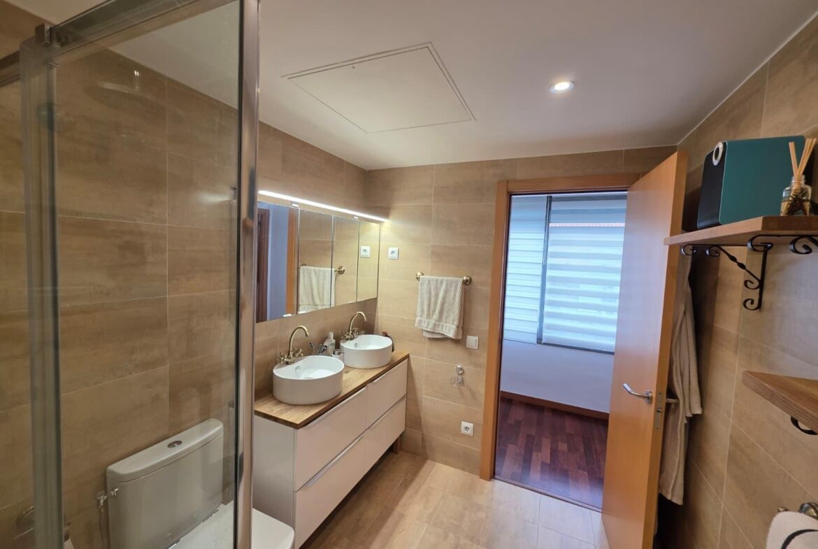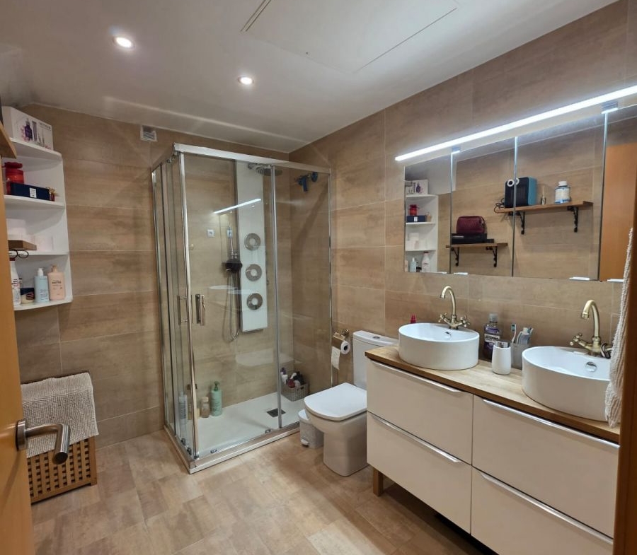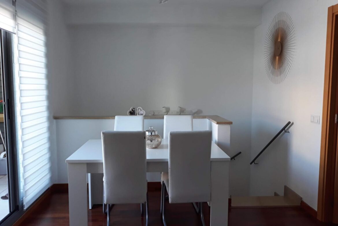 Vivienda seminueva, muy bien cuidada y totalmente exterior, que destaca por su luminosidad y su excelente distribución.~~En la planta principal encontramos un baño, cocina independiente y un amplio comedor con salida a una agradable balcón de 7m2. Desde esta planta accedemos mediante escalera a la planta inferior, donde se ubican dos habitaciones dobles y un segundo baño con plato de ducha. Una de las habitaciones dispone de salida directa a una fantástica terraza de 16 m².~~La vivienda disfruta de vistas despejadas y a la piscina comunitaria, lo que aporta una sensación de amplitud y tranquilidad.~~Incluye dos plazas de aparcamiento contiguas en el mismo edificio.~~Equipada con aire acondicionado por conductos en todas las estancias, termo eléctrico para el calentamiento de agua, lo que la convierte en una vivienda eficiente, ecológica y económica.~~Para más información o concertar una visita, no dude en ponerse en contacto con nosotros.~~*Adjuntamos plano~