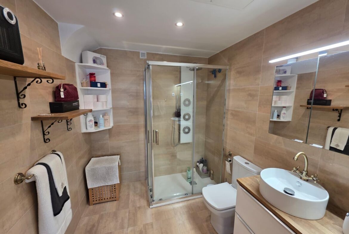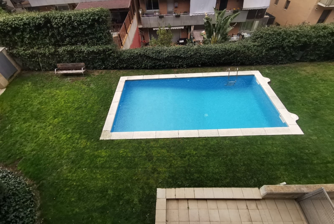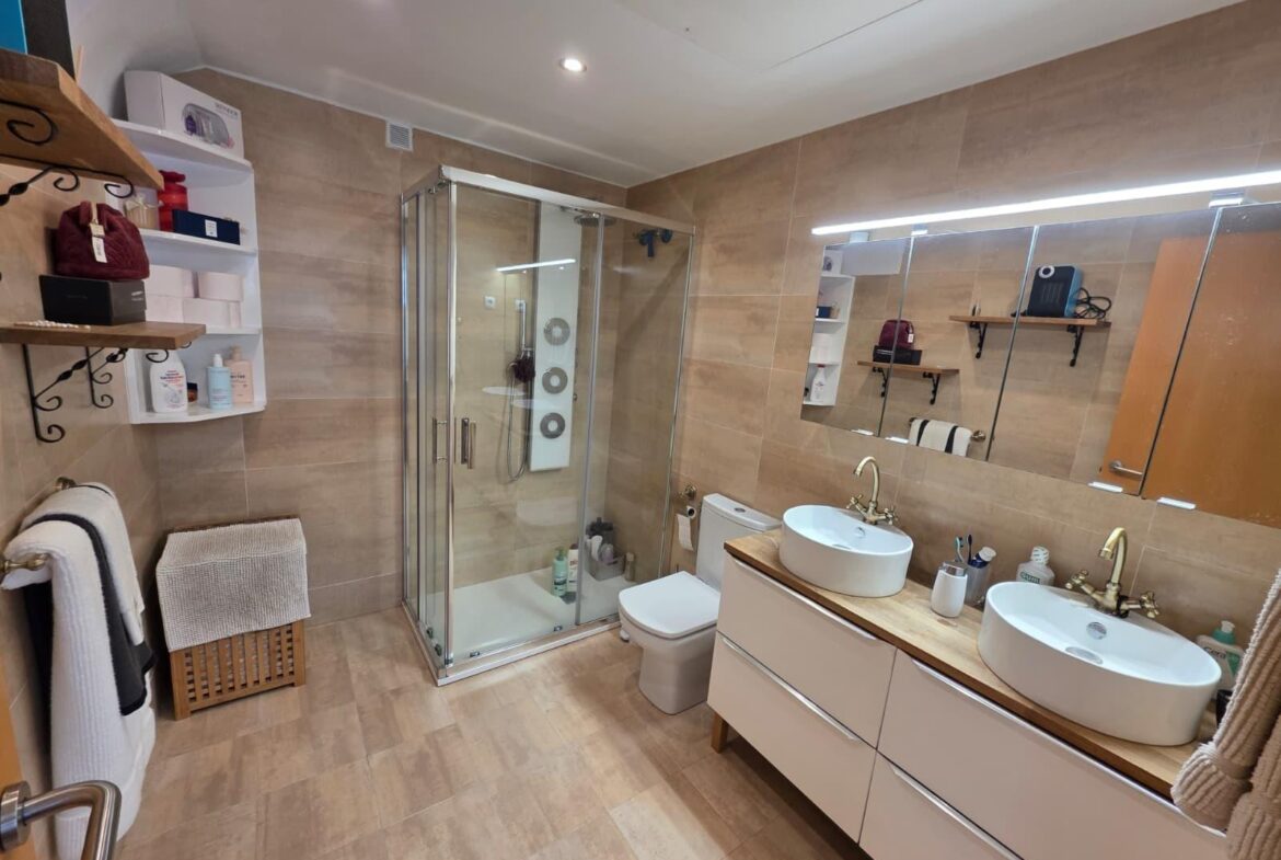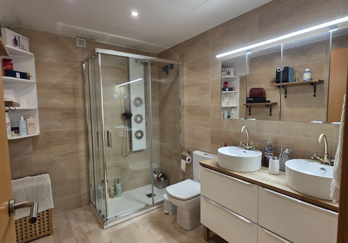 Vivienda seminueva, muy bien cuidada y totalmente exterior, que destaca por su luminosidad y su excelente distribución.~~En la planta principal encontramos un baño, cocina independiente y un amplio comedor con salida a una agradable balcón de 7m2. Desde esta planta accedemos mediante escalera a la planta inferior, donde se ubican dos habitaciones dobles y un segundo baño con plato de ducha. Una de las habitaciones dispone de salida directa a una fantástica terraza de 16 m².~~La vivienda disfruta de vistas despejadas y a la piscina comunitaria, lo que aporta una sensación de amplitud y tranquilidad.~~Incluye dos plazas de aparcamiento contiguas en el mismo edificio.~~Equipada con aire acondicionado por conductos en todas las estancias, termo eléctrico para el calentamiento de agua, lo que la convierte en una vivienda eficiente, ecológica y económica.~~Para más información o concertar una visita, no dude en ponerse en contacto con nosotros.~~*Adjuntamos plano~
