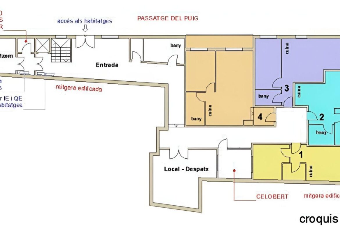 Se ofrece a la venta un edificio plurifamiliar de gran versatilidad, con accesos desde tres calles y tres fachadas, situado en una parcela con desnivel, equipado con ascensor y escalera. El inmueble ha sido parcialmente reformado, siendo la última intervención en 2008.~~Distribución y características del activo:~~13 apartamentos de 36 a 48 m², con posibilidad de reconvertir o redistribuir para generar viviendas de mayor superficie.~~Ático tríplex de 250 m² con terraza privada de 150 m².~~Local comercial en sótano – bar musical, reformado, con aforo para 245 personas.~~Local planta baja – pizzería con salida de humos, alquilado por 10 años a negocio consolidado.~~1 plaza de aparcamiento cerrada incluida en la propiedad.~~Llámanos | Escríbenos | Visítanos para más información~~Ofrecido por Immobiliària Barcelona® – Un club de servicios inmobiliarios a tu disposición. El precio no incluye los impuestos legalmente aplicables. Puedes encontrar más información sobre el cálculo de impuestos en: atc.gencat.cat/ca/inici.~