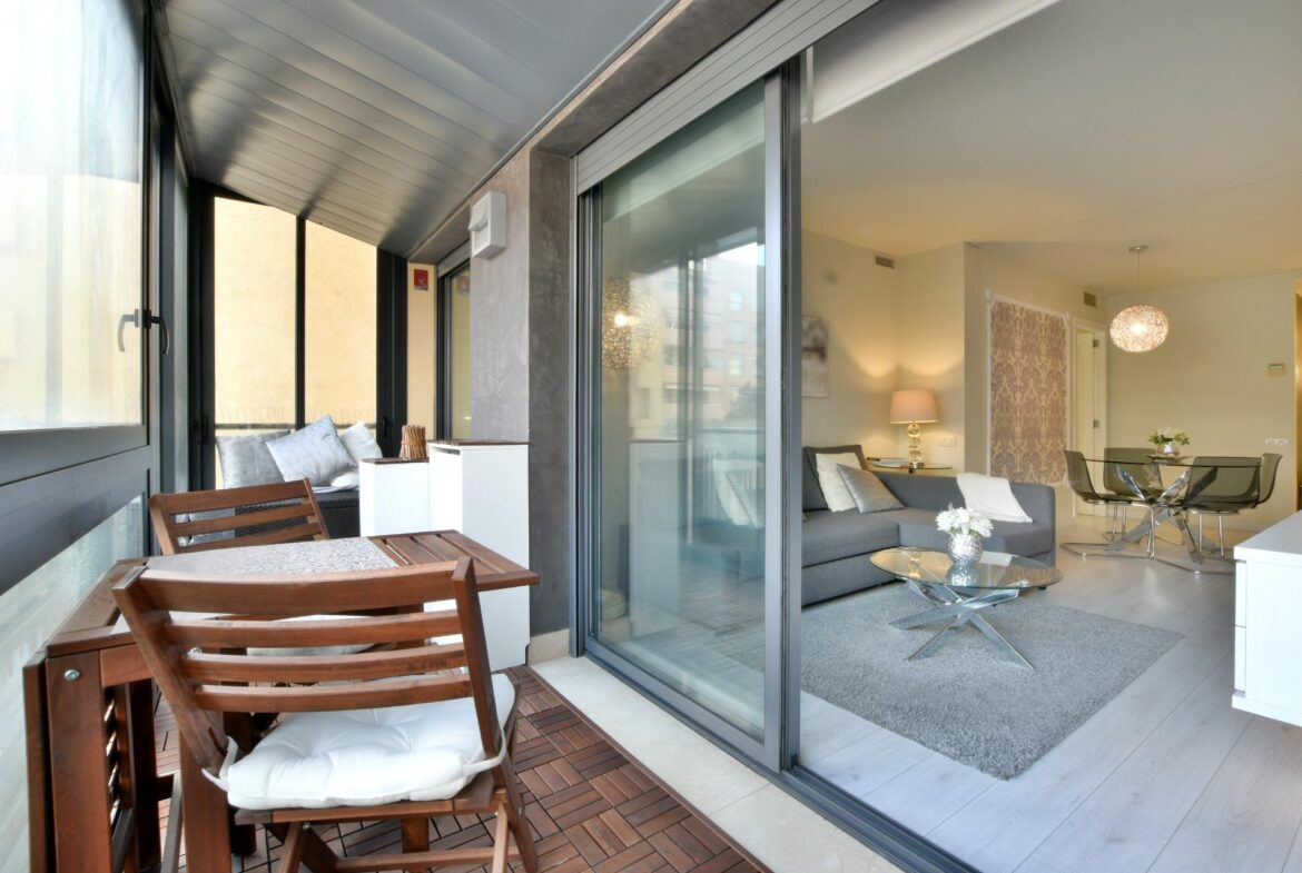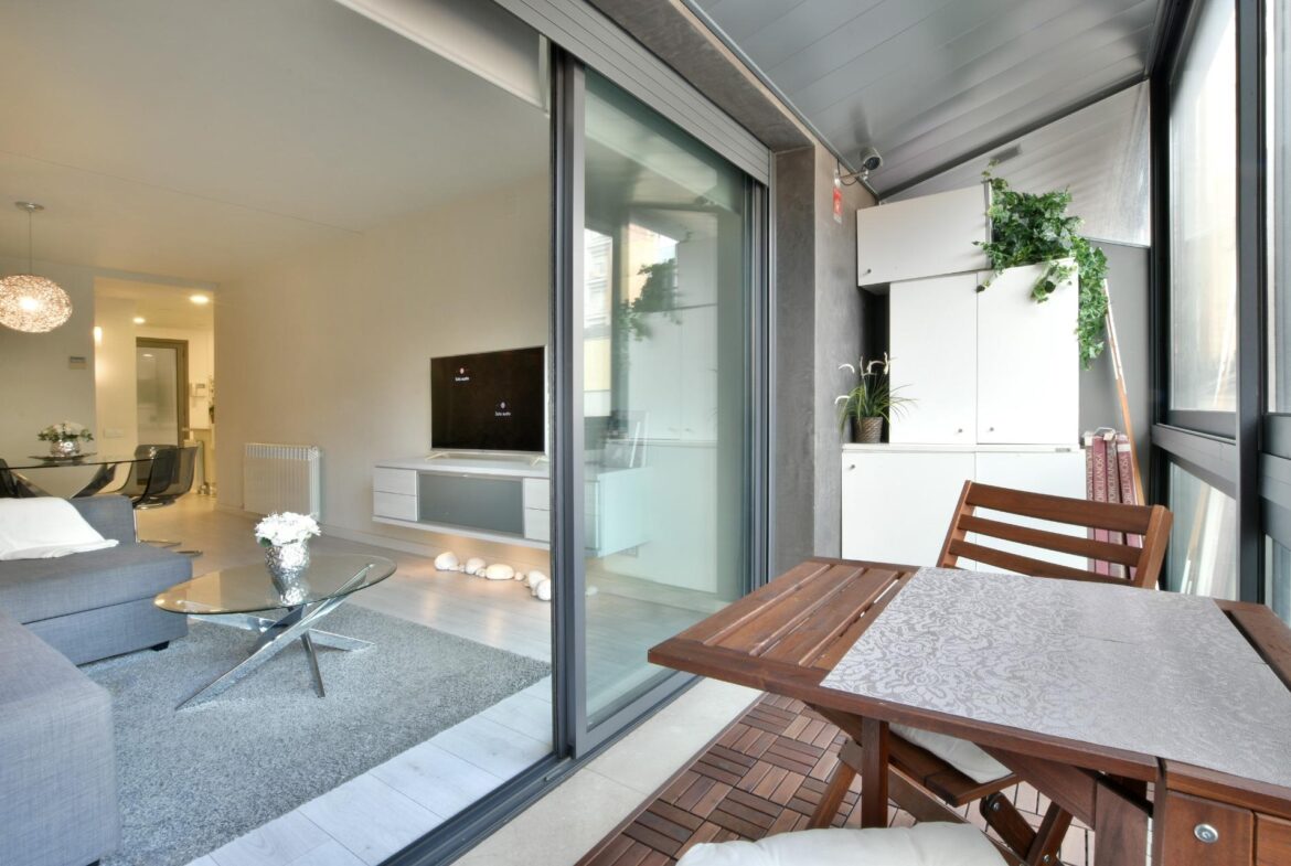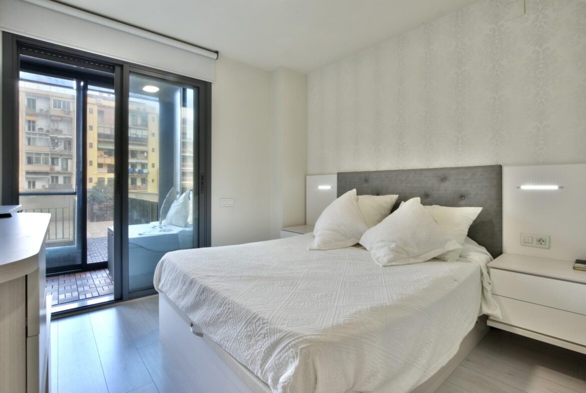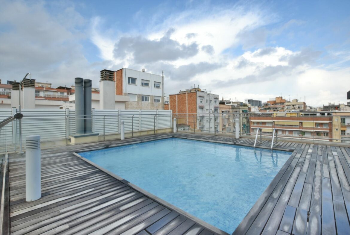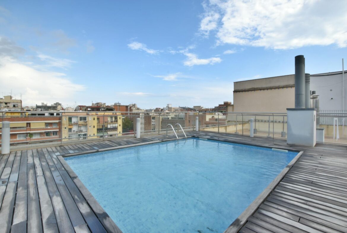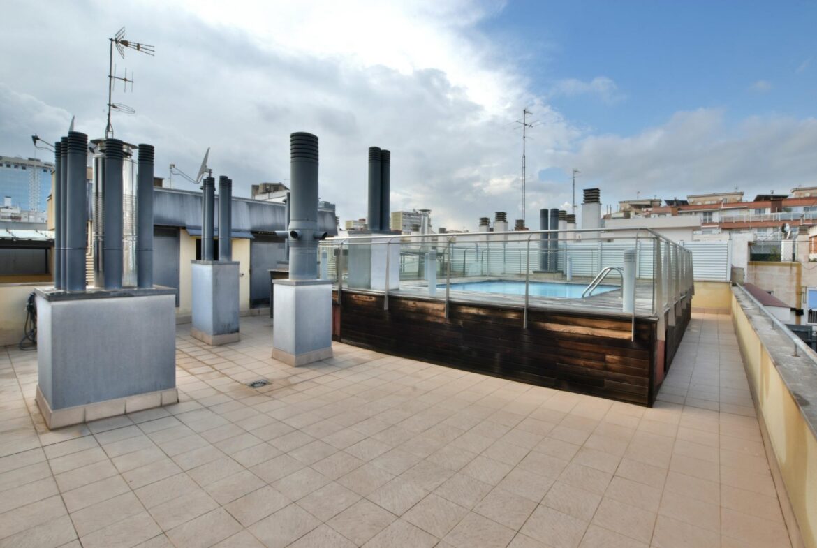 Exclusivo piso con 88 m² de terrazas y reforma de lujo en La Nova Esquerra de l’Eixample~~Exclusiva vivienda de 70 m² con 88 m² de espectaculares terrazas y reforma integral de diseño (2018), ubicada en una finca de Nuñez y Navarro del 2007, con piscina, solárium, seguridad y dos ascensores.~~Se distribuye en 3 habitaciones:~~· Suite principal con baño completo y bañera.~~· 2 habitaciones medianas que comparten baño con ducha; una de ellas con salida directa a una terraza interior de 16 m², decorada como zona chill-out.~~· Cocina abierta con amplia barra americana y totalmente equipada (horno, microondas, lavadora-secadora, frigorífico).~~· Elegante salón-comedor con acceso a una luminosa terraza cerrada de 10 m², aislada con aluminio y doble acristalamiento; ideal como zona de desayuno, lectura o despacho.~~· Desde esta terraza se accede a una impresionante terraza exterior de 62 m², con proyecto para solárium, zona ajardinada y espacio de relax.~~Calidades y equipamiento:~~· Reforma integral de lujo con materiales de primera calidad y muebles hechos a medida.~~· Calefacción por radiadores de gas natural y aire acondicionado por bomba frío/calor.~~· Ventanas de aluminio con doble cristal tipo Climalit, suelos de parquet, armarios empotrados.~~· Puerta de seguridad, videoportero e instalación de alarma.~~Edificio y servicios:~~· Finca del 2007 de Nuñez y Navarro con zonas comunes de alta calidad.~~· Piscina comunitaria, solárium y placas solares para el consumo eléctrico de la piscina y zonas comunes.~~· Dos ascensores, cámaras de seguridad y videovigilancia.~~· Opción de plaza de parking de 14 m² y trastero de 10 m², con acceso directo por ascensor desde la vivienda.~~Ubicación privilegiada:~~Situado junto al Parque Joan Miró, cerca de centros universitarios, médicos y todo tipo de servicios: supermercados, restaurantes, comercios y transporte público (metro y autobús). Con excelente conexión con Plaza España y Estación de Sants.~~Si deseas más información o quieres coordinar una visita, no dudes en contactarme.~
