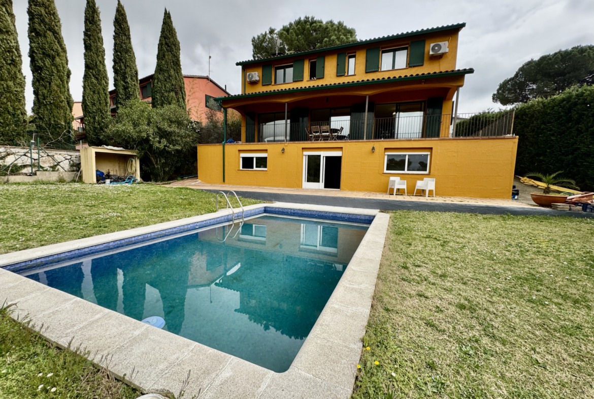 GIVI05 – Girona, villa; Exclusiva casa unifamiliar con piscina y jardín en Golf Girona – Sant Julià de RamisLe presentamos esta magnífica vivienda unifamiliar en venta en la urbanización Golf Girona, en Sant Julià de Ramis, una zona residencial tranquila y privilegiada muy cerca de Girona.Construida en 2001, la propiedad se levanta sobre una parcela de 1.058 m² y dispone de aproximadamente 459 m² construidos y 378 m² útiles, distribuidos en tres plantas comunicadas mediante escalera interior: planta sótano, planta baja y planta primera.La planta baja alberga el hall de entrada, un aseo de cortesía, despacho, cocina, zona de plancha y un amplio salón-comedor con salida a la terraza exterior, ideal para disfrutar del entorno. En esta planta también se encuentra el garaje con doble acceso, con entrada directa para vehículos desde el exterior y acceso interior a la vivienda.La planta primera está destinada a la zona de descanso y cuenta con cuatro dormitorios, uno de ellos tipo suite con baño privado, además de un segundo baño completo.La planta sótano ofrece un gran espacio diáfano con múltiples posibilidades de uso, como sala de ocio, gimnasio, bodega o zona de almacenamiento, tiene 4 habitaciones y dos baños completos, la planta tiene acceso directo al jardín y la piscina.En el exterior, la vivienda destaca por su amplio jardín privado con piscina y vistas despejadas al campo de golf, un entorno perfecto para disfrutar de la tranquilidad, organizar reuniones al aire libre o relajarse en plena naturaleza.La finca está ubicada en una zona residencial muy valorada por su calidad de vida, tranquilidad y excelente conexión con Girona.Esta propiedad representa una oportunidad única para quienes buscan una casa amplia, luminosa y rodeada de naturaleza, sin renunciar a la proximidad de la ciudad.Nota legal: El precio publicado no incluye impuestos ni gastos derivados de la compraventa. En las viviendas de segunda mano se deberá añadir el ITP correspondiente según normativa vigente en Cataluña, así como los gastos de notaría y registro. Los honorarios de intermediación están incluidos en el precio, salvo indicación expresa en contrario.Contáctanos:• Teléfono: +34 972 977 797• Email: brava@remax.es• Página web: www.remaxcostabrava.esRE/MAX BRAVA. Tu aliado en la búsqueda del hogar perfecto.El precio publicado no incluye impuestos ni gastos derivados de la compraventa. En las viviendas de segunda mano se deberá añadir el ITP correspondiente según normativa vigente en Cataluña, así como los gastos de notaría y registro. Los honorarios de intermediación están incluidos en el precio, salvo indicación expresa en contrario.~