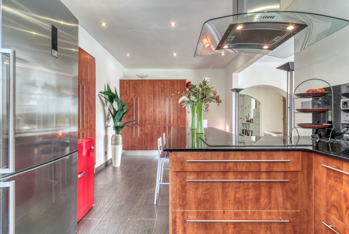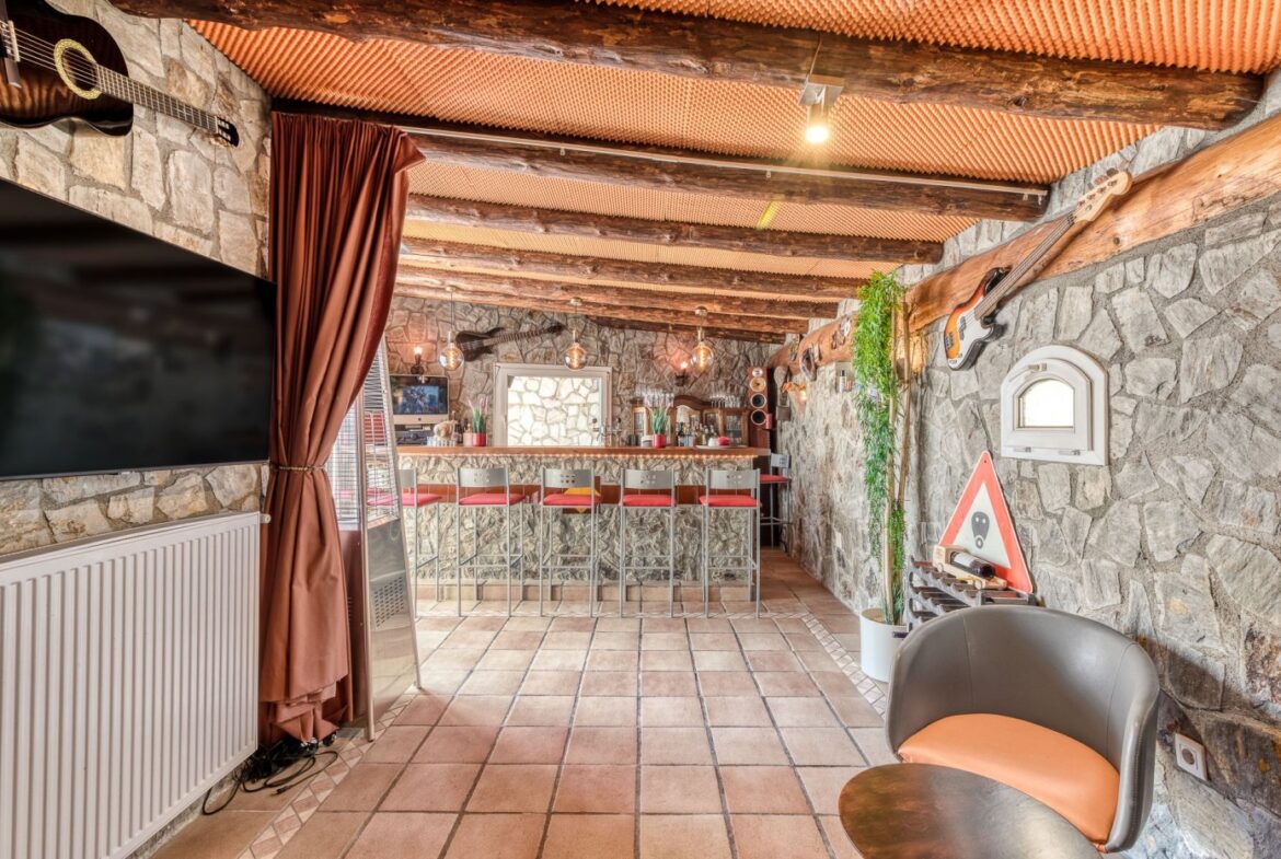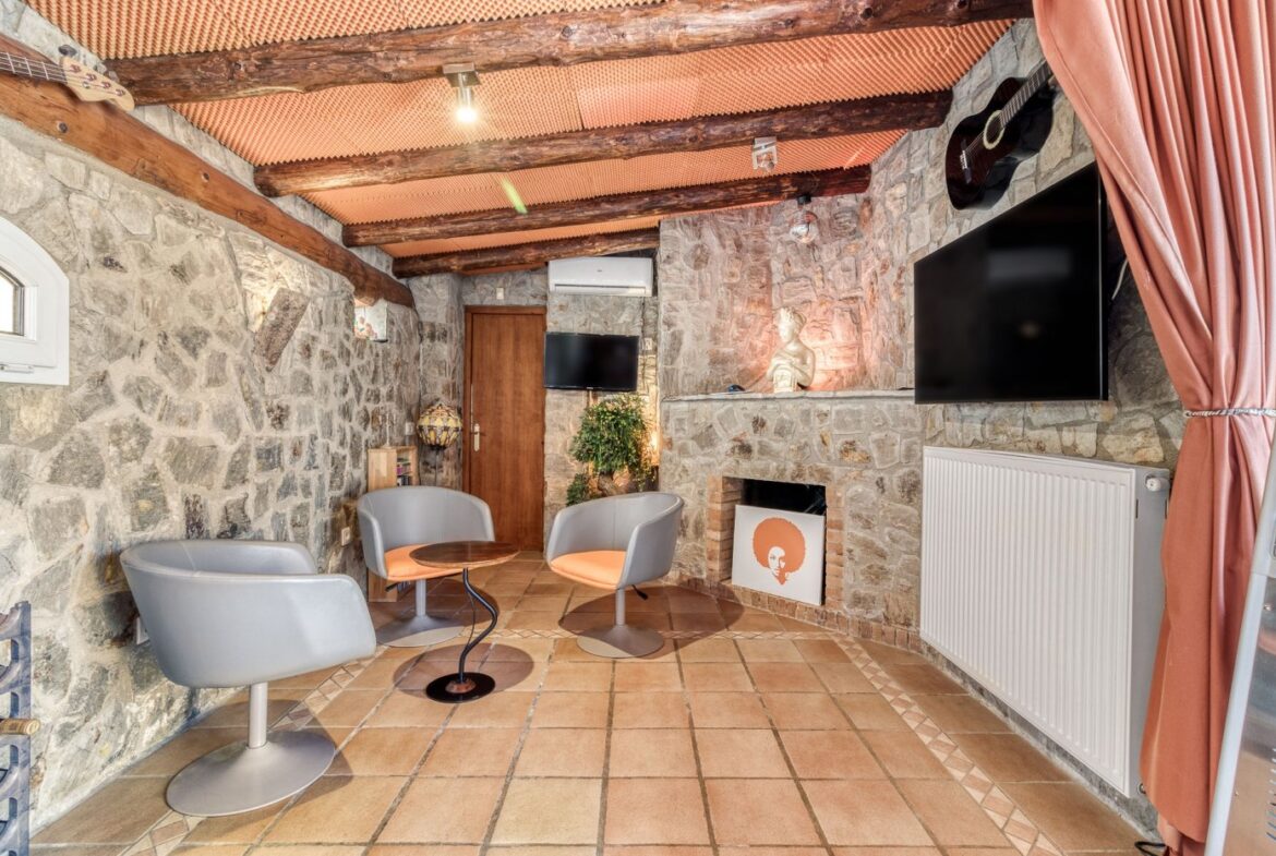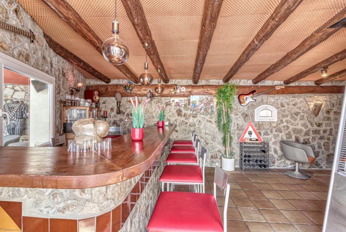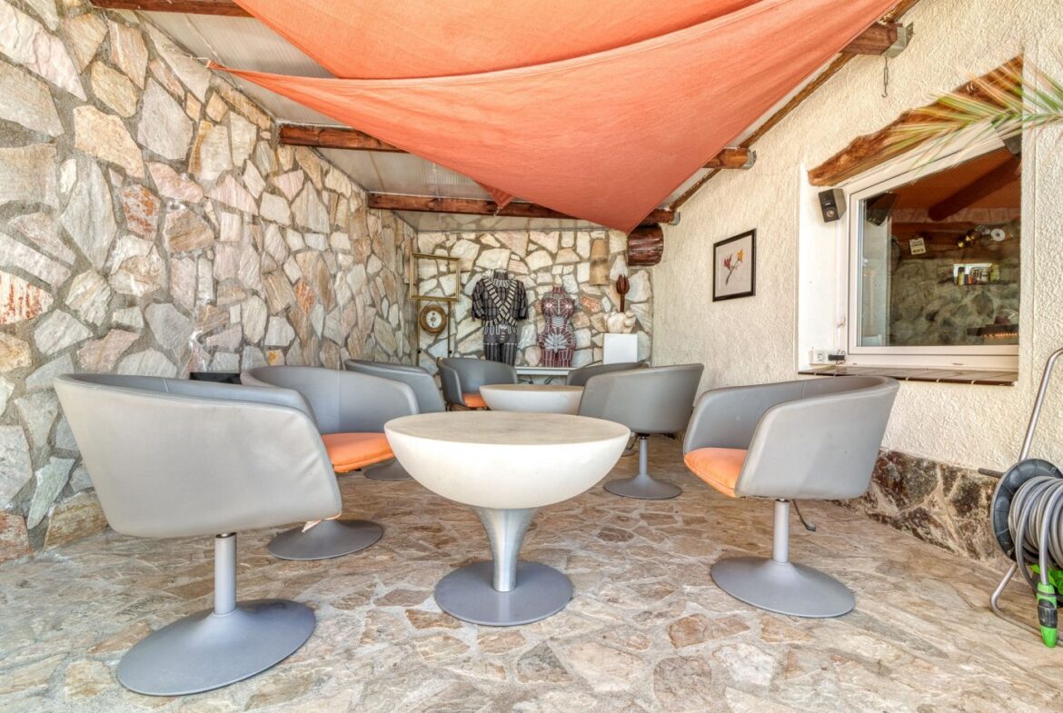 Espectacular vivienda en la Urbanización Mas Fumats, en Roses. Dispone de 4 habitaciones, 3 baños, cocina americana completamente equipada, salón comedor con acceso directo a la terraza, piscina exterior de 9 x 4 metros, y barbacoa de gas. Desde la terraza podemos acceder a una zona de Bar/Pub, completamente equipado, con enfriador de vinos y sistema de enfriamiento de cerveza por barriles. Esta zona ocupa un lateral de la vivienda, completamente independiente, y dispone de sauna para 2 personas, un dormitorio y baño. También dispone de un porche destinado a chill-out.~ ~ El amplio porche de entrada tiene una zona destinada a comedor exterior para 10 personas con 2 ventiladores, perfecta para disfrutar en verano.~ ~ En la parte trasera se dispone de una zona de trabajo, exterior pero cubierta, con lavadora y congelador.~ ~ En la planta inferior se sitúa un estudio de grabación de música de 60 m2, totalmente equipado con altavoces activos, mesa de mezclas, Apple Imac con Logic e interfaz para grabación además de una ventana de separación entre la sala de control y la sala de grabación. Estas estancias podrían destinarse en un futuro a garaje y nueva habitación~ ~ En el techo hay un sistema de paneles solares fotovoltaicos para la generación de electricidad, un sistema solar para generación de agua caliente sanitaria y un sistema solar separado para calefacción por radiadores, que disminuyen considerablemente tanto el gasto eléctrico y de calefacción.~ La casa también está equipada con calefacción de gas (canalizado) y estufa de pellet.~ Todas las estancias están equipadas con Aire acondicionado~ ~ La urbanización “Mas Fumats” se encuentra localizada en un lugar de fácil acceso, a tres kilómetros de Roses y de sus playas. Es una zona tranquila y residencial, que se desarrolló en los años 70.~ ~ Desde la Urbanización se puede disfrutar de vistas espectaculares sobre la bahía de Roses. El tamaño promedio de las parcelas es de entre 400 y 600 metros cuadrados. La zona comercial y de restauración se sitúan a dos minutos en coche.~ ~ ~