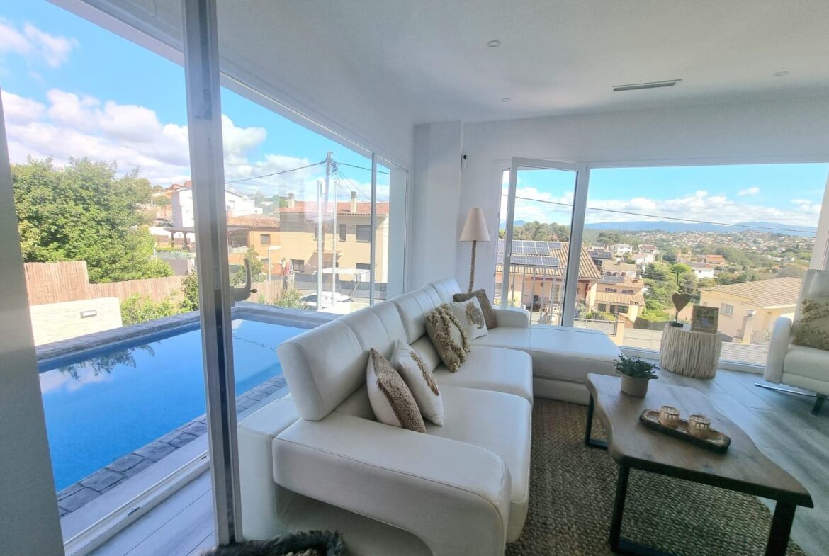 Exclusiva Villa de Diseño y Lujo con Máxima Eficiencia Energética (Obra Seminueva 2024)~Descubra esta magnífica vivienda unifamiliar de diseño minimalista y contemporáneo, ubicada en una tranquila zona residencial en Lliçà d’Amunt. Esta propiedad no es solo una casa, sino un refugio de luz, confort y exclusividad, lista para reestrenar (construida en 2024).~Máximo Confort y Sostenibilidad~Esta villa ha sido diseñada bajo los más altos estándares de eficiencia y calidad, garantizando un confort térmico y acústico superior:~Climatización de Vanguardia: Disfrute de la máxima eficiencia con el sistema de Aerotermia que alimenta la calefacción por suelo radiante, ofreciendo un calor uniforme y un consumo optimizado.~Aislamiento Premium: Carpintería exterior de PVC de alta gama con puente térmico, asegurando un aislamiento perfecto y minimizando las pérdidas de energía.~Aire Acondicionado por Conductos: Climatización fresca e integrada que mantiene una estética limpia y garantiza la temperatura ideal en todas las estancias.~~Distribución Impecable y Acabados de alta calidad (213 m² construidos)~~La casa se presenta con espacios abiertos y fluidos, donde cada rincón maximiza la comodidad y la conexión visual, destacando la calidad de sus acabados interiores, como las puertas lacadas de líneas modernas.~Planta Baja (133,19 m²):~El Corazón Luminoso~Esta planta es el epicentro de la vida familiar, inundada de luz natural gracias a sus impresionantes ventanales panorámicos que enmarcan las vistas despejadas y la piscina exterior.~~Salón-Comedor y Cocina Integrada: Un espacio open-concept que garantiza una interacción social constante. Los ventanales actúan como paredes de cristal, ofreciendo una transición perfecta entre el interior y la zona de piscina.~Cuatro Dormitorios: Distribución ideal para familias.~Dormitorio Principal tipo Suite: Un verdadero santuario privado que incluye un generoso vestidor y un baño privado en suite.~Tres Dormitorios Adicionales.~Dos Baños Elegantes: El baño principal en suite y un segundo baño independiente con plato de ducha, ambos con diseño sofisticado, combinando texturas de tendencia, madera natural y grifería negra mate.~~Planta Sótano (59,11 m²): Funcionalidad y Almacenamiento~Destinada a un amplio garaje y dos cuartos de instalaciones, ofreciendo capacidad y la máxima funcionalidad para el día a día.~~Exterior de Ensueño en Parcela de 417,11 m²~El exterior es una invitación al disfrute y la relajación:~~Piscina Privada: Perfecta para refrescarse y disfrutar del sol, rodeada de una zona de pavimento de alta calidad.~~Vistas Panorámicas: Disfrute de las vistas sobre el entorno natural y urbano, especialmente cautivadoras al caer la noche.~Esta es la oportunidad de reestrenar una propiedad del año 2024, donde el diseño moderno se fusiona con la más avanzada tecnología para ofrecer un hogar cálido, lujoso y energéticamente eficiente.~Ubicación Inmejorable~Ubicada en una de las zonas más valoradas del Vallès Oriental, esta vivienda ofrece la tranquilidad de un entorno residencial en Lliça d’Amunt con la comodidad de tener todos los servicios al alcance.~