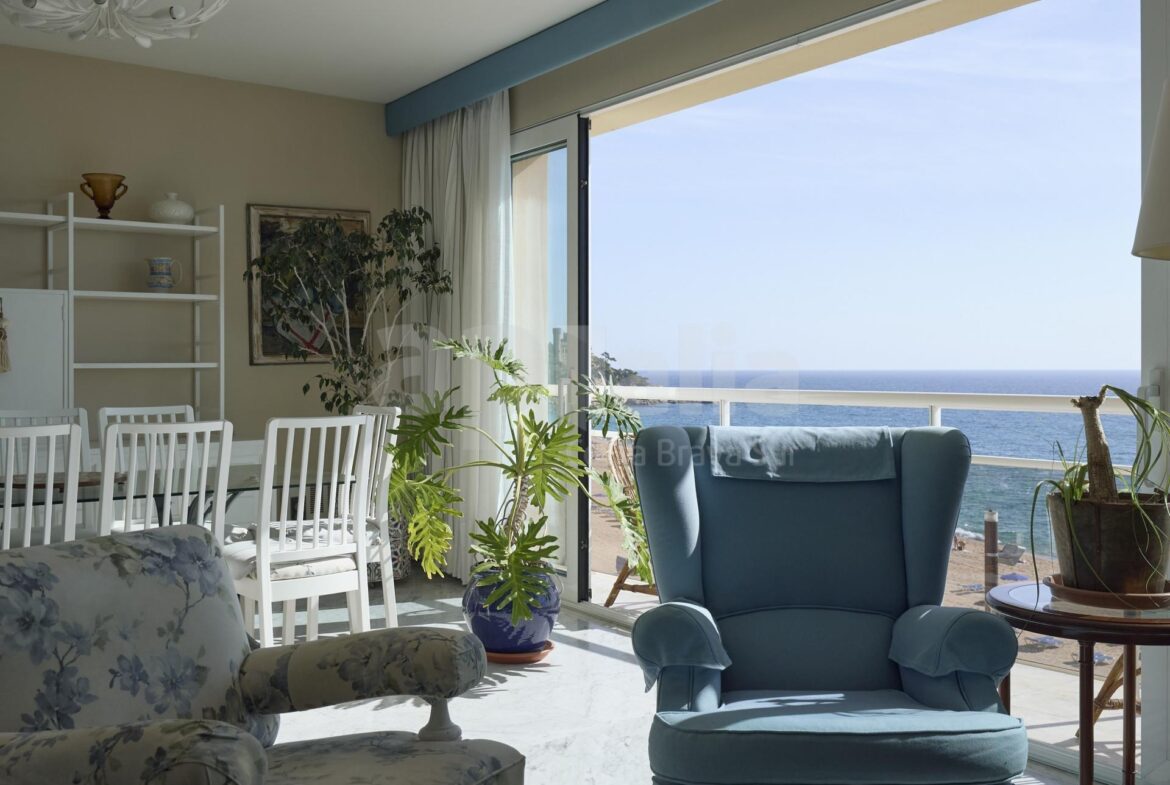 Despierta cada día con el sonido de las olas y unas vistas panorámicas al Mediterráneo. Este espectacular apartamento de 149 m² en primera línea de playa te ofrece un estilo de vida privilegiado en una de las mejores ubicaciones de la Costa Brava.~~Características destacadas~Ubicación inmejorable: Primera línea de mar, con acceso directo a la playa.~~Vistas infinitas: Desde el salón y la terraza, el horizonte azul será parte de tu hogar.~~Distribución amplia y funcional:~~Espacioso recibidor que da paso a un salón lleno de luz natural con vistas al mar.~Cocina independiente con despensa, zona de office (convertida en habitación) y lavadero independiente.~Cuatro dormitorios dobles, incluyendo una suite principal con baño privado.~Dos baños completos más un aseo.~Calidades de lujo: Suelos de mármol claro que aportan elegancia y amplitud.~~Entorno inmejorable: Rodeado de todos los servicios, comercios, restaurantes y conexiones de transporte.~~Un estilo de vida único~Imagina comenzar el día con un café en tu terraza frente al mar, disfrutar de paseos por la orilla al atardecer o recibir a tus invitados en un salón con unas vistas que dejan sin aliento.~~Si buscas exclusividad, confort y una ubicación privilegiada, este es tu hogar ideal.~~Contacta ahora y agenda tu visita antes de que vuele.~~Producto exclusivo Apialia Costa Brava Sud~~Immobiliària Barcelona – Club de servicios inmobiliarios a su disposición.~~Se entrega sin bienes muebles, incluso si aparecen en las fotografías.~~El precio no incluye impuestos legalmente aplicables. Consulta el cálculo de impuestos en atc.gencat.cat/ca/inici/.~~~~~~~~~~