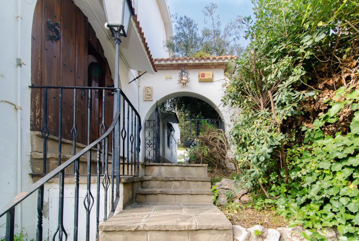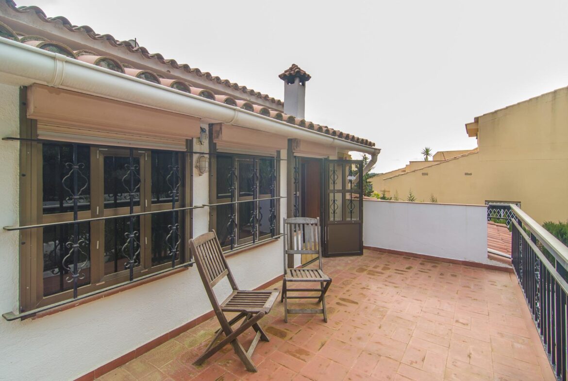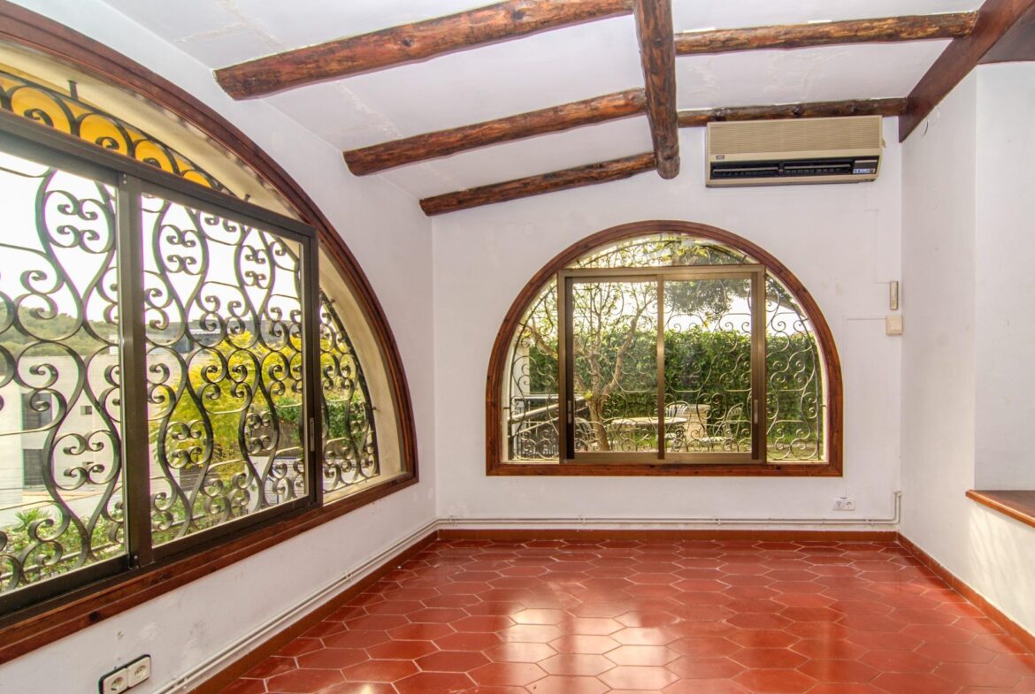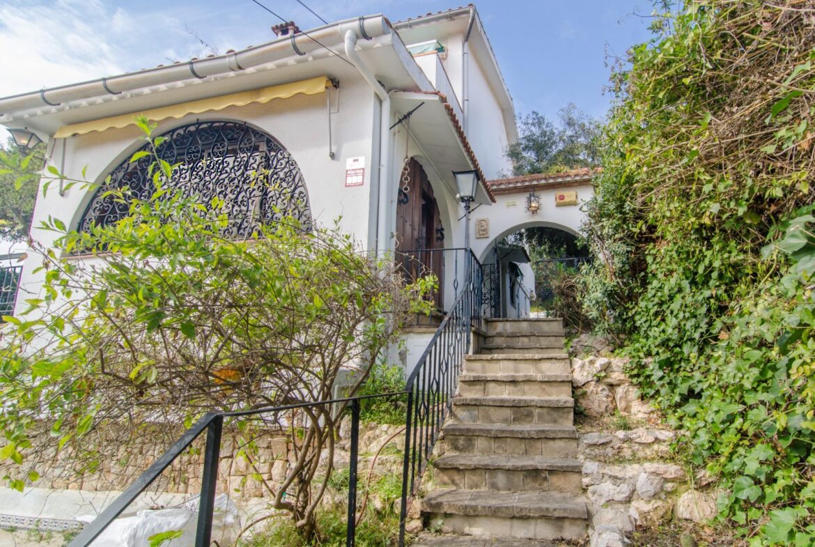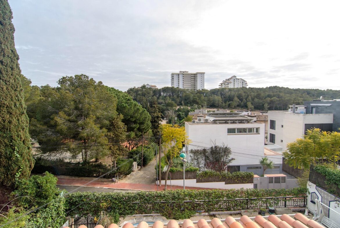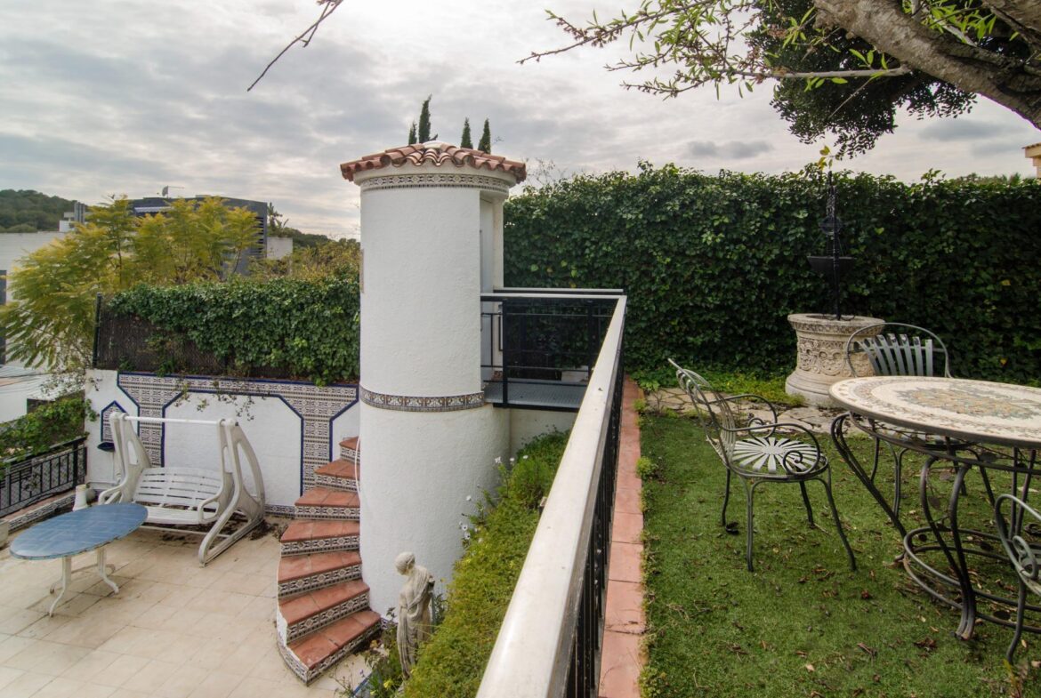 Encantadora casa en venta en una ubicación inmejorable, dentro de la exclusiva urbanización privada Vallpineda, con acceso directo al Paseo Marítimo de Sitges y situada a escasos metros del prestigioso Club Deportivo Vallpineda.~La casa se encuentra en una calle sin tránsito, de acceso exclusivo para los vecinos y, disfruta de las vistas despejadas del bonito parque que tiene justo enfrente.~Desde la calle se accede a la vivienda por su preciosa escalera de piedra o bien por el garaje de dos plazas en el que hay un ascensor que comunica directamente con un magnífico jardín con entrada directa al salón de la cocina, sin necesidad de acceder a la entrada principal de la casa.~En la planta baja se encuentran la sala de estar y el comedor a dos niveles llegando a la cocina, abierta a un agradable salón con salida a la zona ajardinada delantera de la casa, desde la cual se accede a la piscina mediante unas singulares y bonitas escaleras que rodean el precioso torreón que envuelve el ascensor y que decora glamurosamente la terraza de la piscina donde disfrutar de encantadoras veladas con el agradable sonido de su chorro de agua.~La cocina tiene a su vez salida independiente al exterior lateral de la casa donde se ubica una caseta dispuesta para zona de lavandería, almacenaje y despensa.~En esta misma planta encontramos dos dormitorios dobles, un baño completo con plato de ducha y un salón exterior acristalado con chimenea que ofrece a su vez un ambiente cálido y acogedor en invierno, pero fresco y agradable en verano como zona de barbacoa y con acceso al jardín posterior de la casa.~En la planta superior tenemos una bonita habitación individual con techo inclinado y vigas de madera, baño completo con bañera y una gran terraza con bonitas vistas que da al jardín posterior de la vivienda. En esta misma planta, tenemos una espectacular habitación con chimenea, baño completo con bañera, armario vestidor y una agradable terraza que da a la parte delantera de la casa.~La vivienda dispone de carpintería de aluminio, persianas automáticas, calefacción central, aire acondicionado y alarma, toda vez que la urbanización dispone de servicio de vigilancia y seguridad privada.~Delante de la casa hay un pequeño pasaje por el cual se puede acceder a pie al transporte público que lleva al bonito pueblo costero de Sitges, situado a 600 metros de la vivienda, accediendo a su vez a la magnífica avenida que comunica directamente con el paseo marítimo de Sitges y sus playas en solo 2 minutos.~Impuestos, tasas aplicables a la compra, gastos de Notario y Registro de la Propiedad no están incluidos en el precio indicado. Se vende sin muebles.~