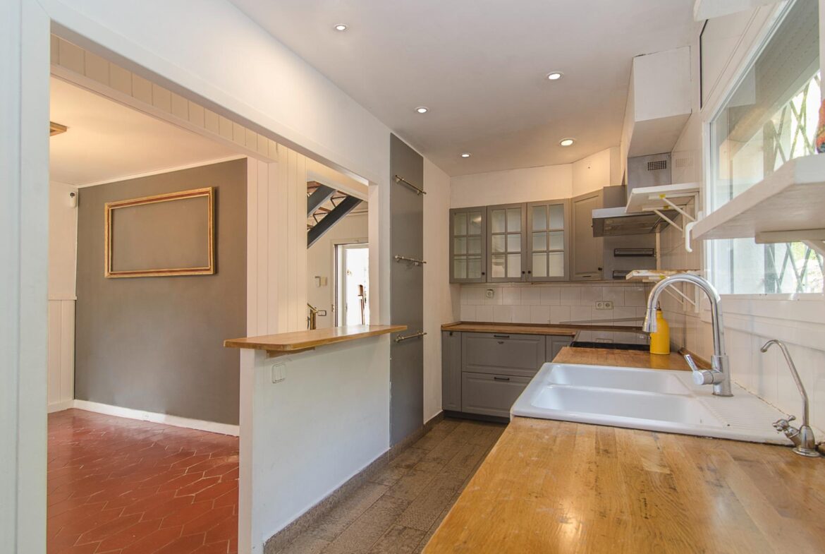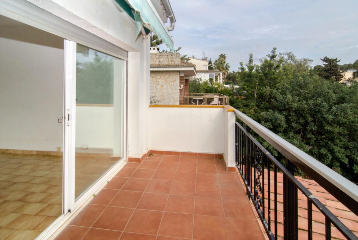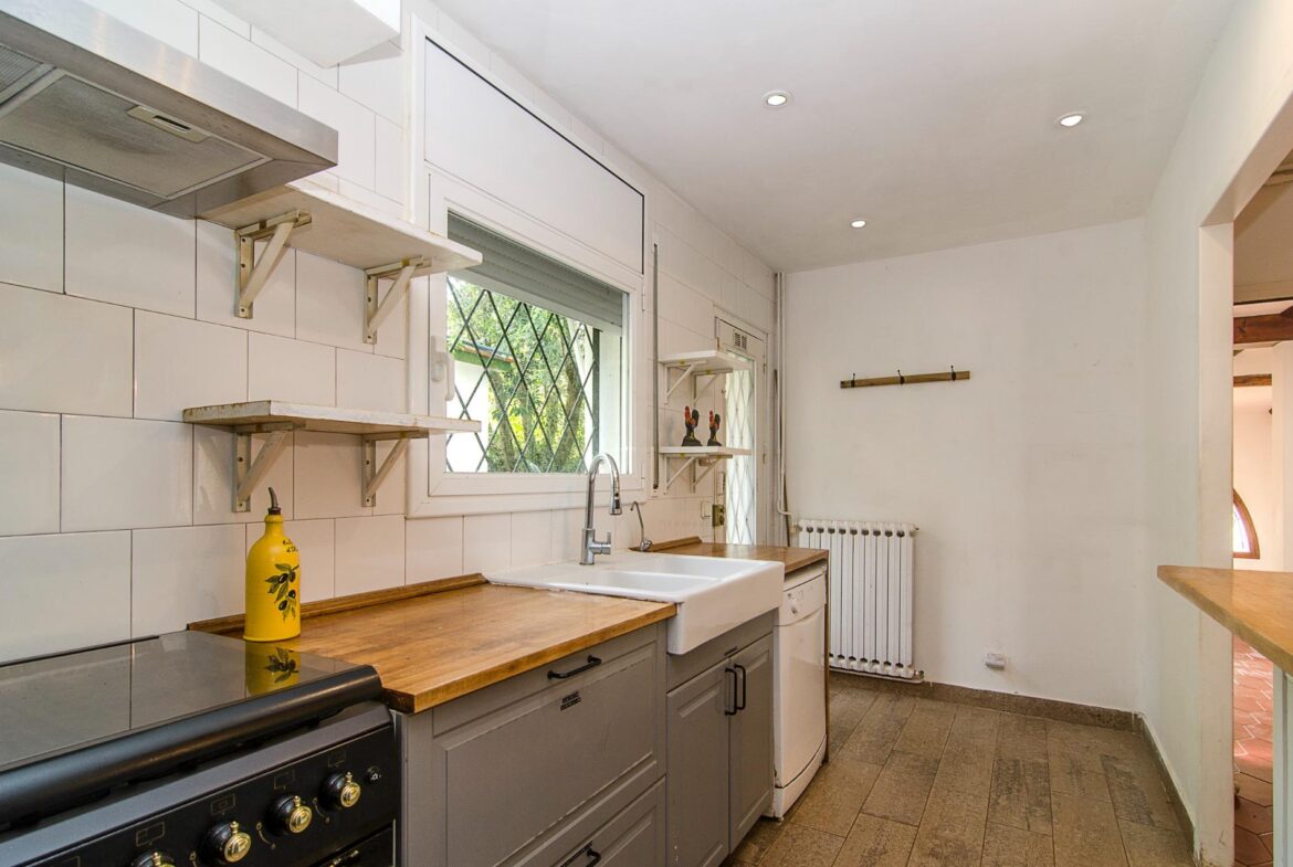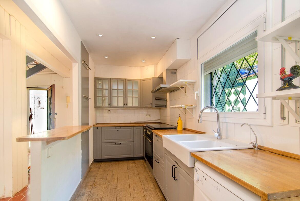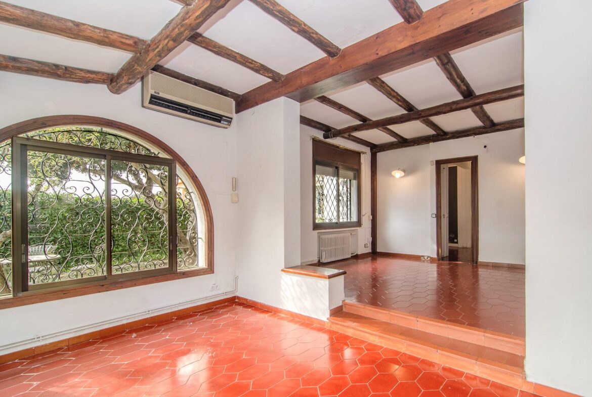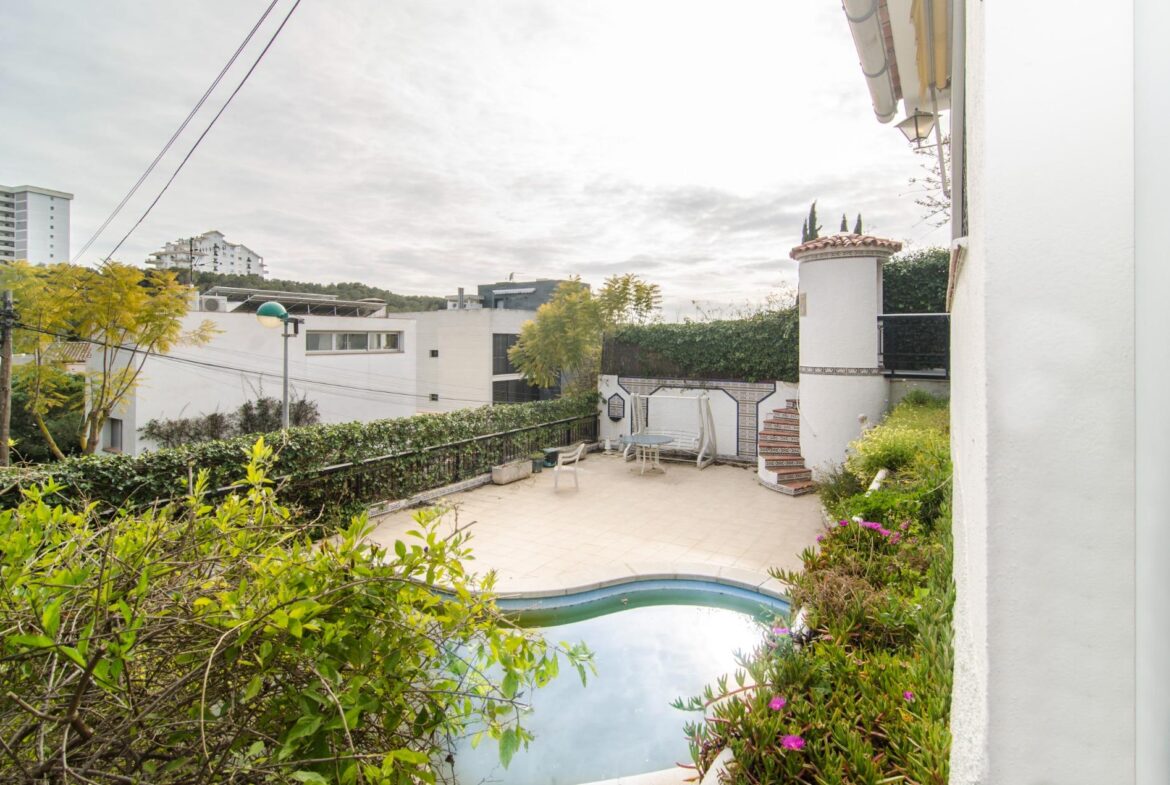 Encantadora casa en venta en una ubicación inmejorable, dentro de la exclusiva urbanización privada Vallpineda, con acceso directo al Paseo Marítimo de Sitges y situada a escasos metros del prestigioso Club Deportivo Vallpineda.~La casa se encuentra en una calle sin tránsito, de acceso exclusivo para los vecinos y, disfruta de las vistas despejadas del bonito parque que tiene justo enfrente.~Desde la calle se accede a la vivienda por su preciosa escalera de piedra o bien por el garaje de dos plazas en el que hay un ascensor que comunica directamente con un magnífico jardín con entrada directa al salón de la cocina, sin necesidad de acceder a la entrada principal de la casa.~En la planta baja se encuentran la sala de estar y el comedor a dos niveles llegando a la cocina, abierta a un agradable salón con salida a la zona ajardinada delantera de la casa, desde la cual se accede a la piscina mediante unas singulares y bonitas escaleras que rodean el precioso torreón que envuelve el ascensor y que decora glamurosamente la terraza de la piscina donde disfrutar de encantadoras veladas con el agradable sonido de su chorro de agua.~La cocina tiene a su vez salida independiente al exterior lateral de la casa donde se ubica una caseta dispuesta para zona de lavandería, almacenaje y despensa.~En esta misma planta encontramos dos dormitorios dobles, un baño completo con plato de ducha y un salón exterior acristalado con chimenea que ofrece a su vez un ambiente cálido y acogedor en invierno, pero fresco y agradable en verano como zona de barbacoa y con acceso al jardín posterior de la casa.~En la planta superior tenemos una bonita habitación individual con techo inclinado y vigas de madera, baño completo con bañera y una gran terraza con bonitas vistas que da al jardín posterior de la vivienda. En esta misma planta, tenemos una espectacular habitación con chimenea, baño completo con bañera, armario vestidor y una agradable terraza que da a la parte delantera de la casa.~La vivienda dispone de carpintería de aluminio, persianas automáticas, calefacción central, aire acondicionado y alarma, toda vez que la urbanización dispone de servicio de vigilancia y seguridad privada.~Delante de la casa hay un pequeño pasaje por el cual se puede acceder a pie al transporte público que lleva al bonito pueblo costero de Sitges, situado a 600 metros de la vivienda, accediendo a su vez a la magnífica avenida que comunica directamente con el paseo marítimo de Sitges y sus playas en solo 2 minutos.~Impuestos, tasas aplicables a la compra, gastos de Notario y Registro de la Propiedad no están incluidos en el precio indicado. Se vende sin muebles.~